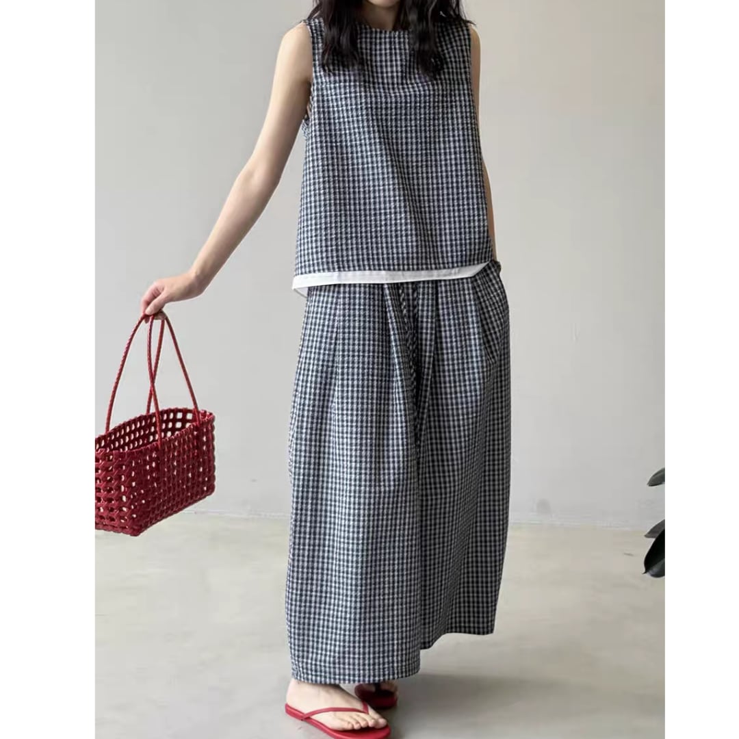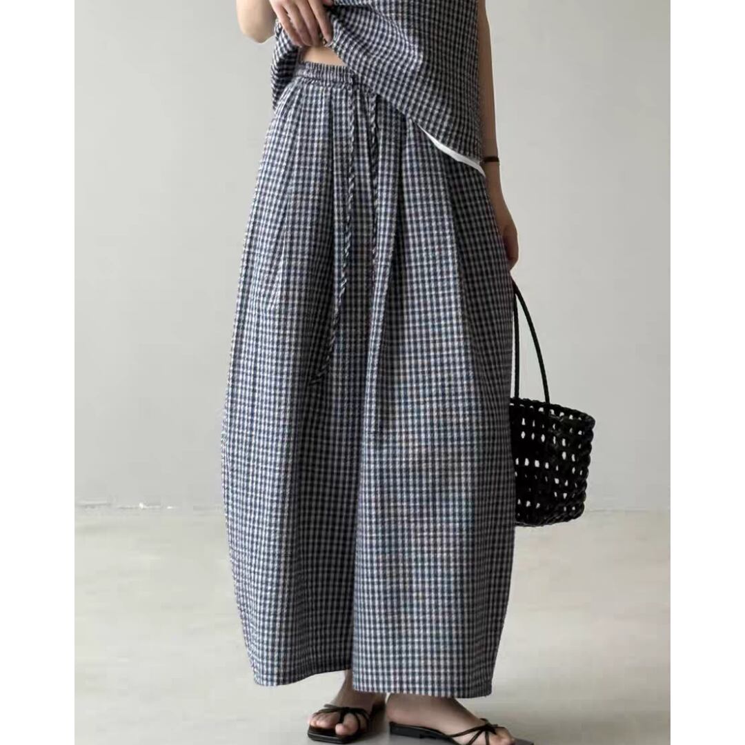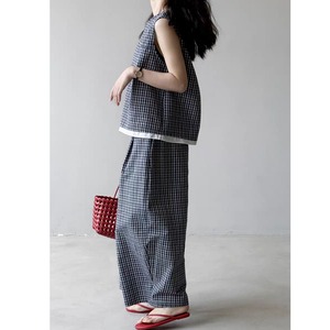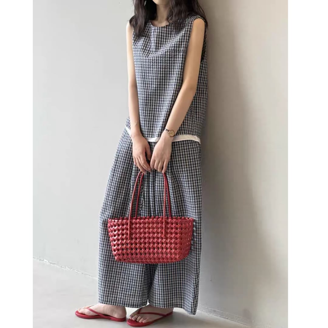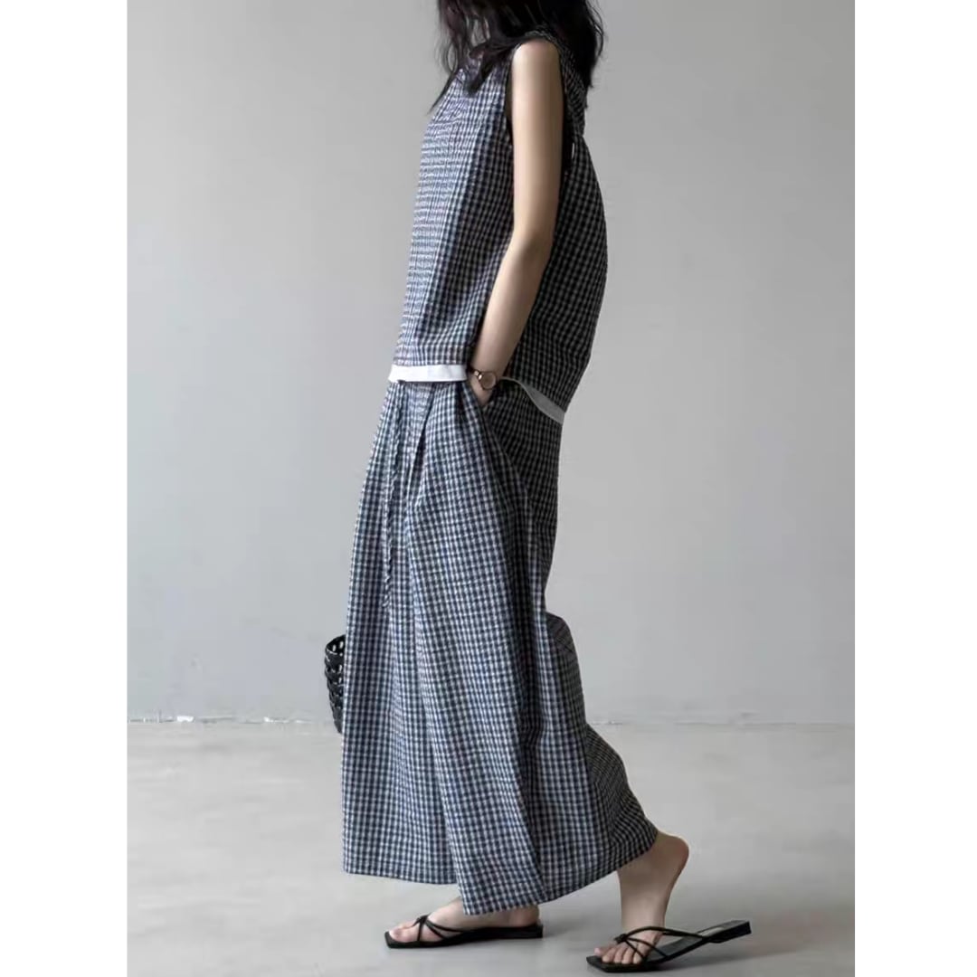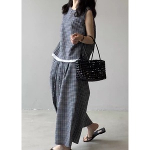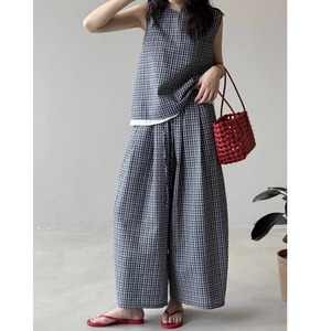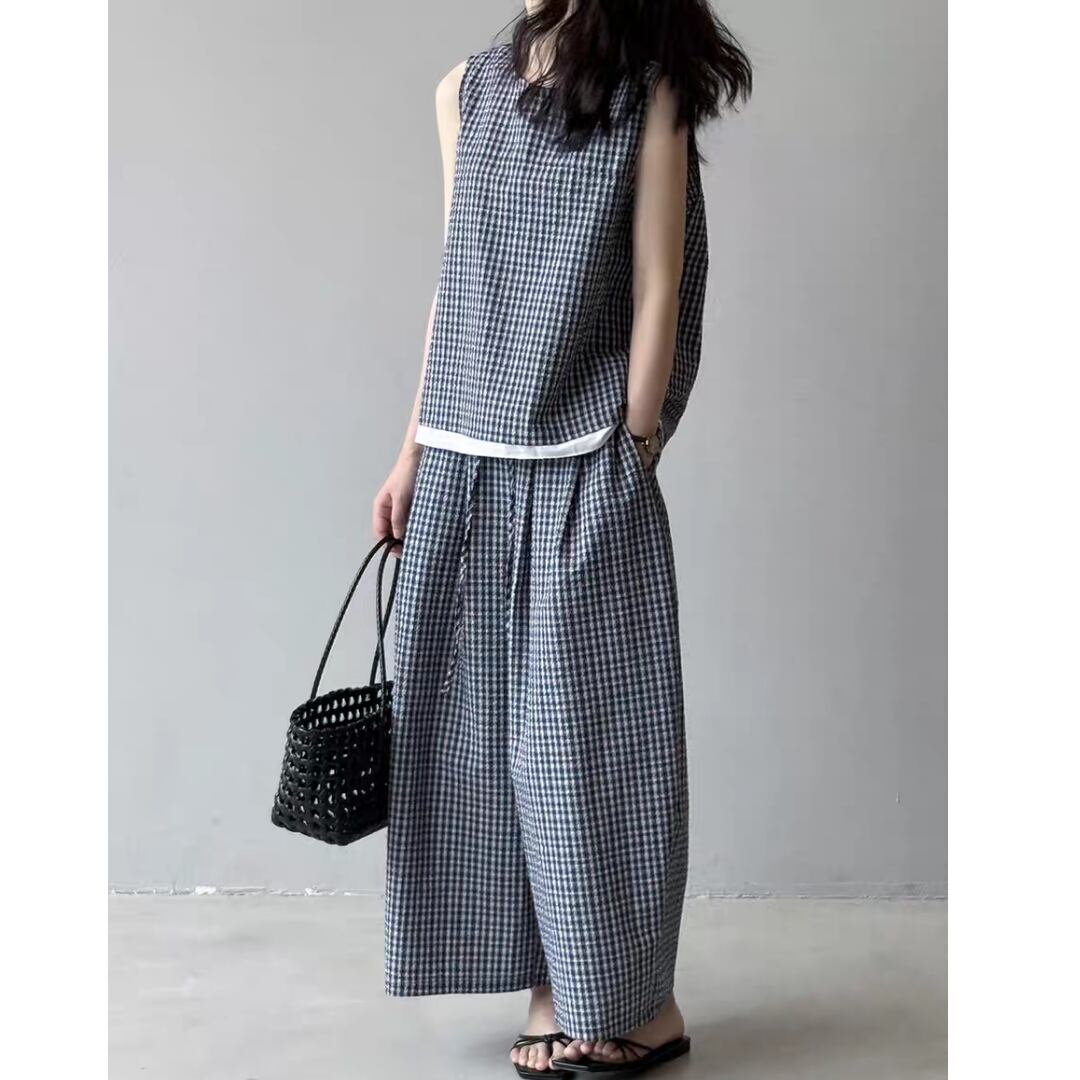 ノースリーブトップスとワイドパンツのリラックス感あるシルエットが、抜け感のある大人カジュアルを演出。シンプルな小物と合わせるだけで、こなれたお出かけコーデが完成します。上下セットで着ても、別々に着回しても◎。夏のワードローブに取り入れたい一着です。