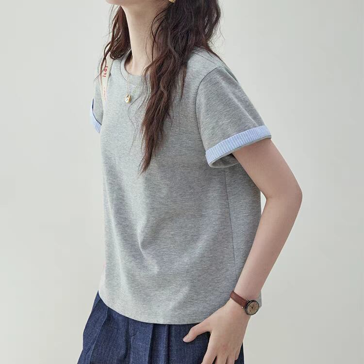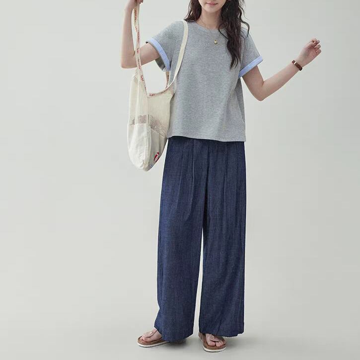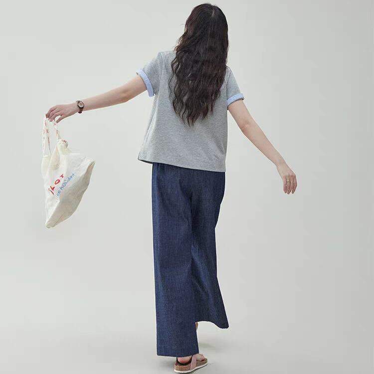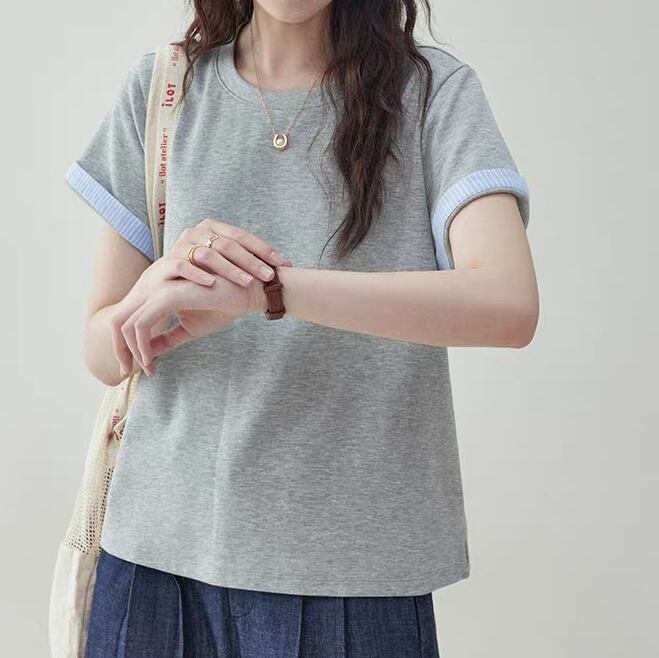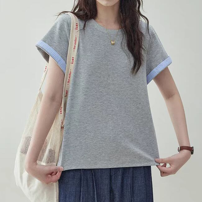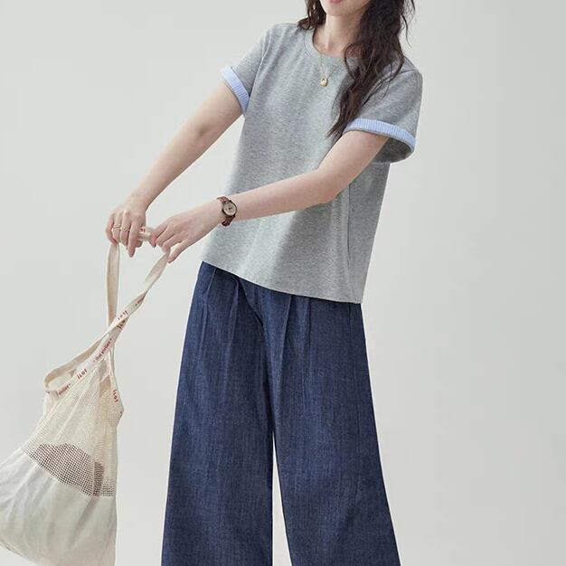 袖はロールアップ風のデザインで、抜け感をプラスしつつ二の腕カバーにも◎。
