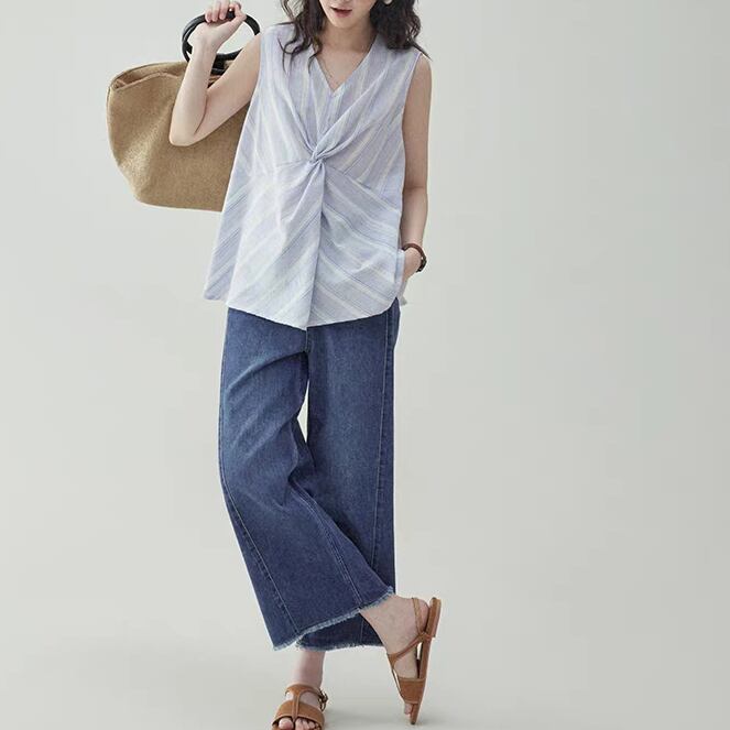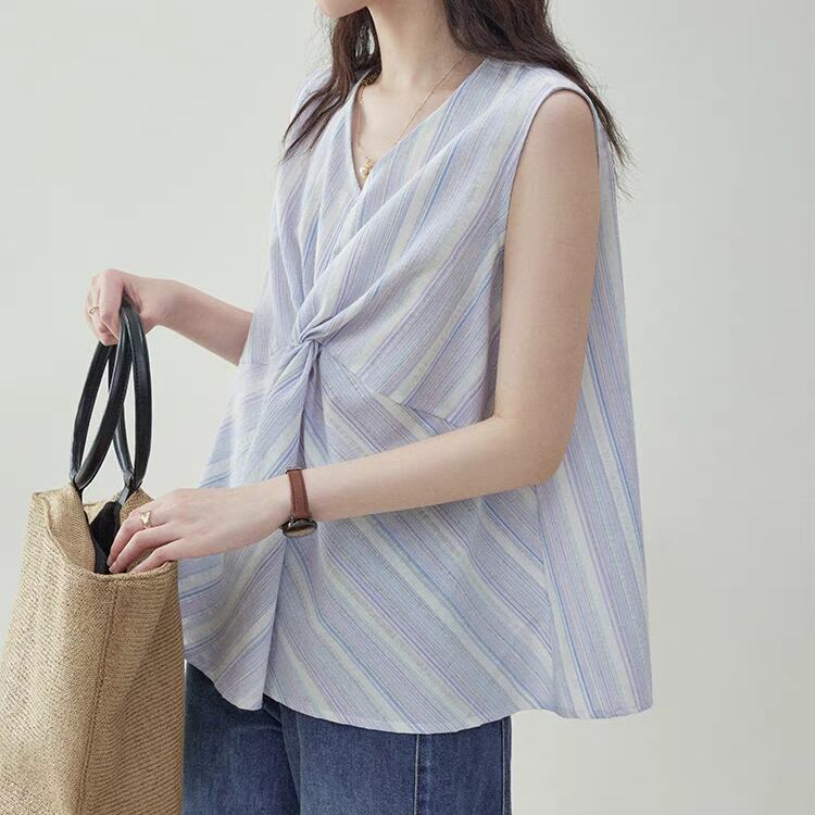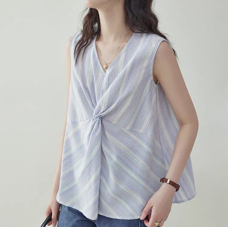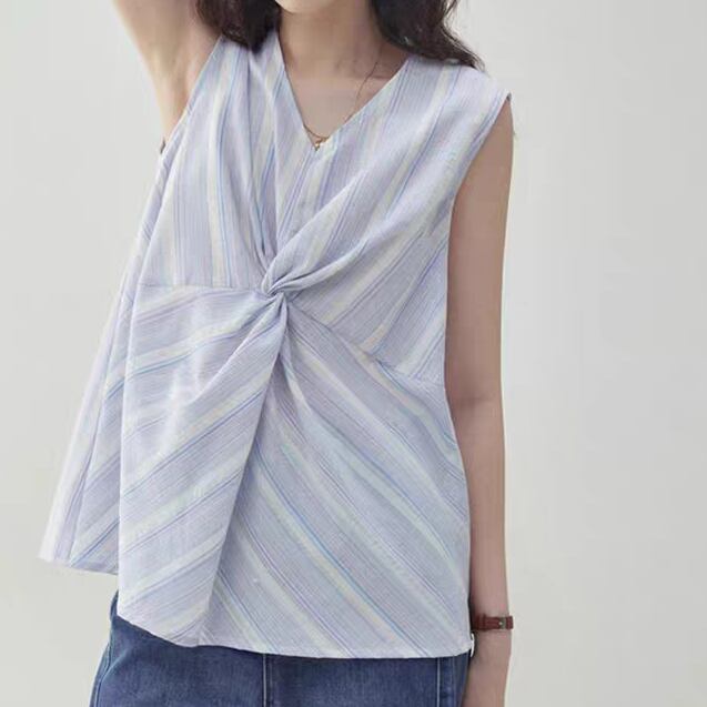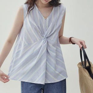 フロントのツイストデザインが目を引く、フェミニンでモダンな印象のノースリーブトップス。