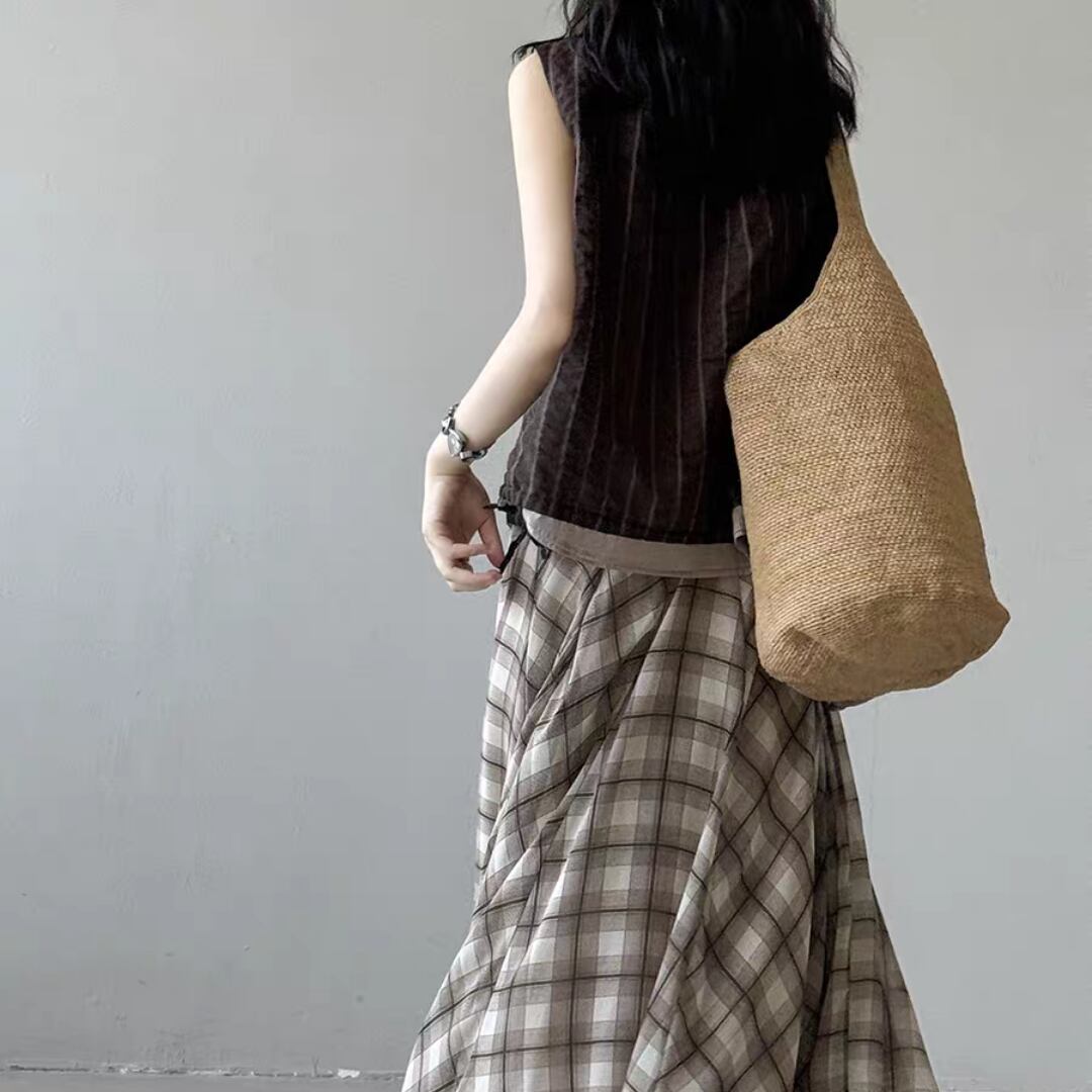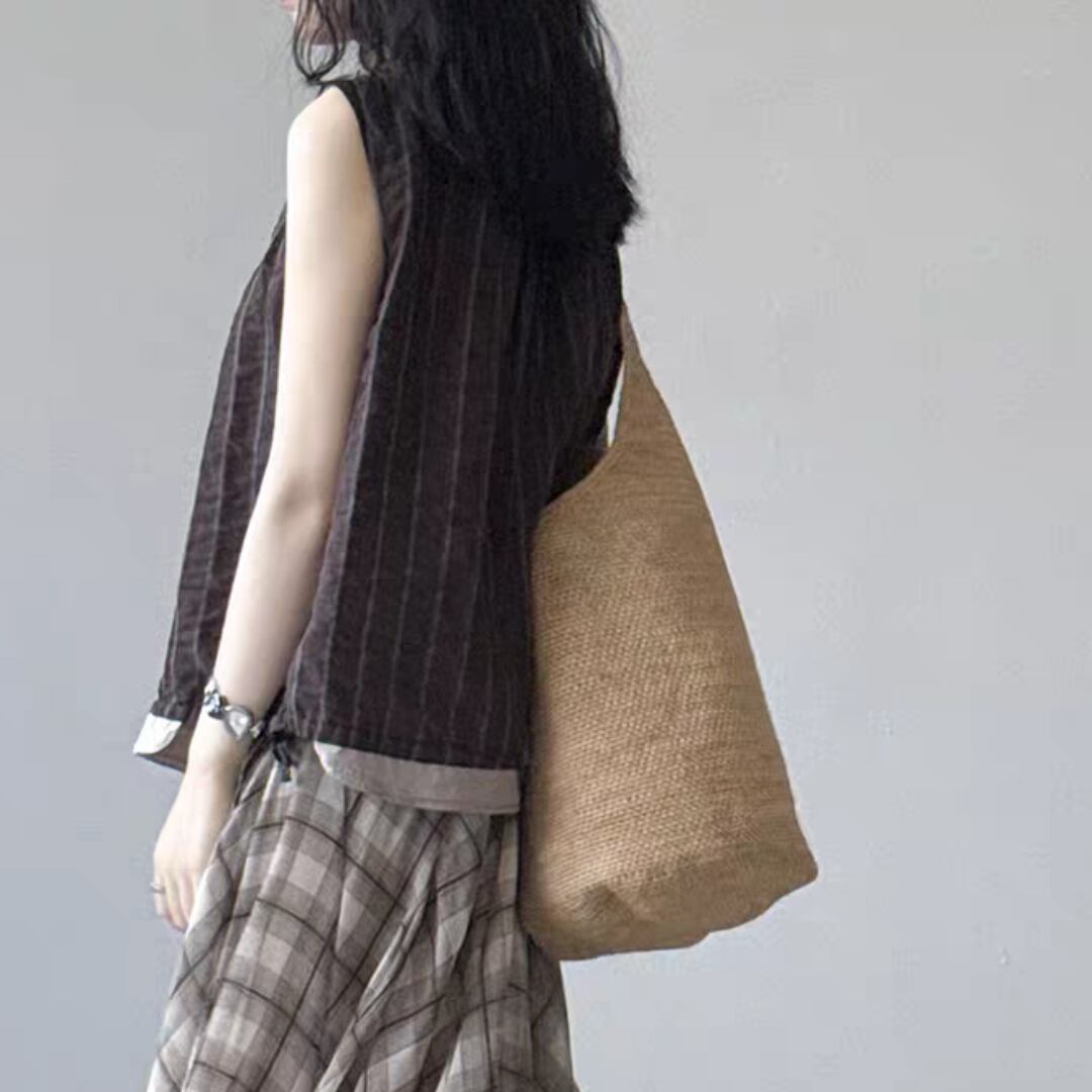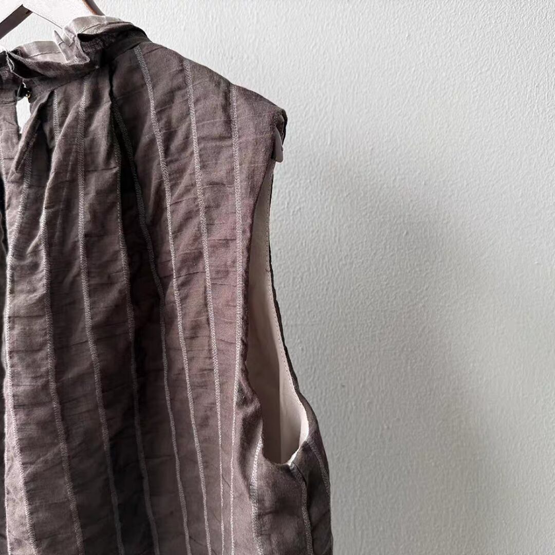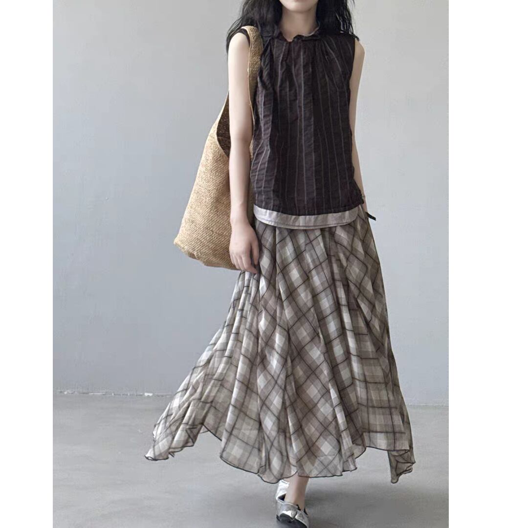 レイヤード風デザインが魅力のノースリーブトップス。パンツにもスカートにも合わせやすく、夏のカジュアルコーデにぴったりです。