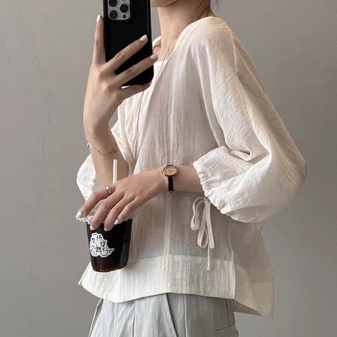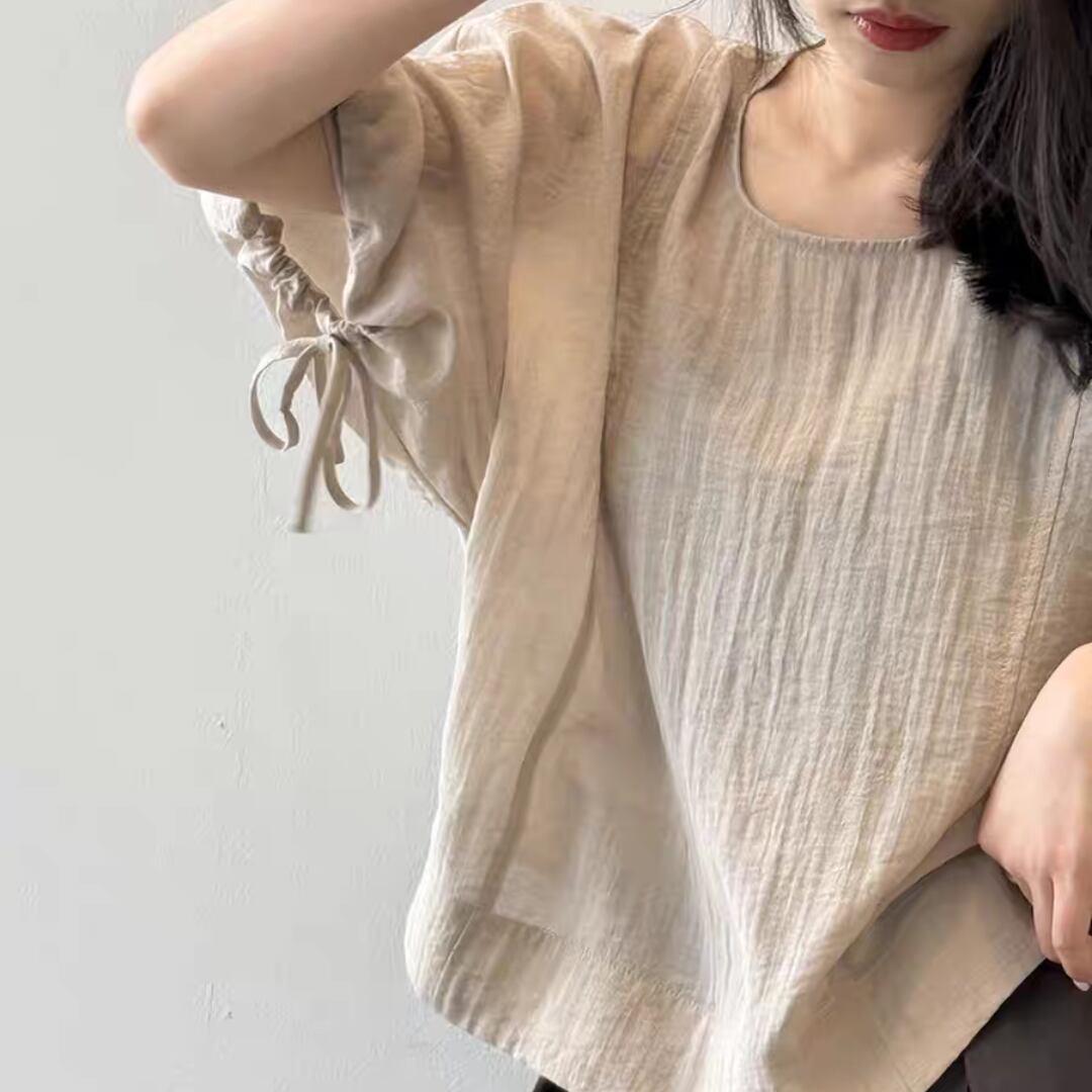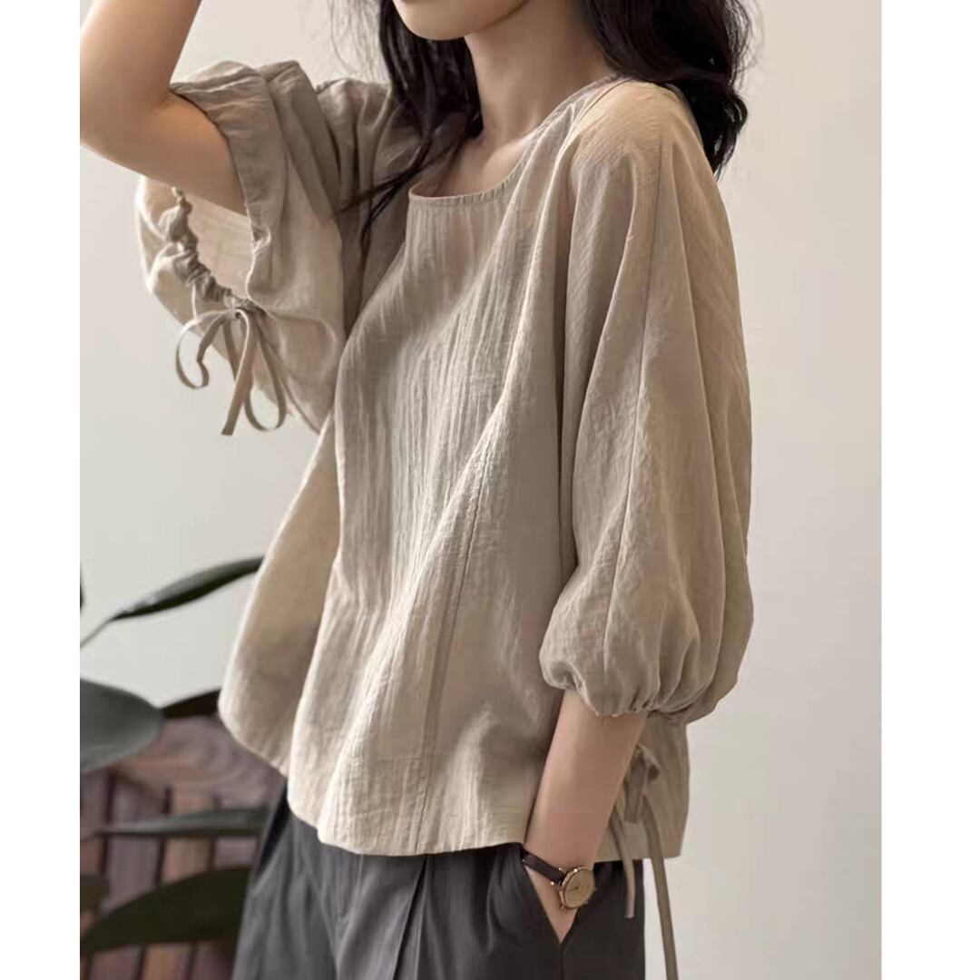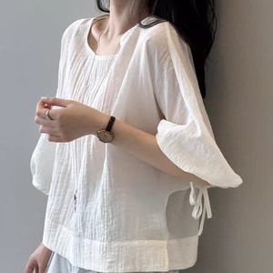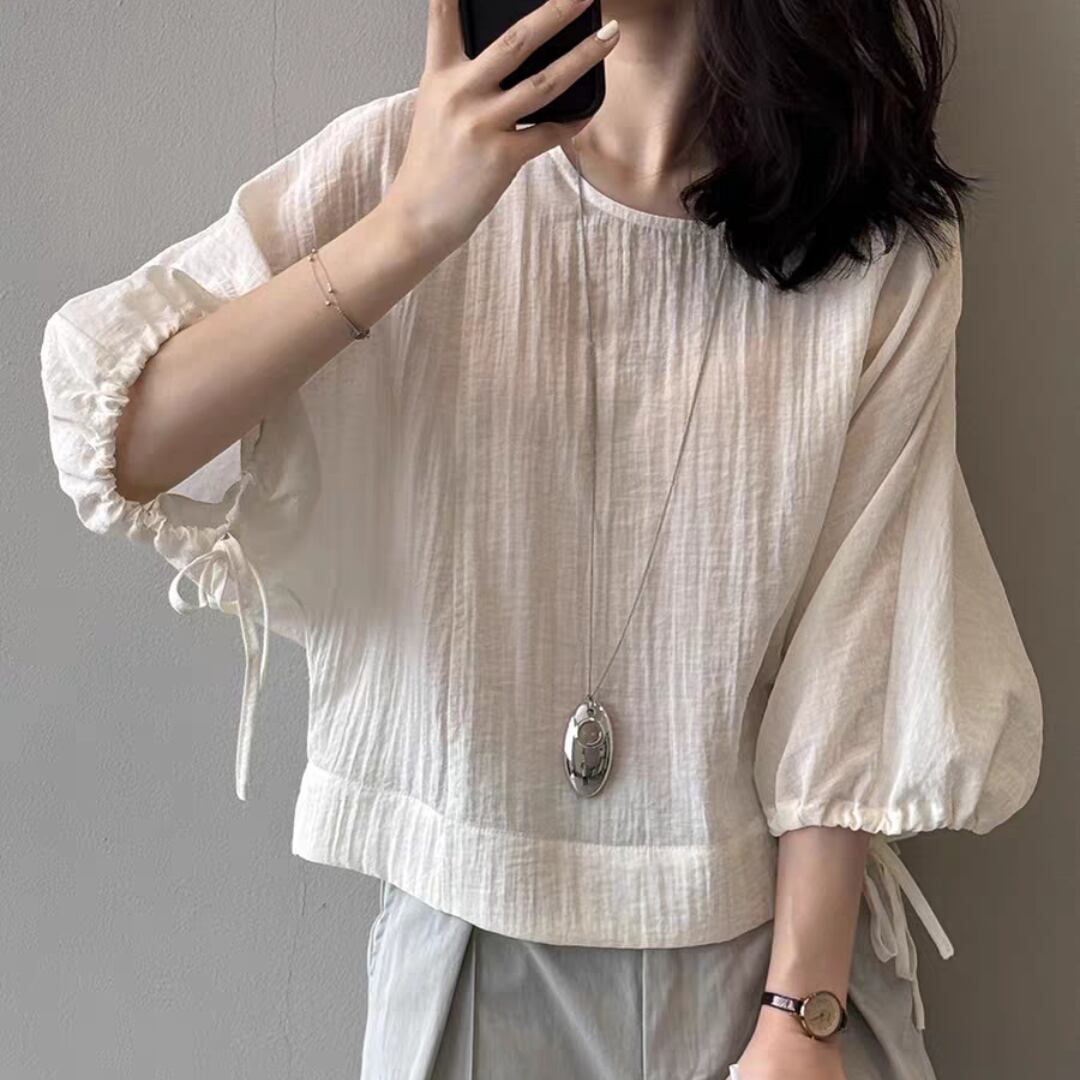 ボリューム袖と、袖口・サイドにあしらったリボンがナチュラルな甘さを演出します。