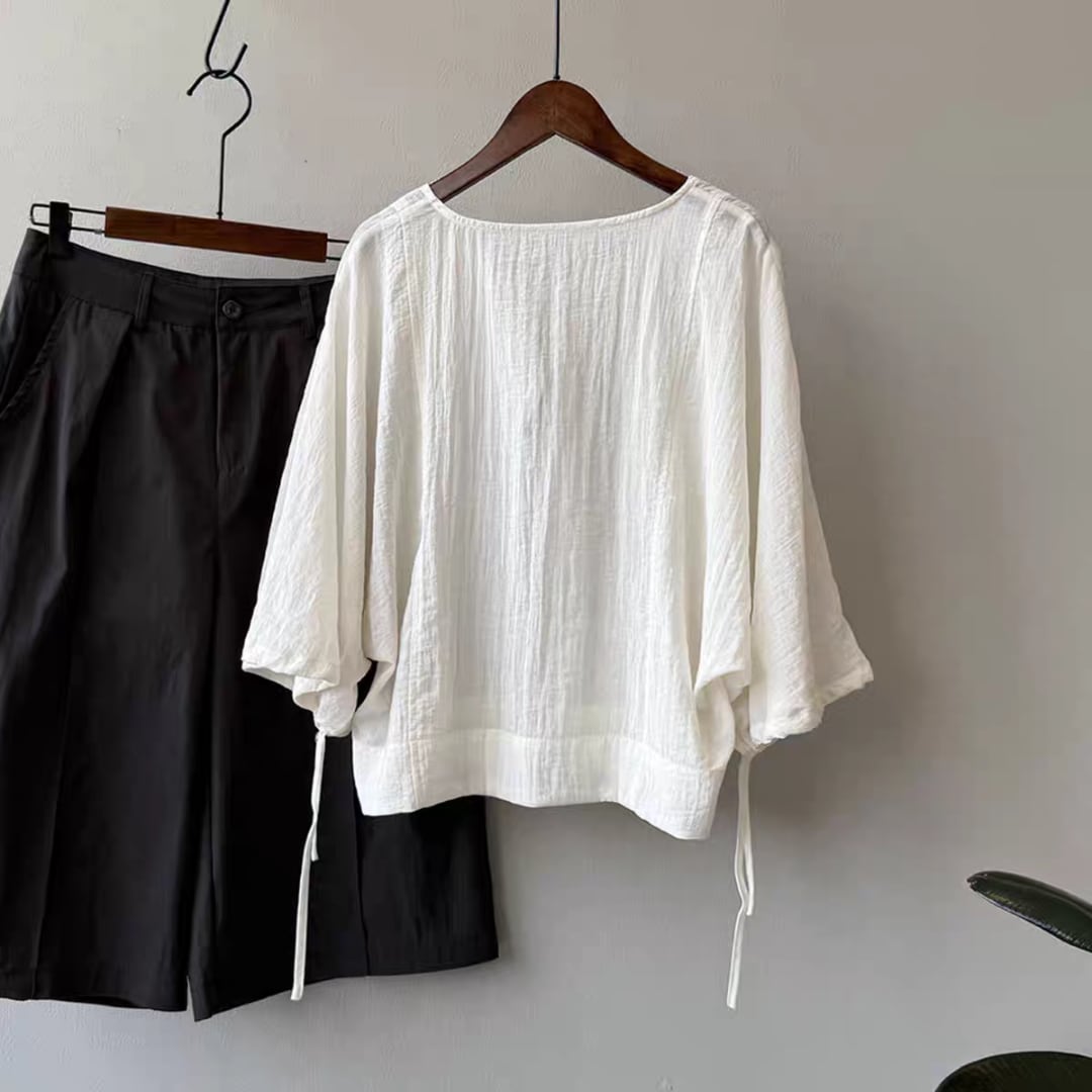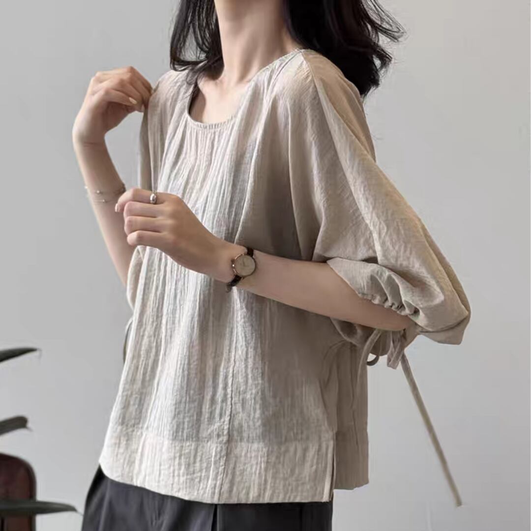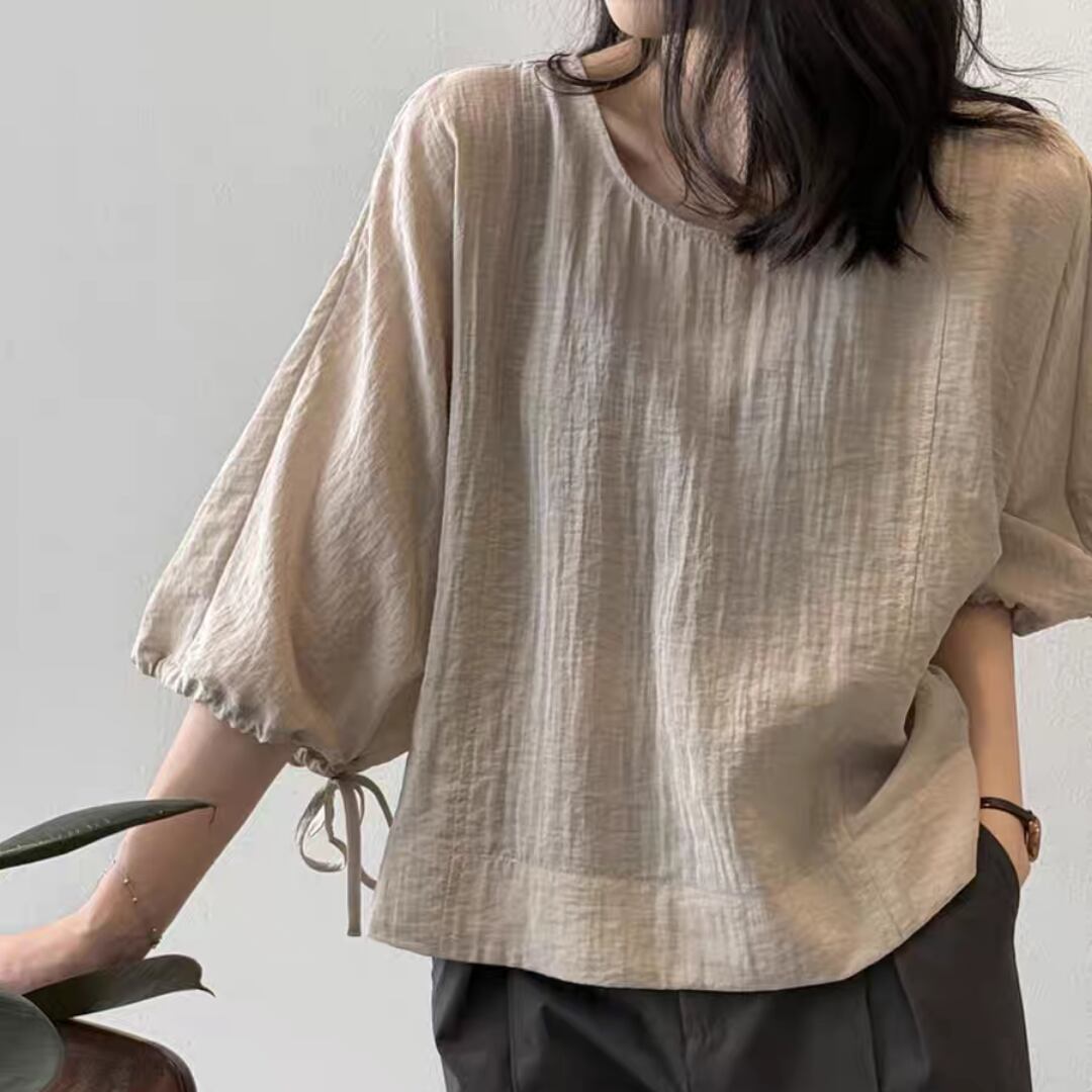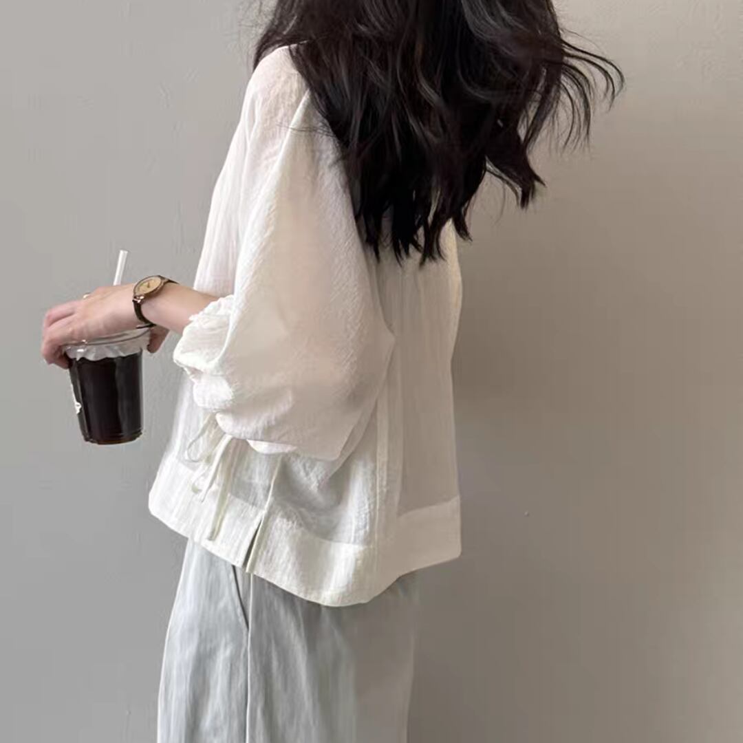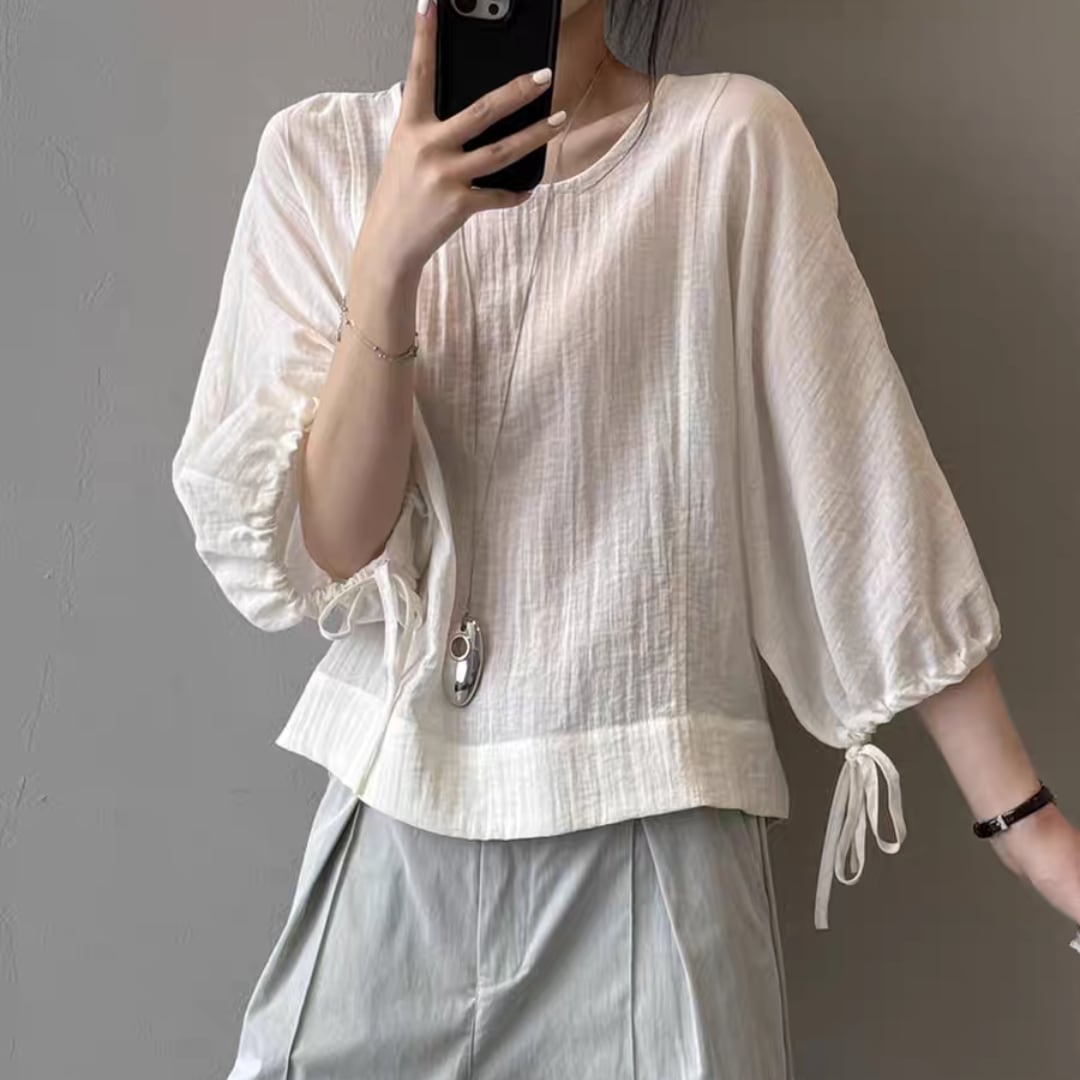 ボリューム袖と、袖口・サイドにあしらったリボンがナチュラルな甘さを演出します。
