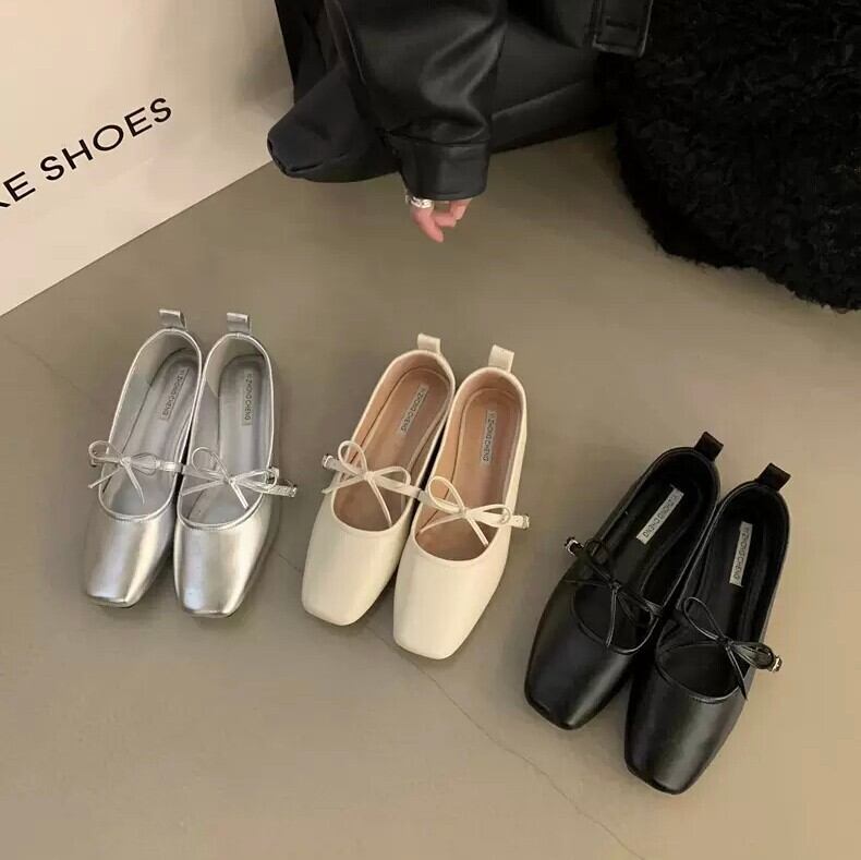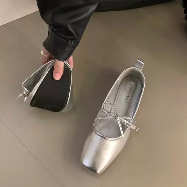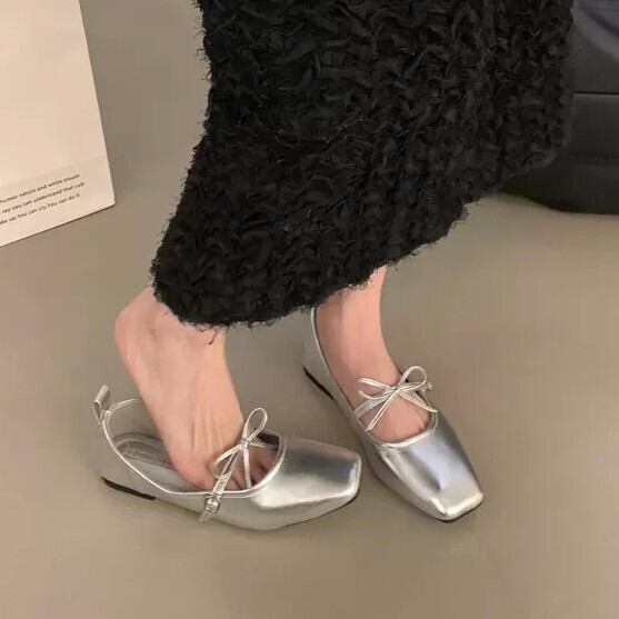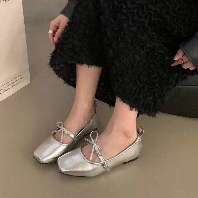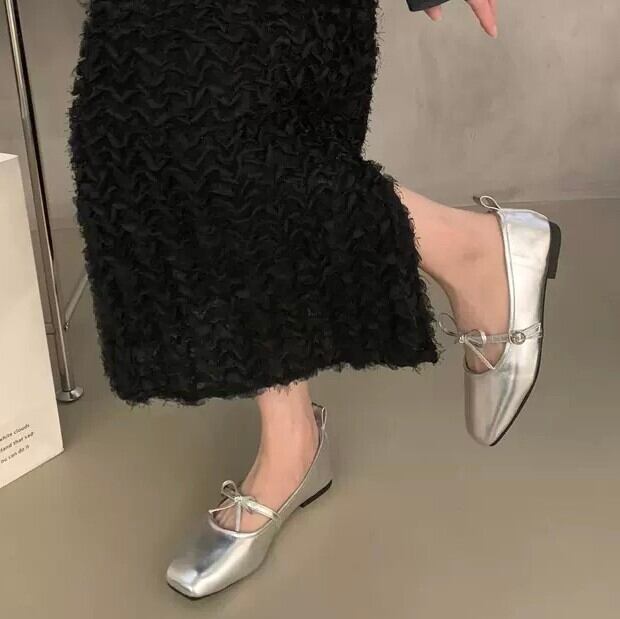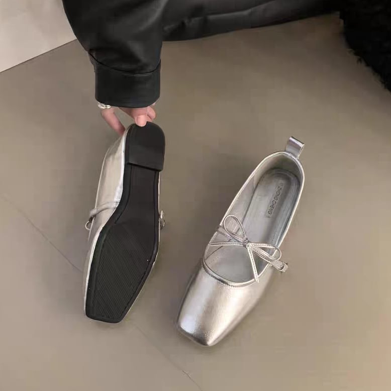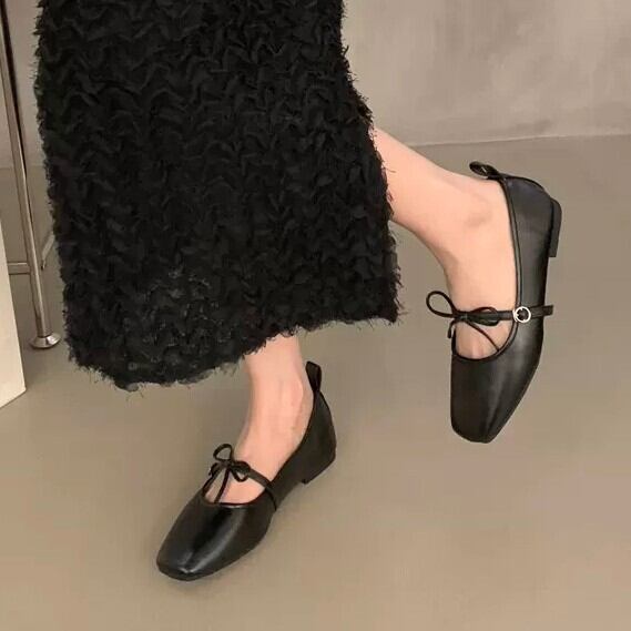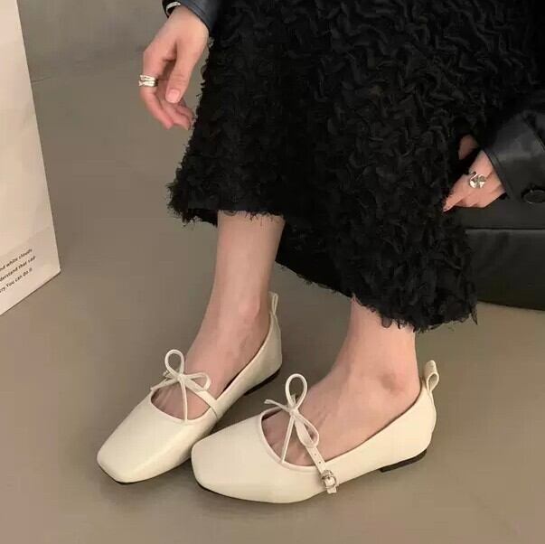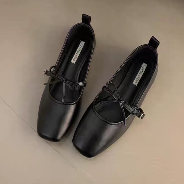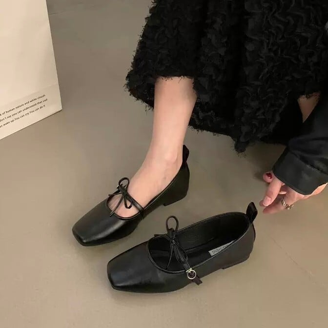 スクエアトゥデザインがトレンド感をプラスし、甘すぎず大人っぽい印象に仕上げています。