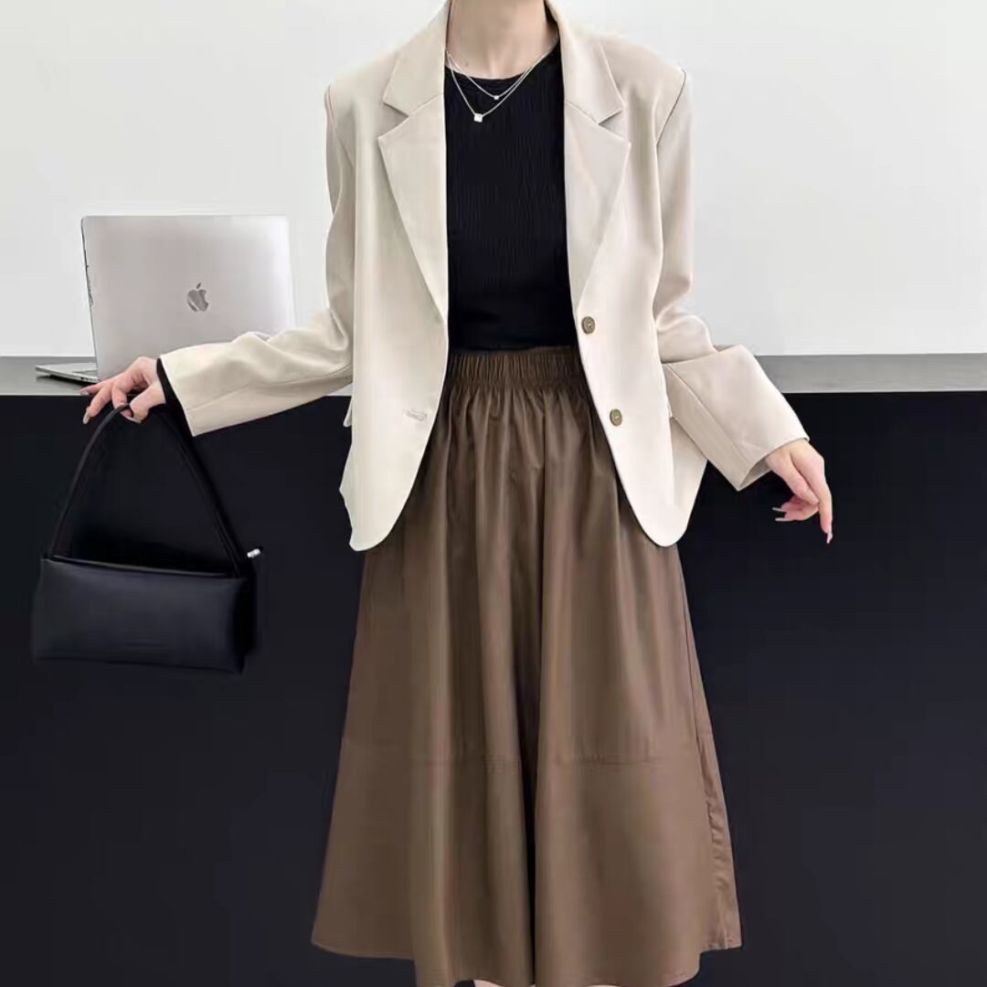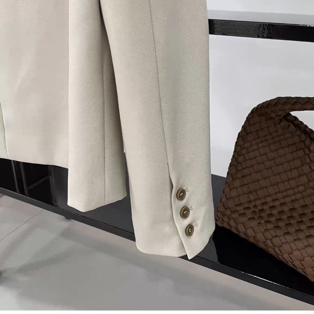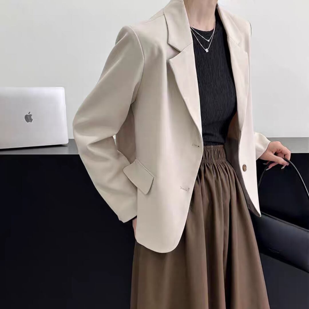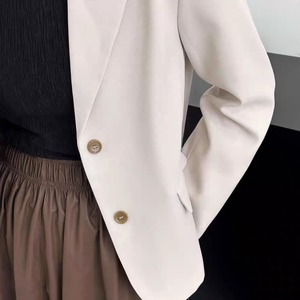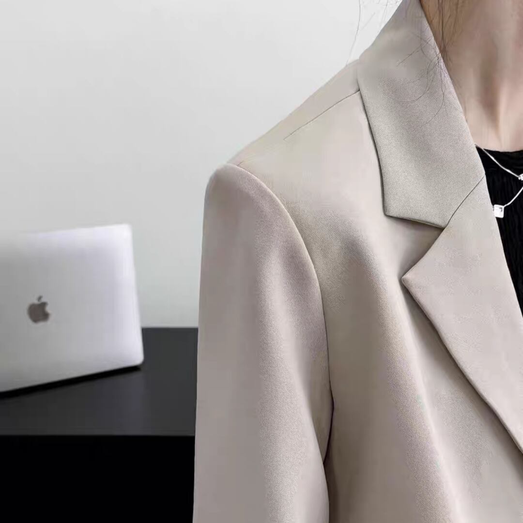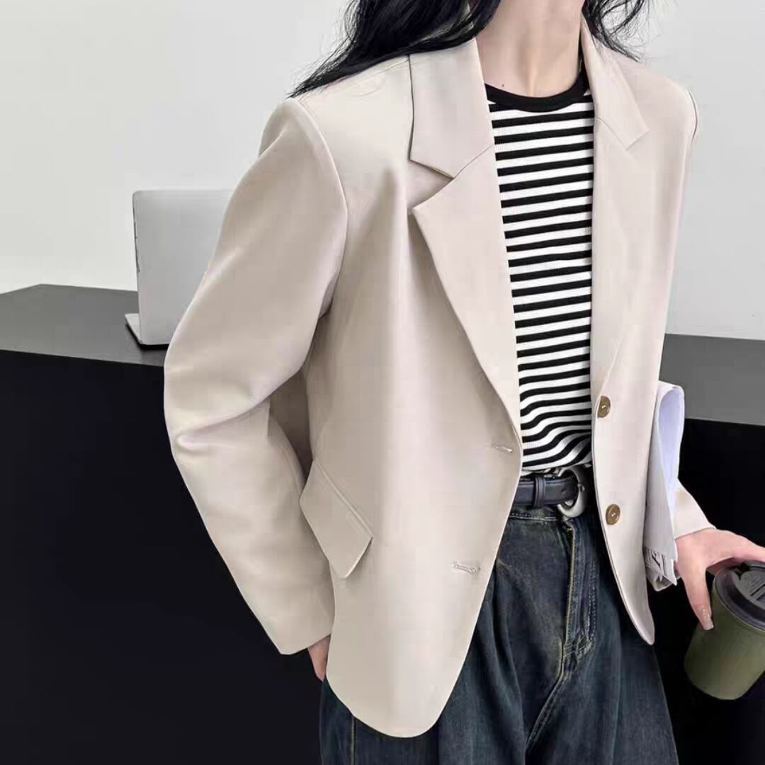 通勤やフォーマルな場面はもちろん、デニムと合わせたカジュアルスタイルにもおすすめの一着です。