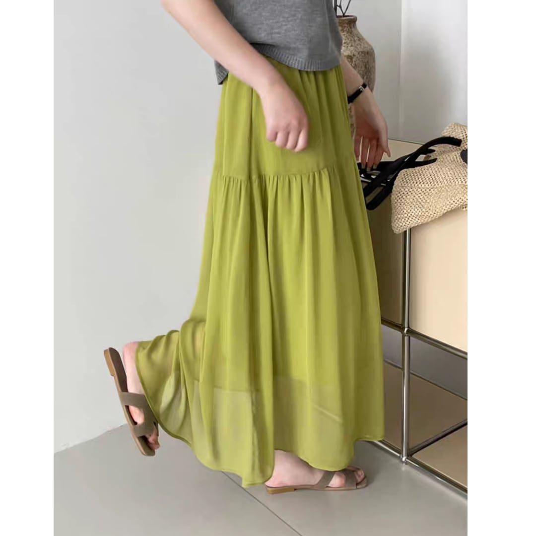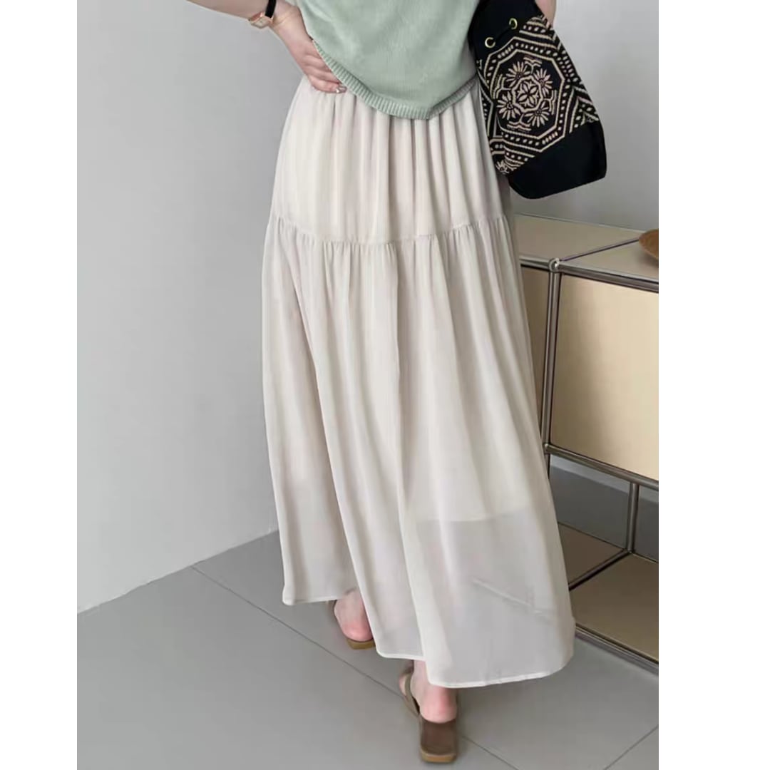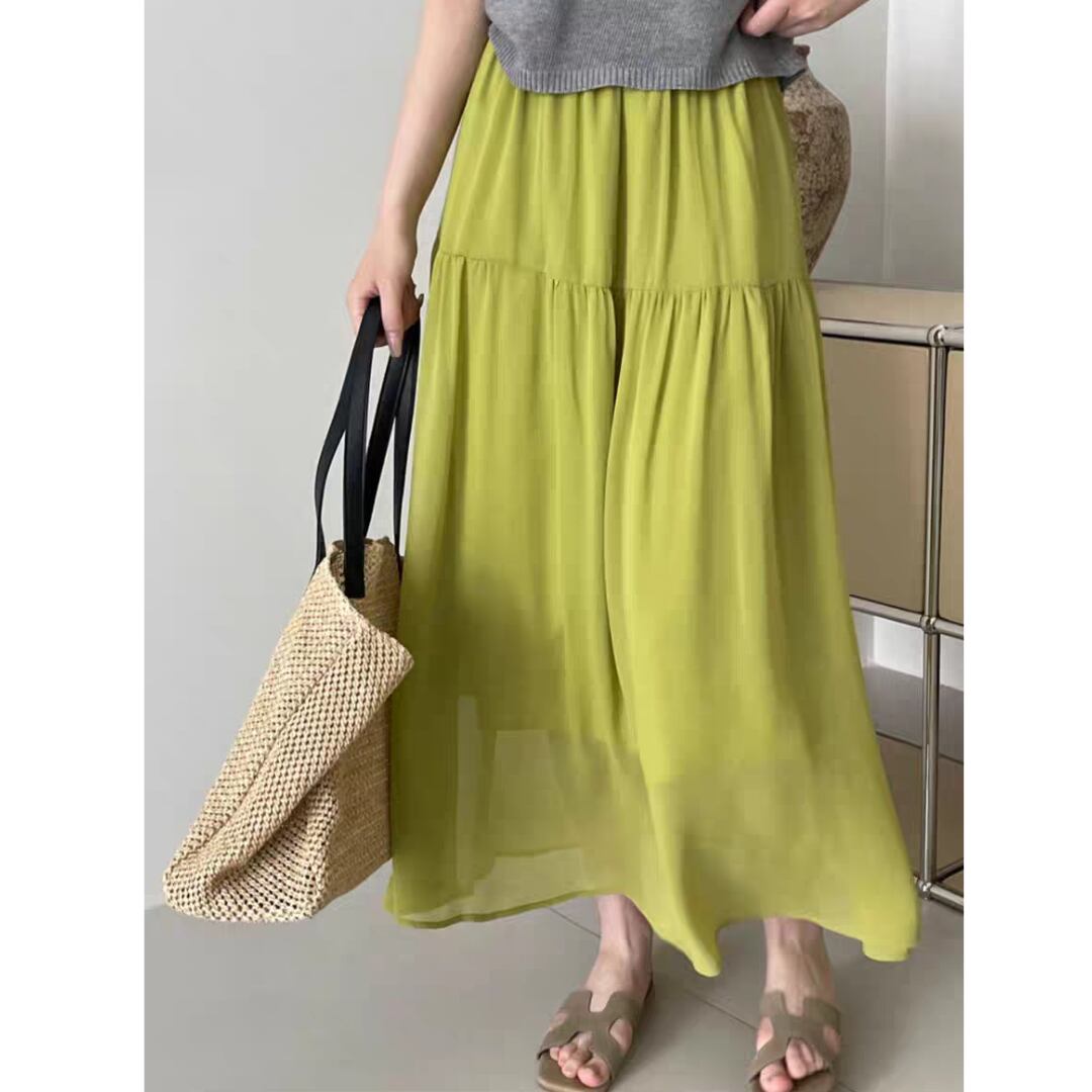 ふんわりと軽やかに揺れる、エアリーなフレアシルエットが魅力のロングスカート。