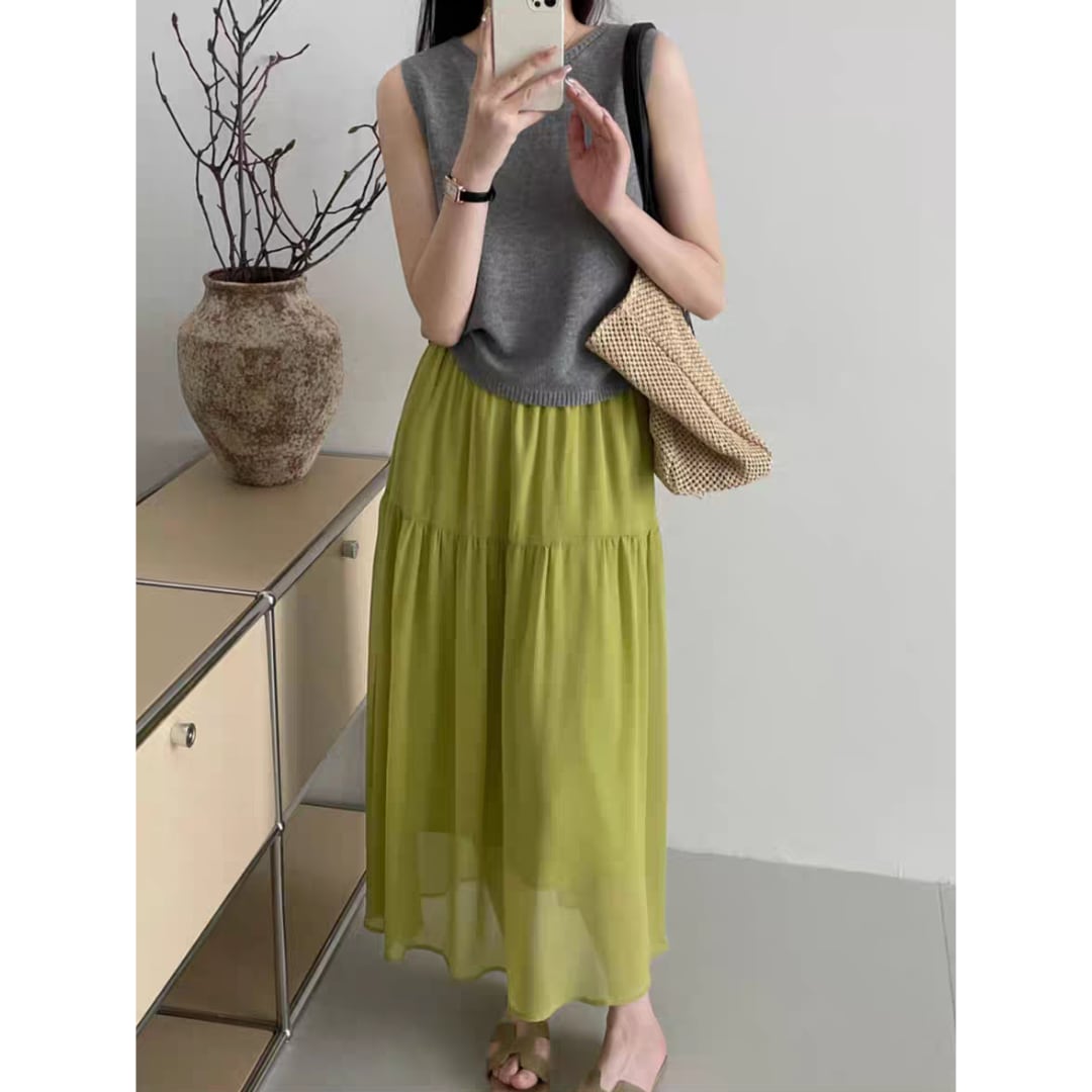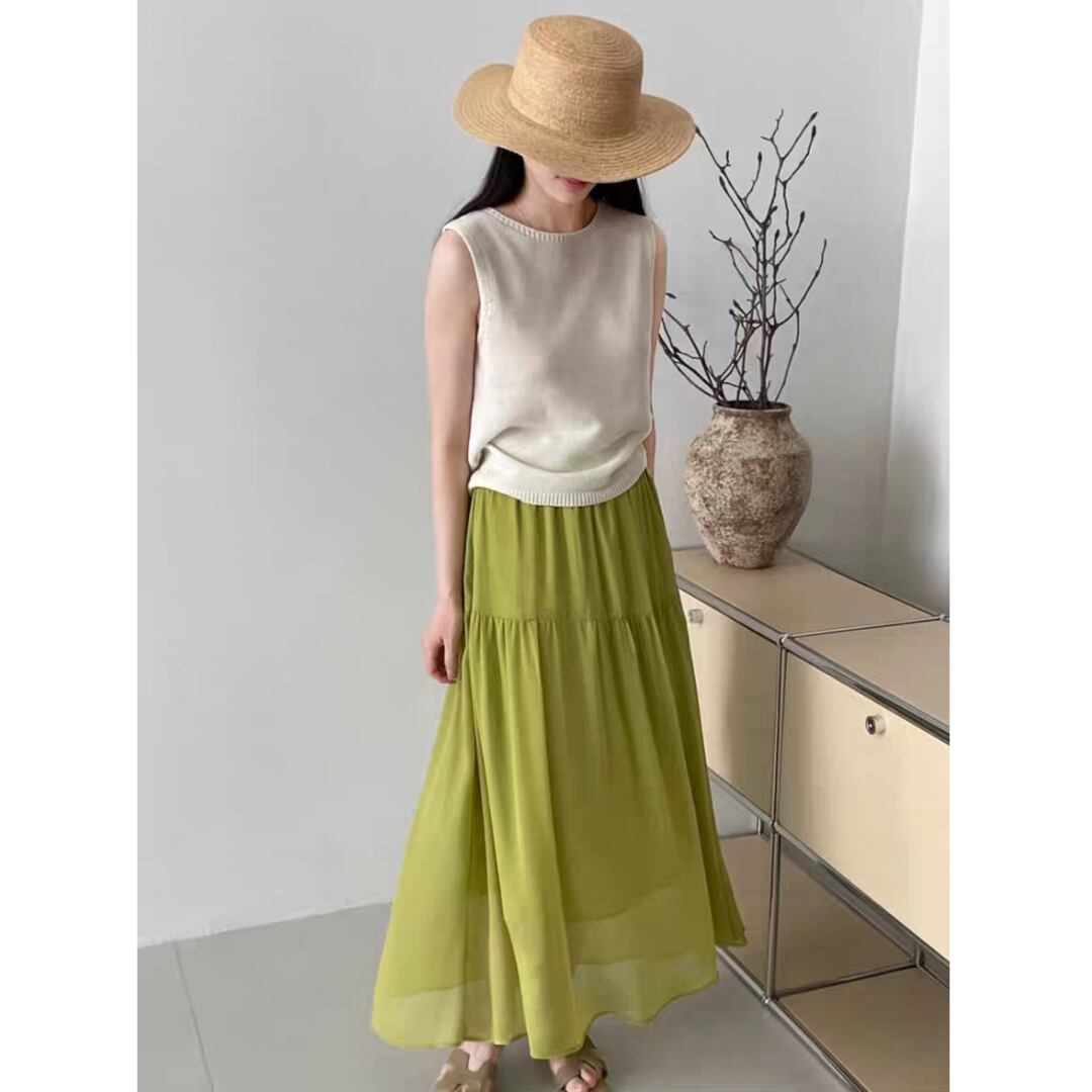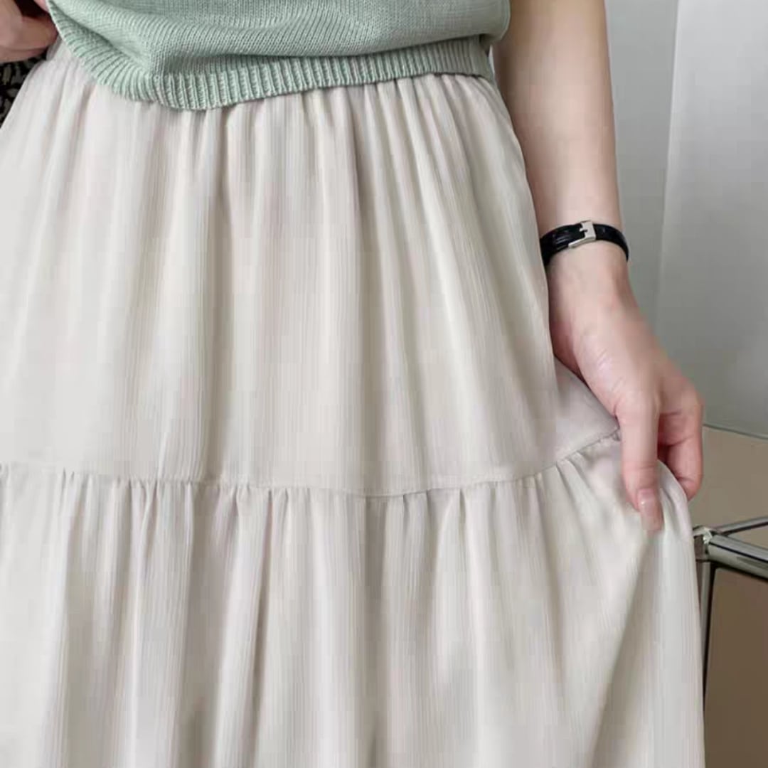 ふんわりと軽やかに揺れる、エアリーなフレアシルエットが魅力のロングスカート。