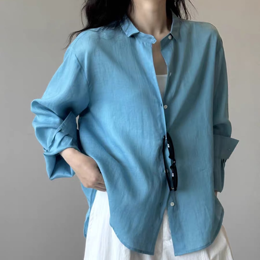 ふんわりと軽やかなラミー×リヨセル素材で仕立てた、上品カラーシャツ。