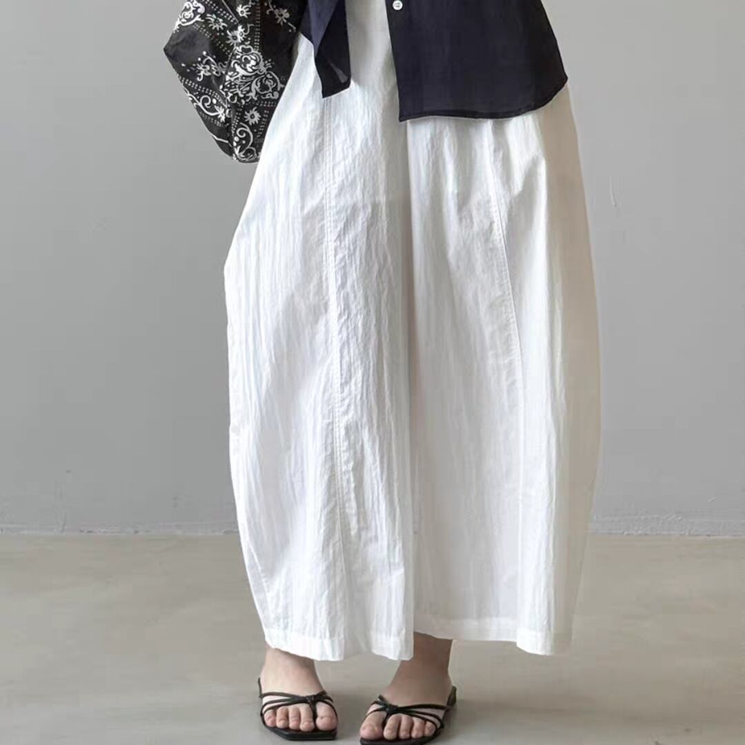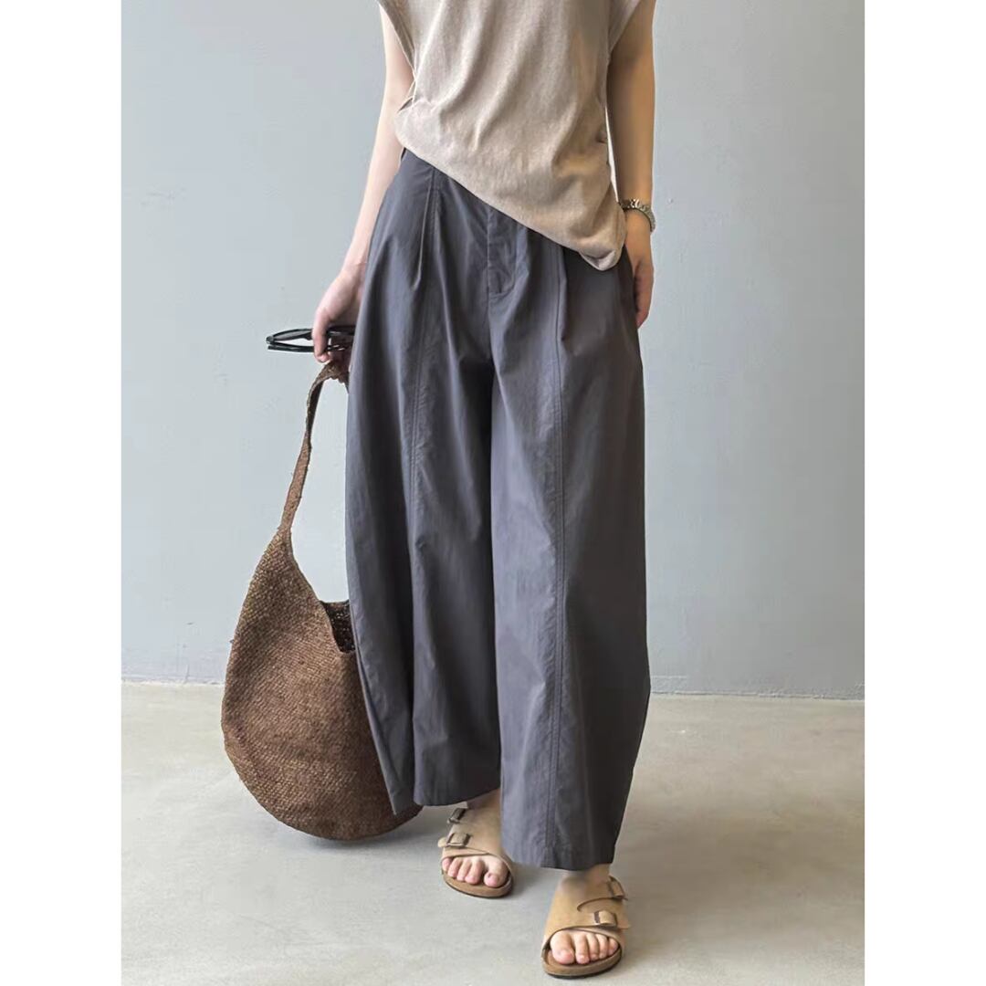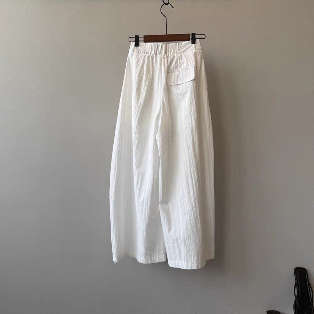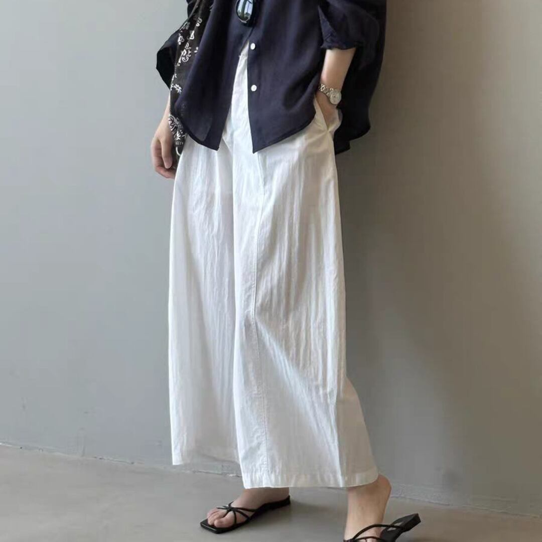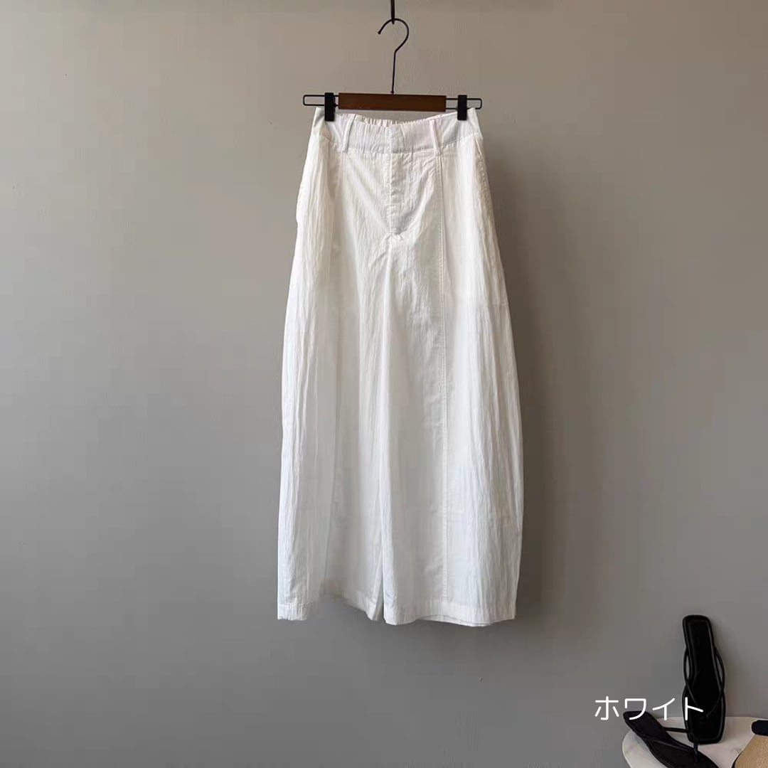 涼しげな風合いが魅力の、軽やかなコットン素材のワイドパンツ。Tシャツやブラウスと合わせて、ナチュラルで洗練された大人のカジュアルスタイルに。