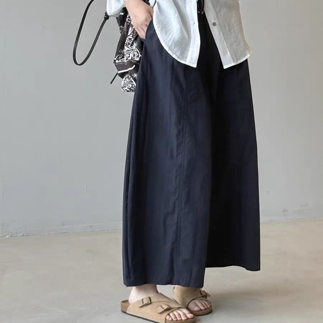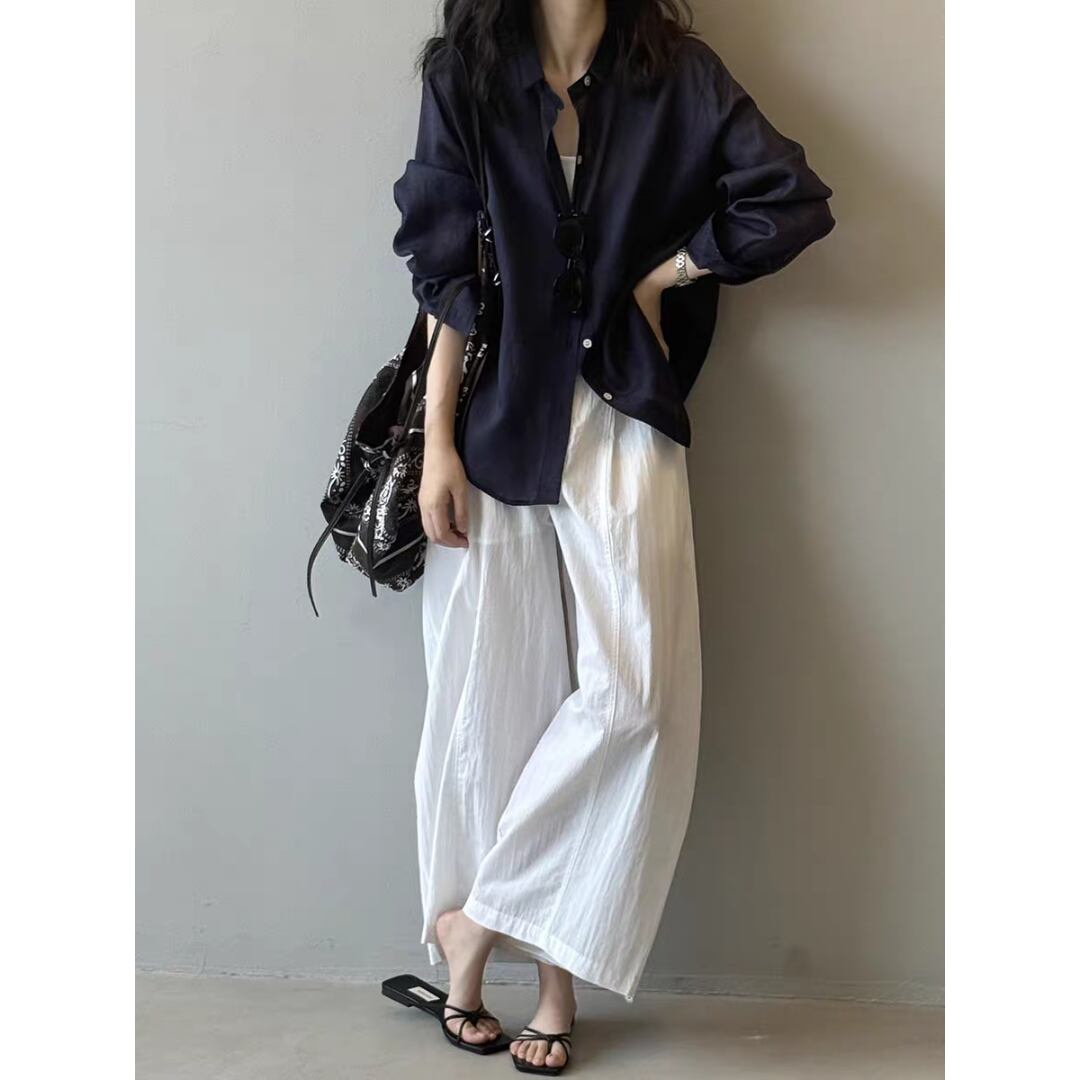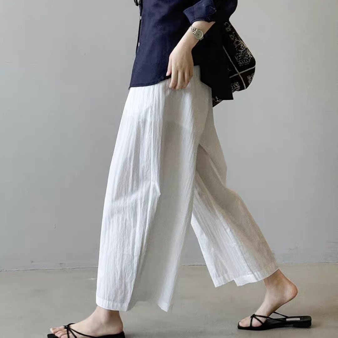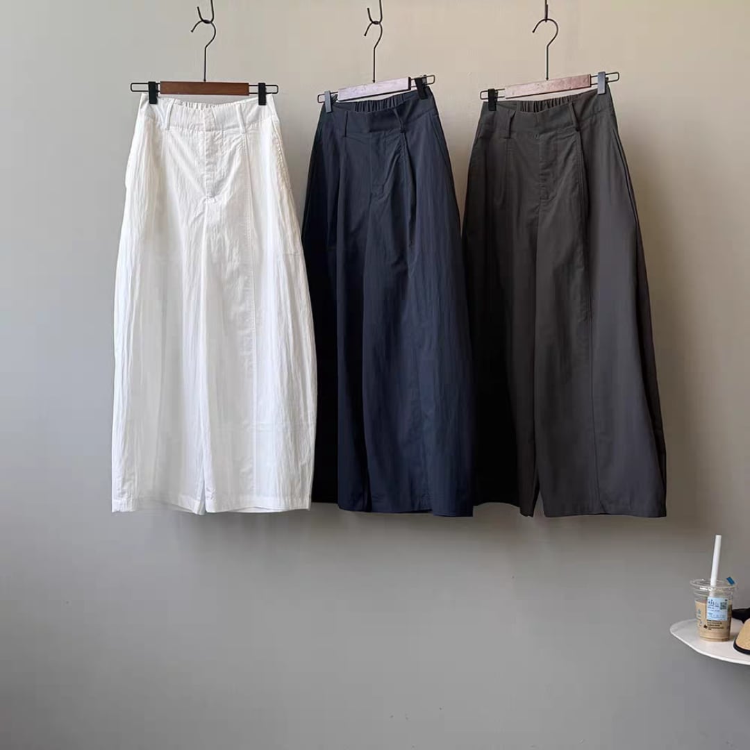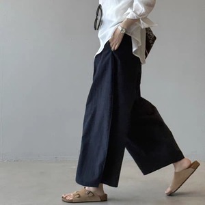 涼しげな風合いが魅力の、軽やかなコットン素材のワイドパンツ。Tシャツやブラウスと合わせて、ナチュラルで洗練された大人のカジュアルスタイルに。