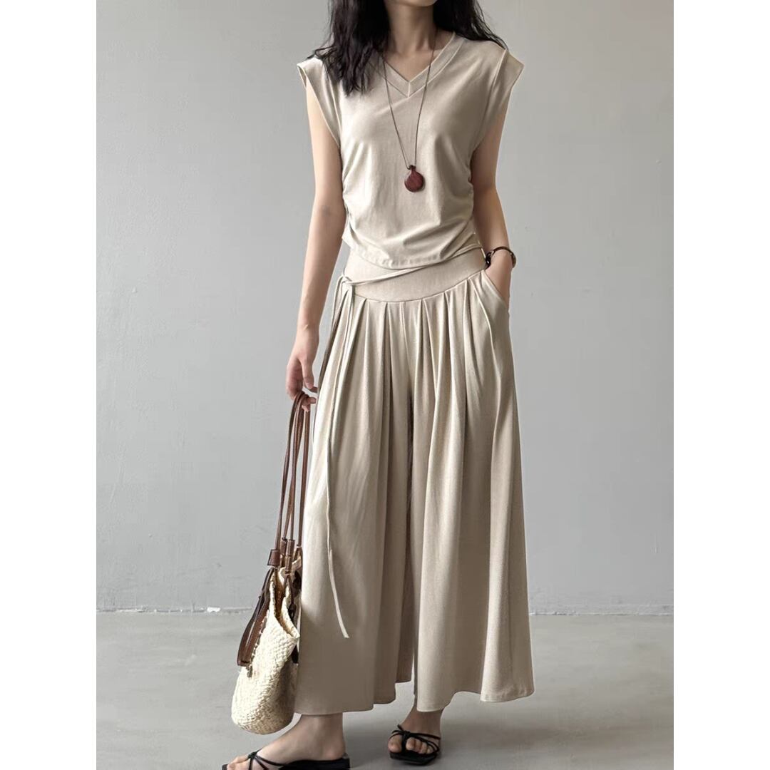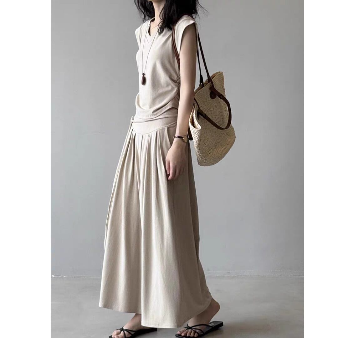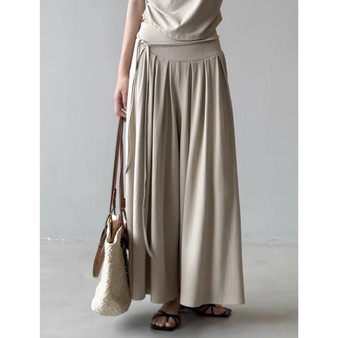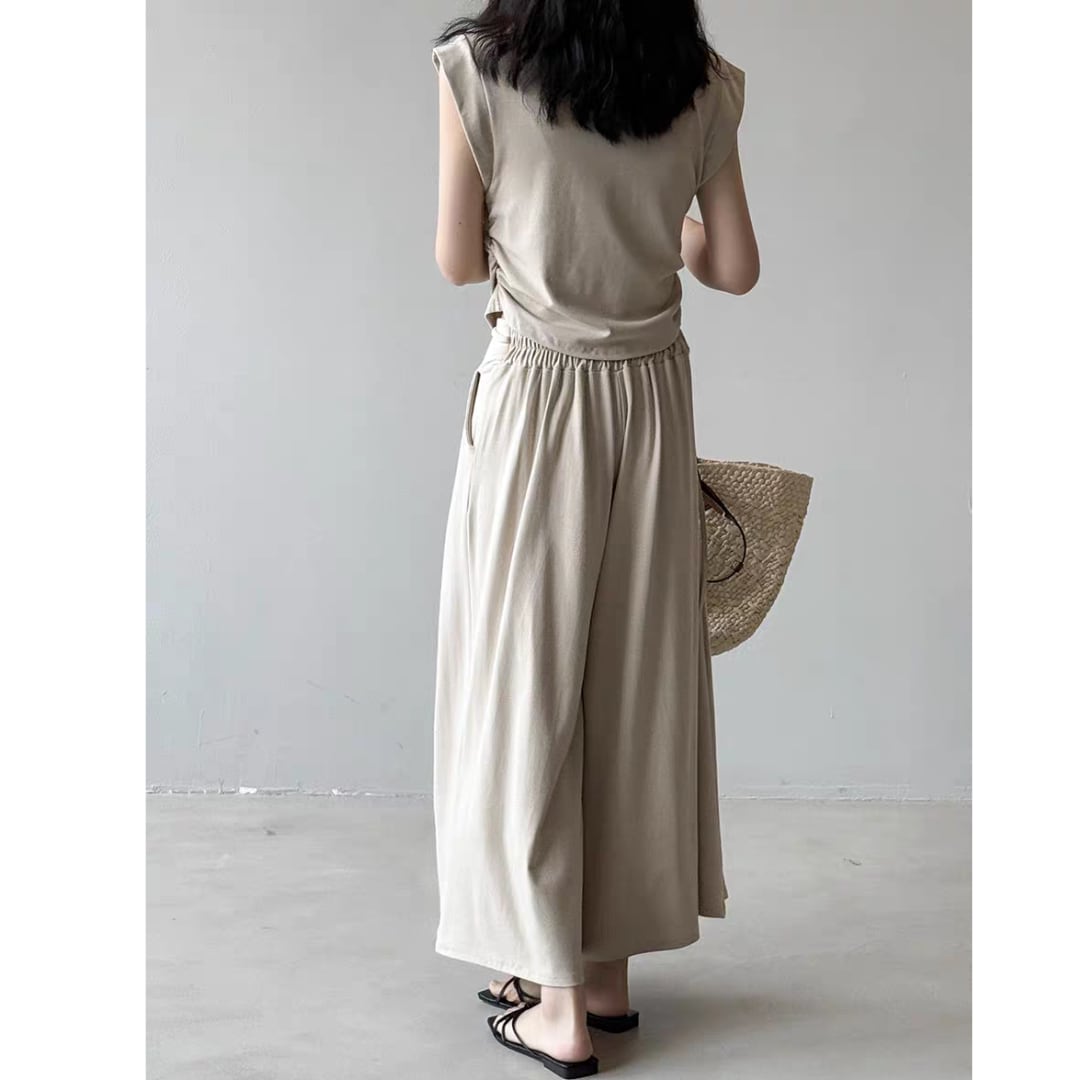 軽やかに揺れるフレアシルエットが魅力のセットアップ。