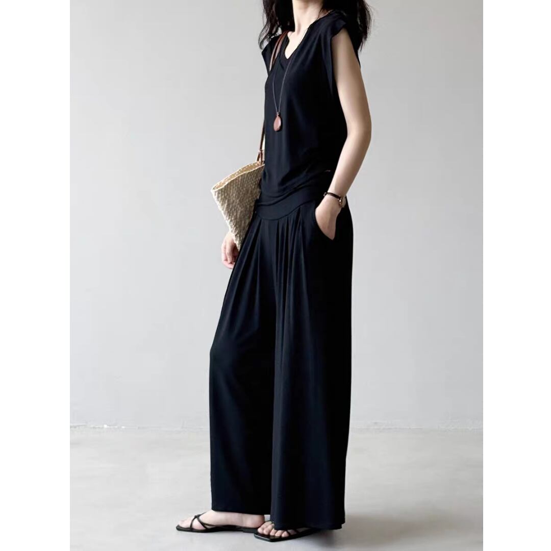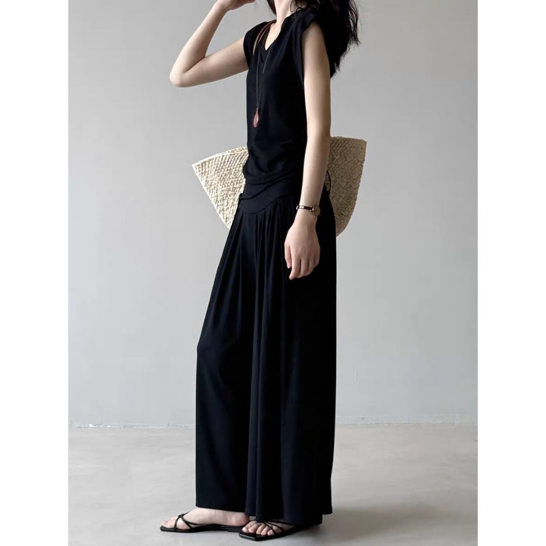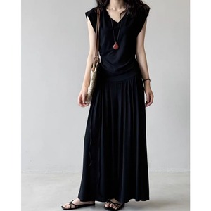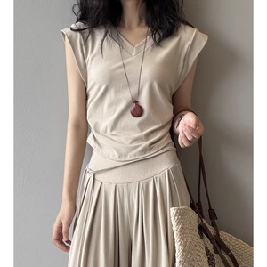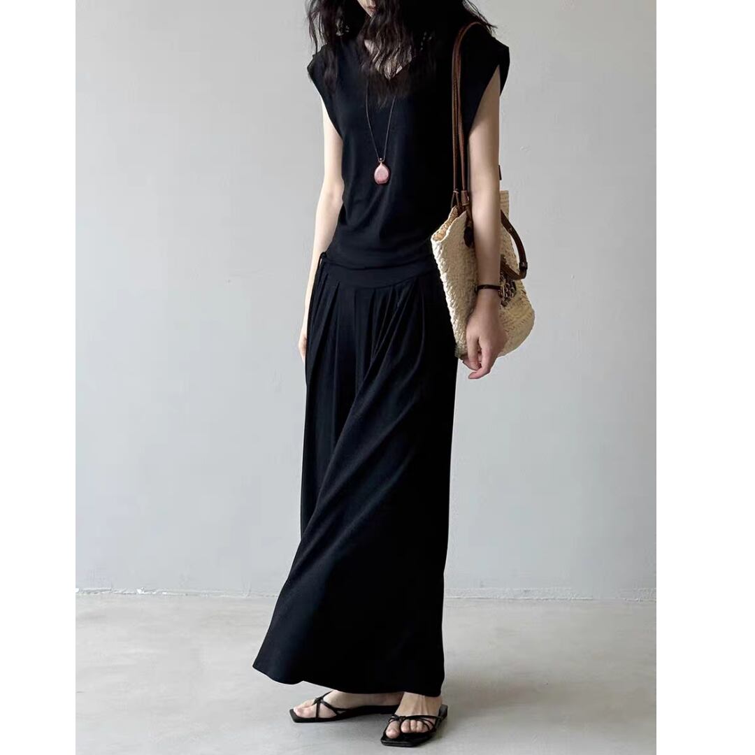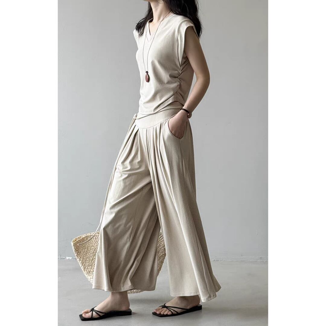 軽やかに揺れるフレアシルエットが魅力のセットアップ。
