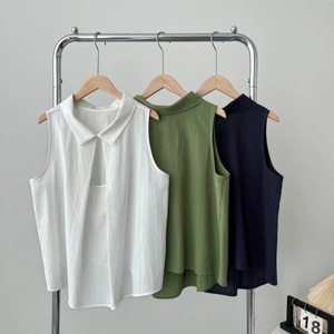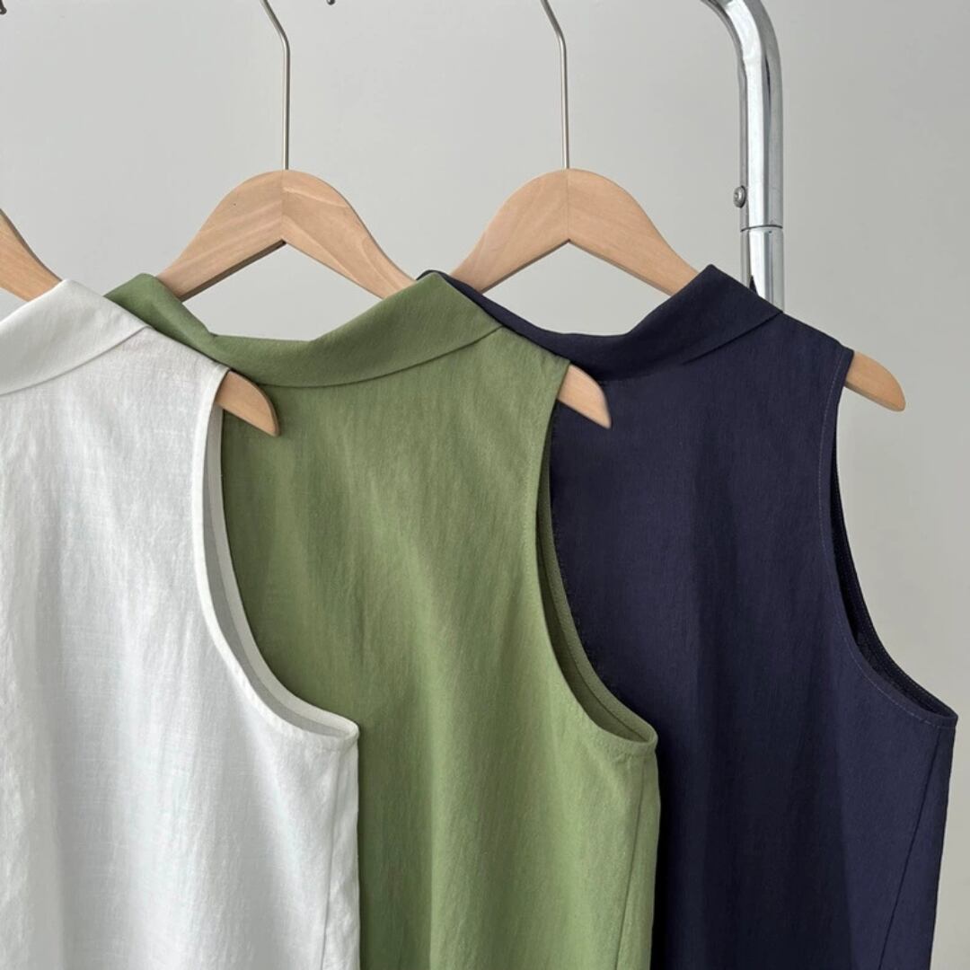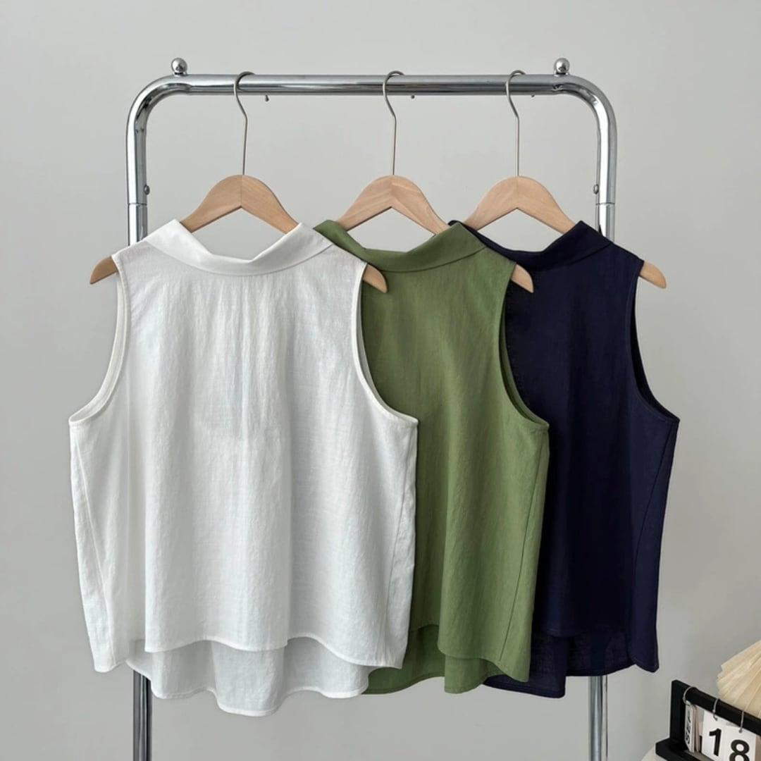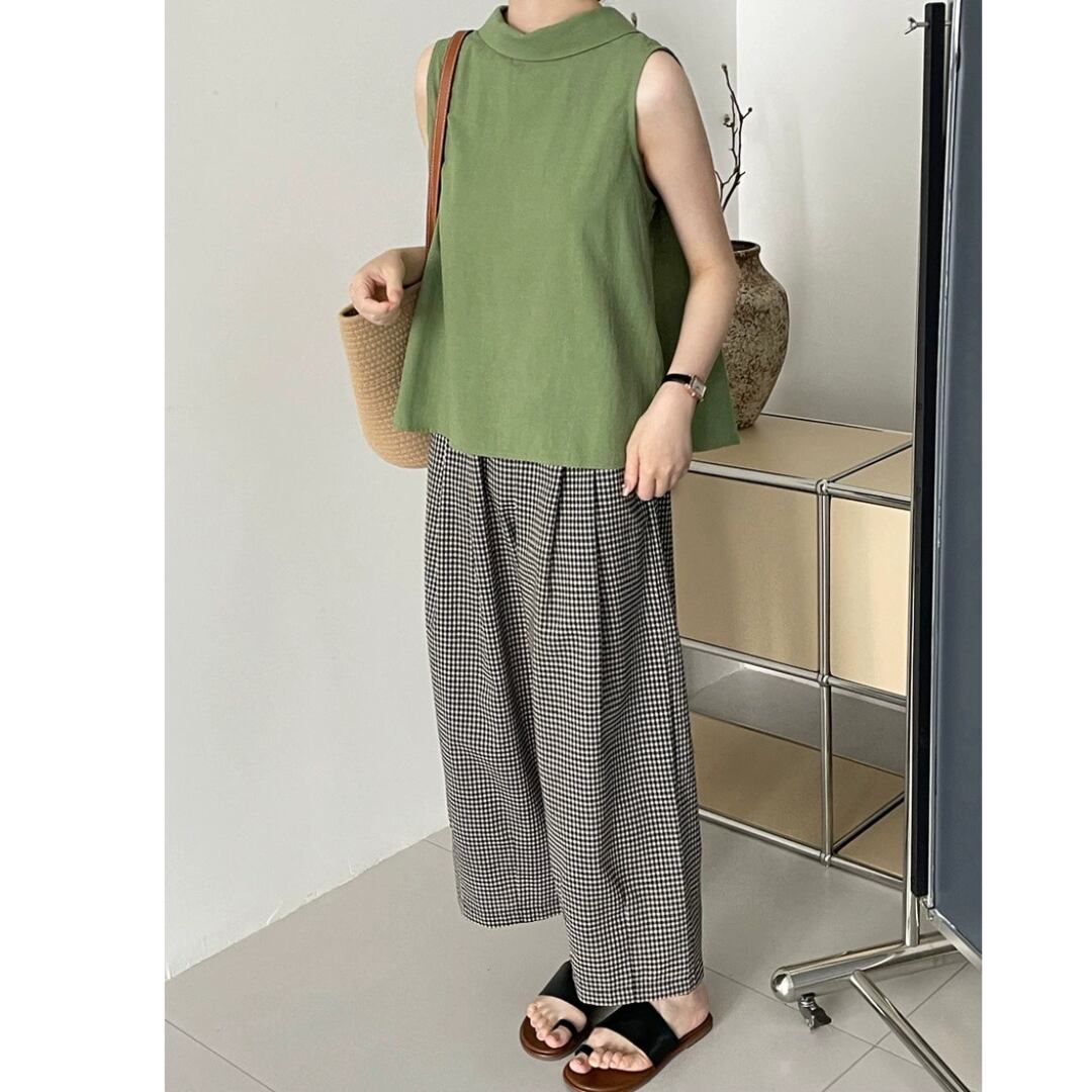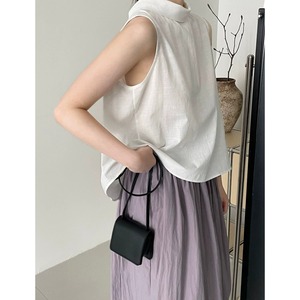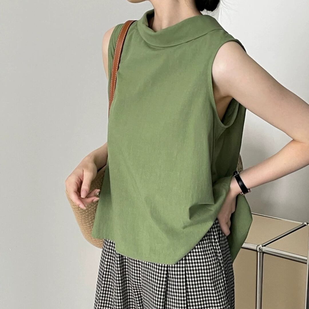 後ろ姿に差がつく、バッククロスデザインが印象的なノースリーブブラウス。