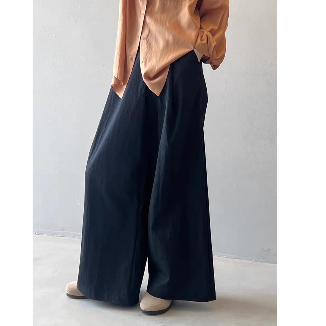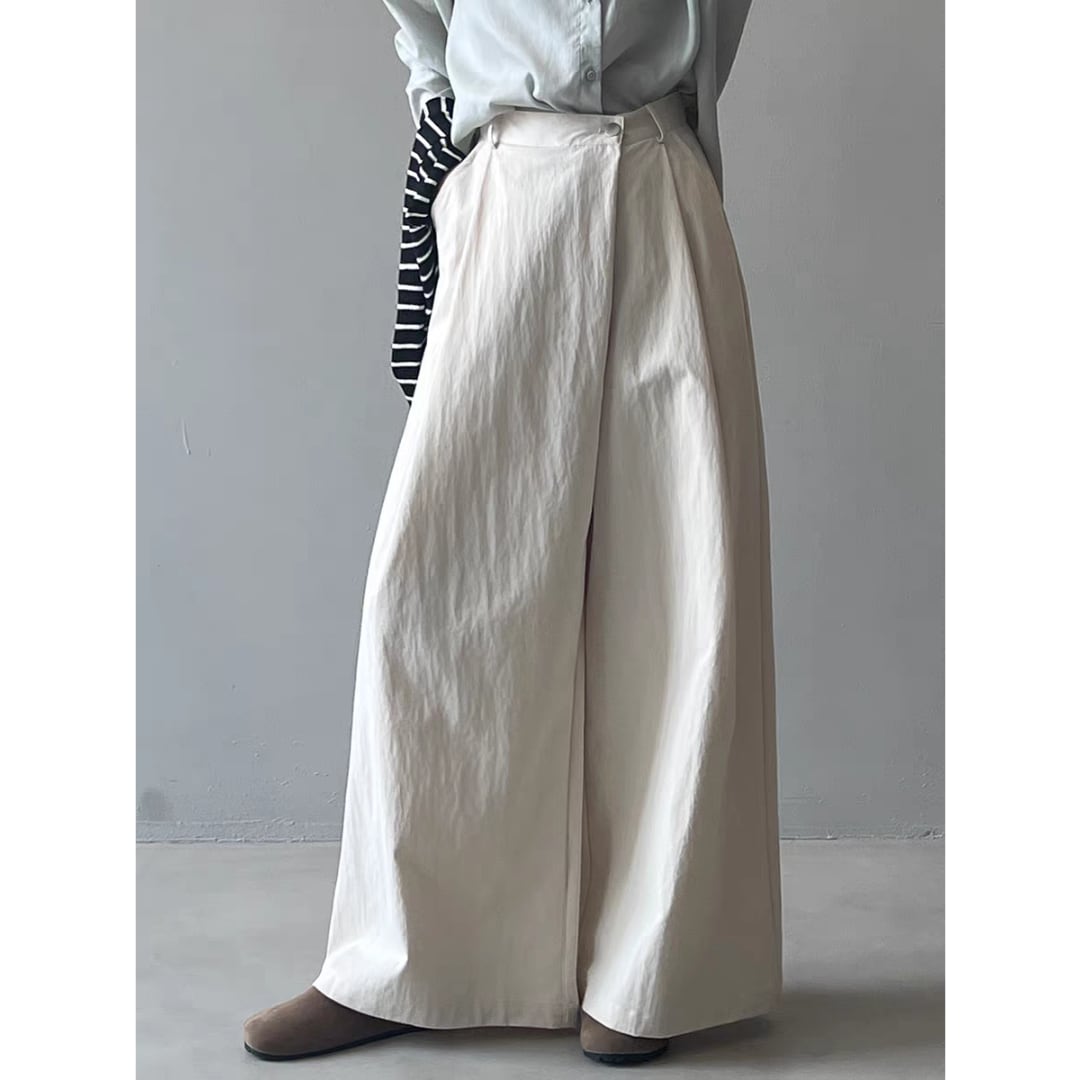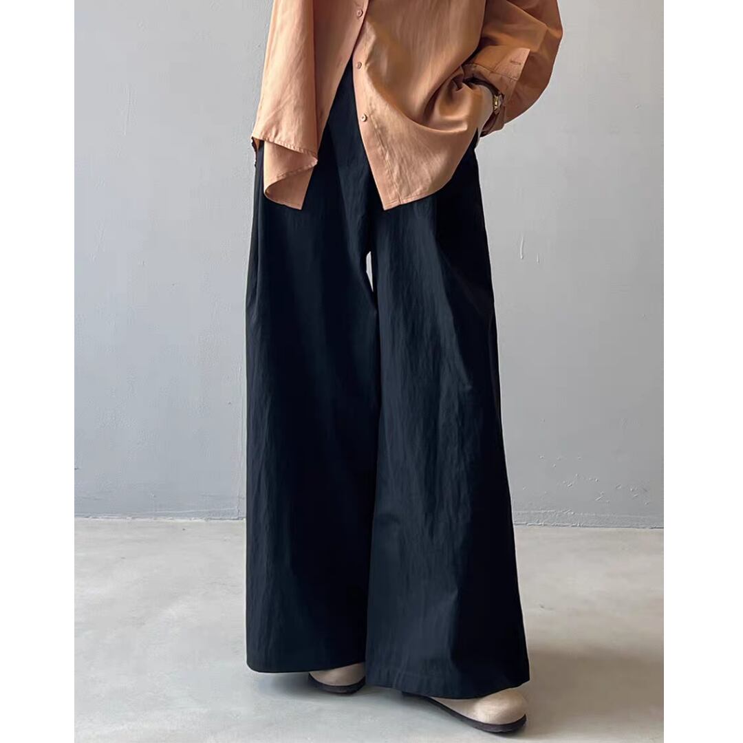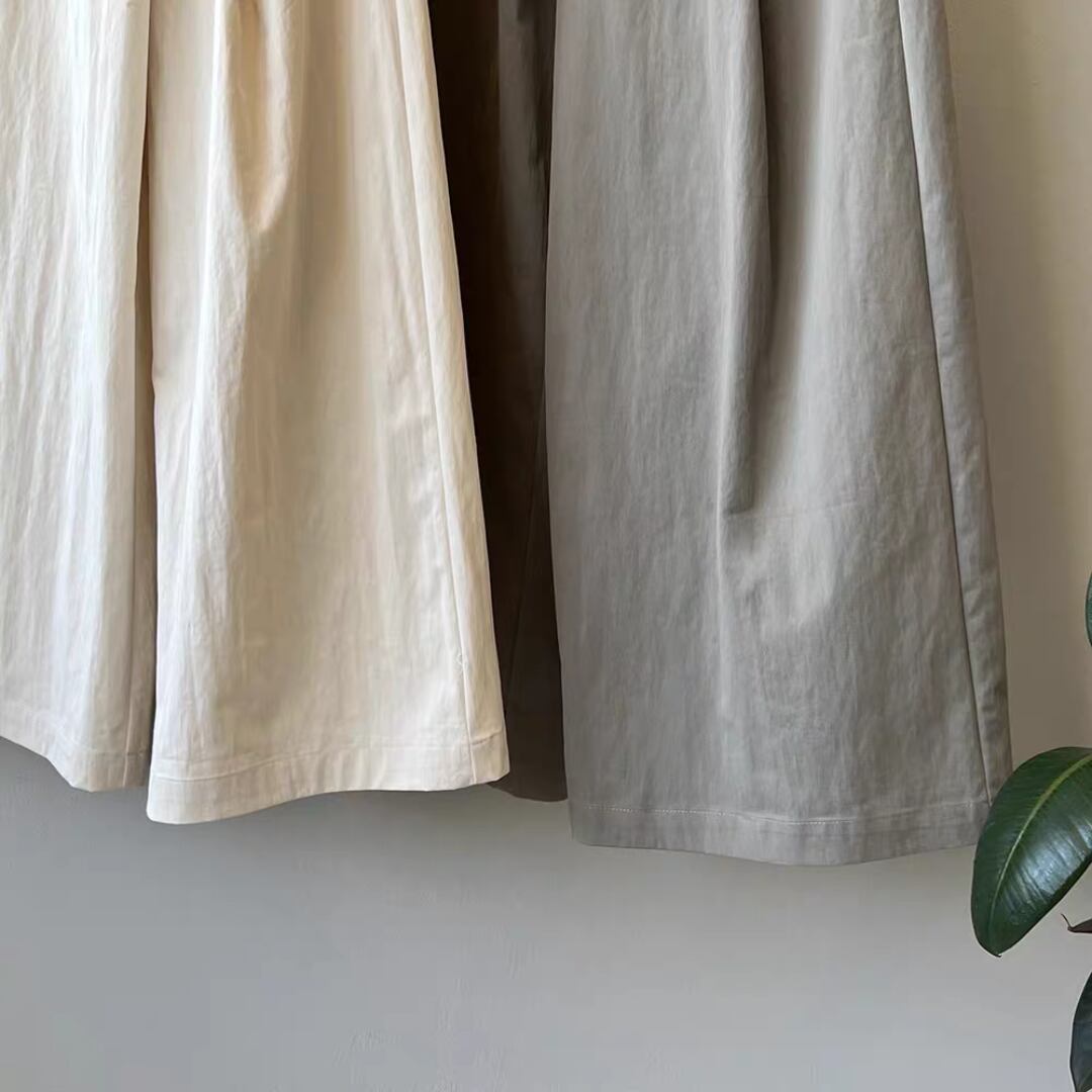 ウエストまわりはすっきりと、裾にかけて広がるシルエットがスタイルアップ効果も◎