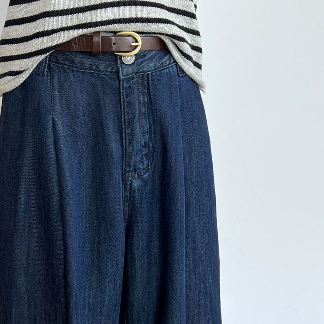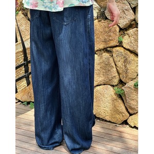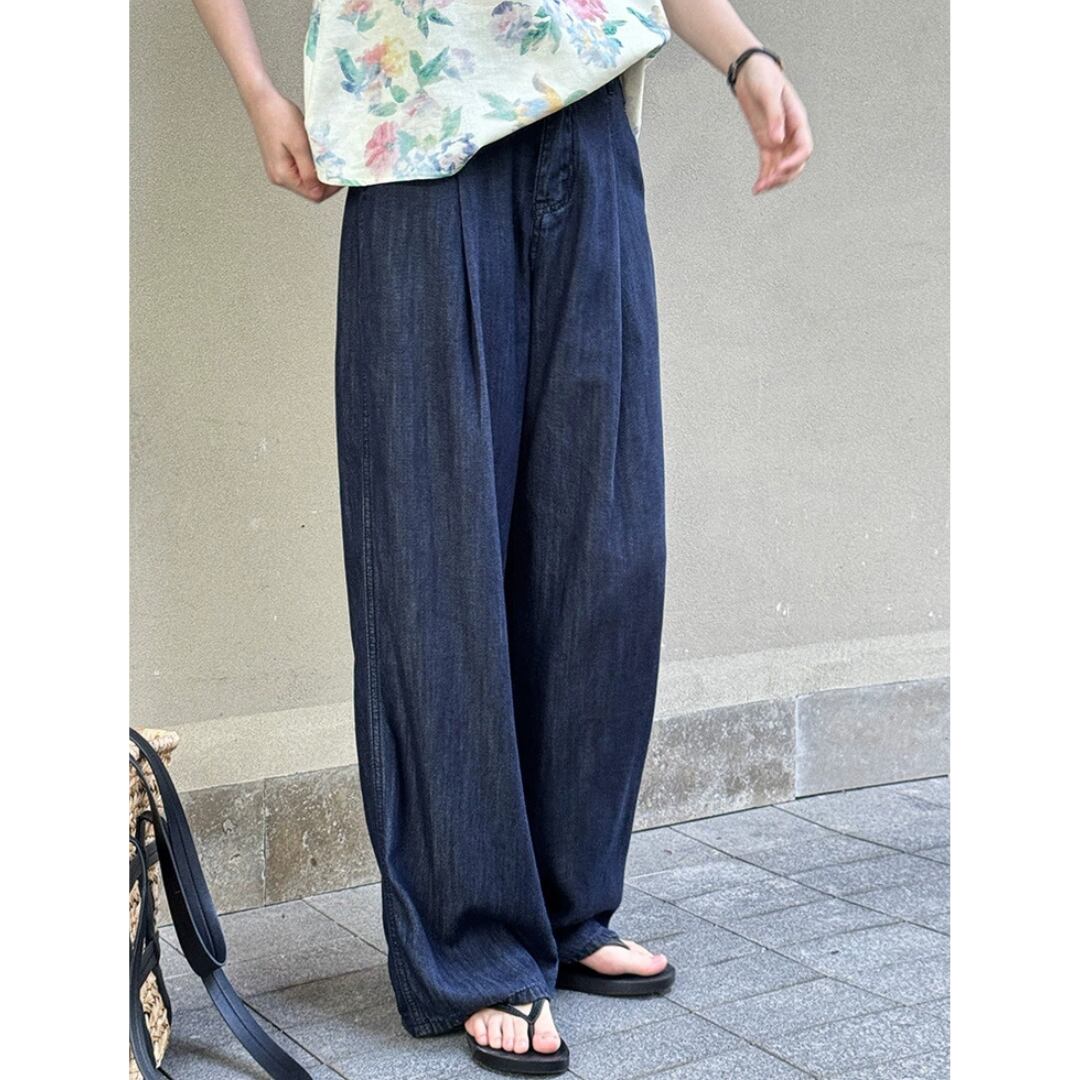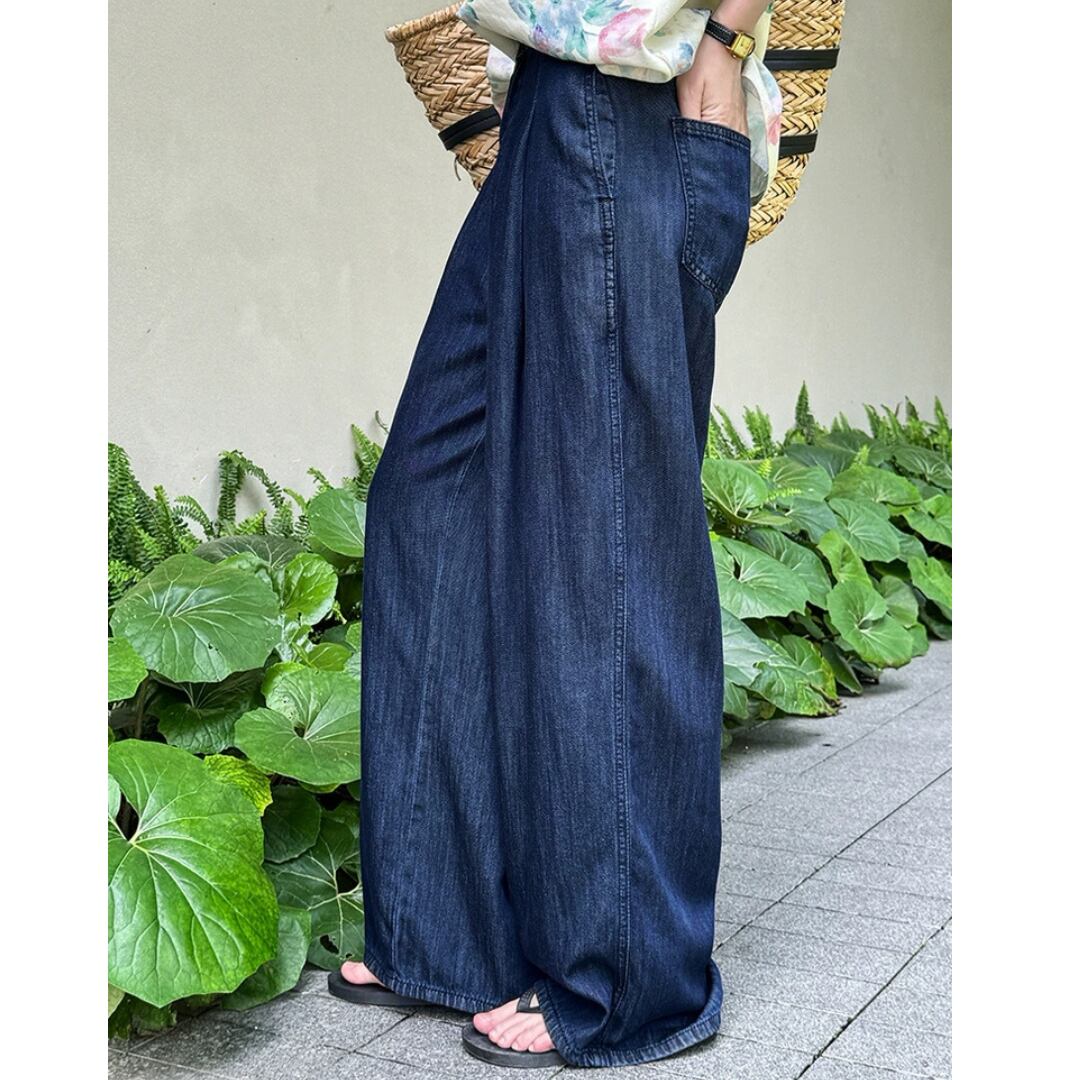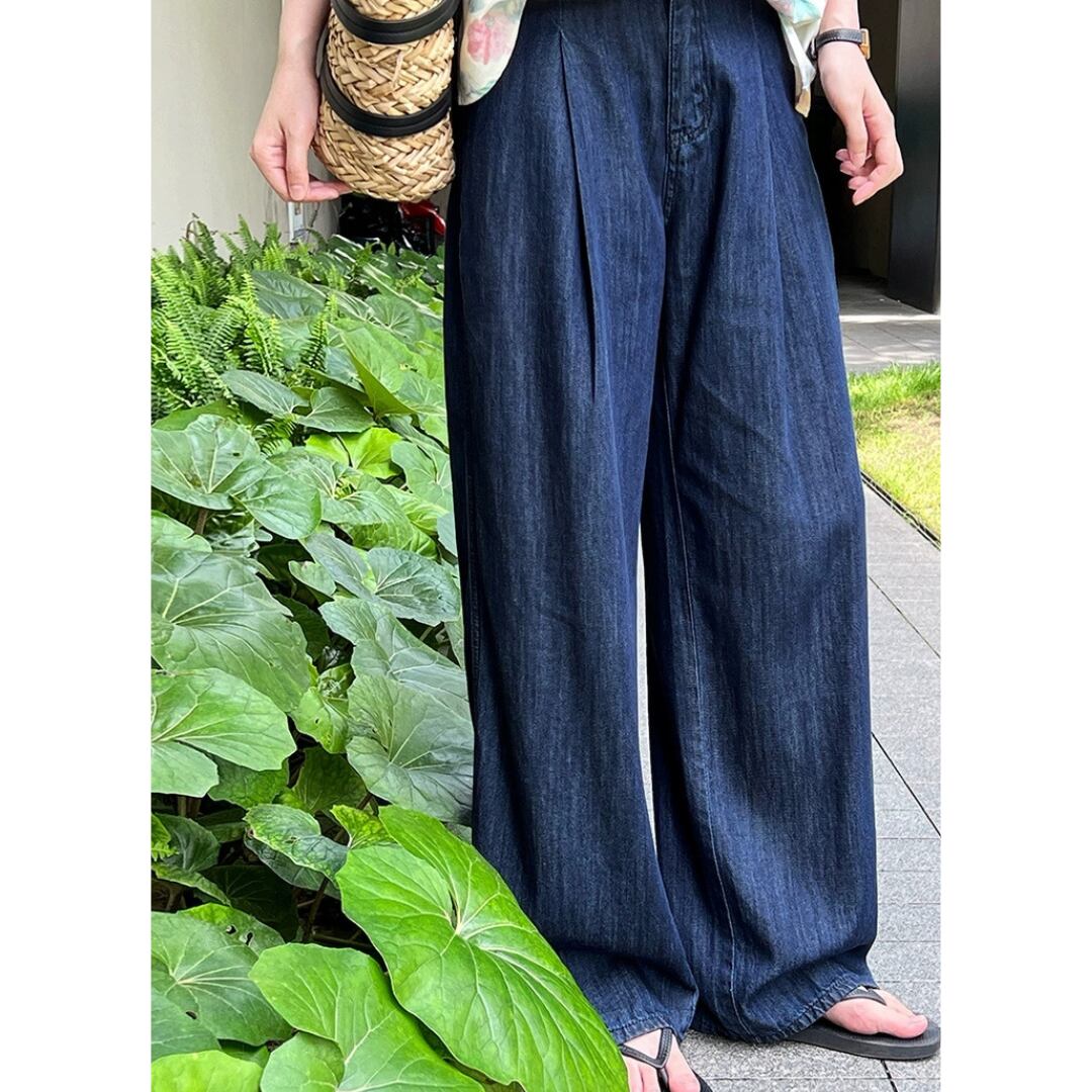 ゆったりとしたシルエットが魅力のワイドデニムパンツ。