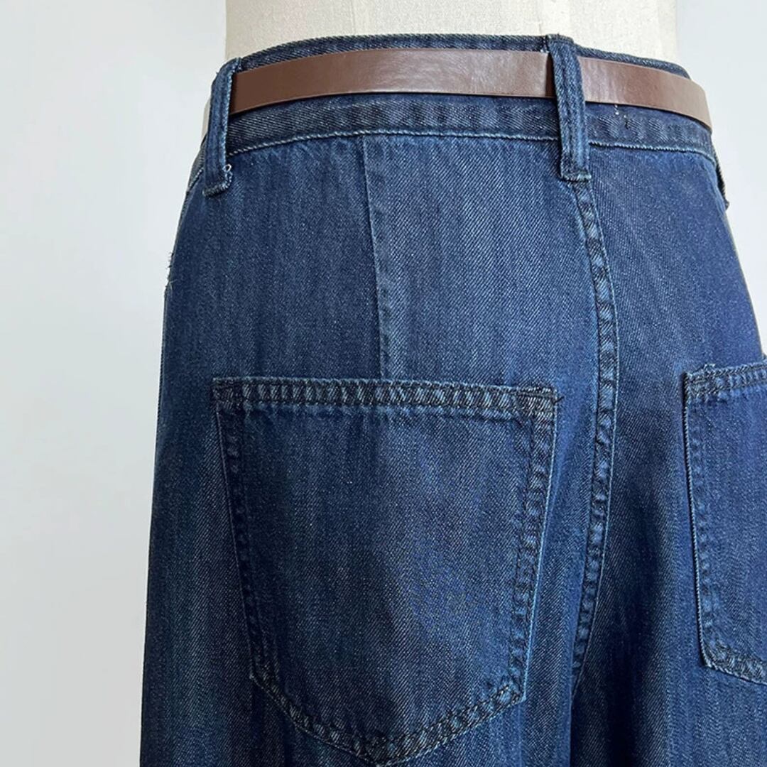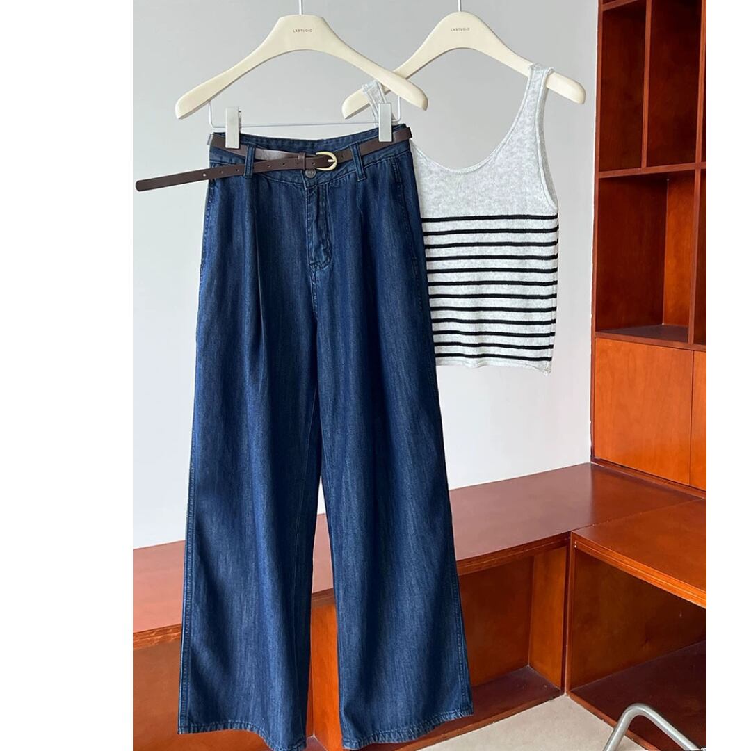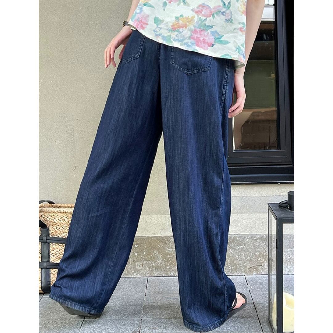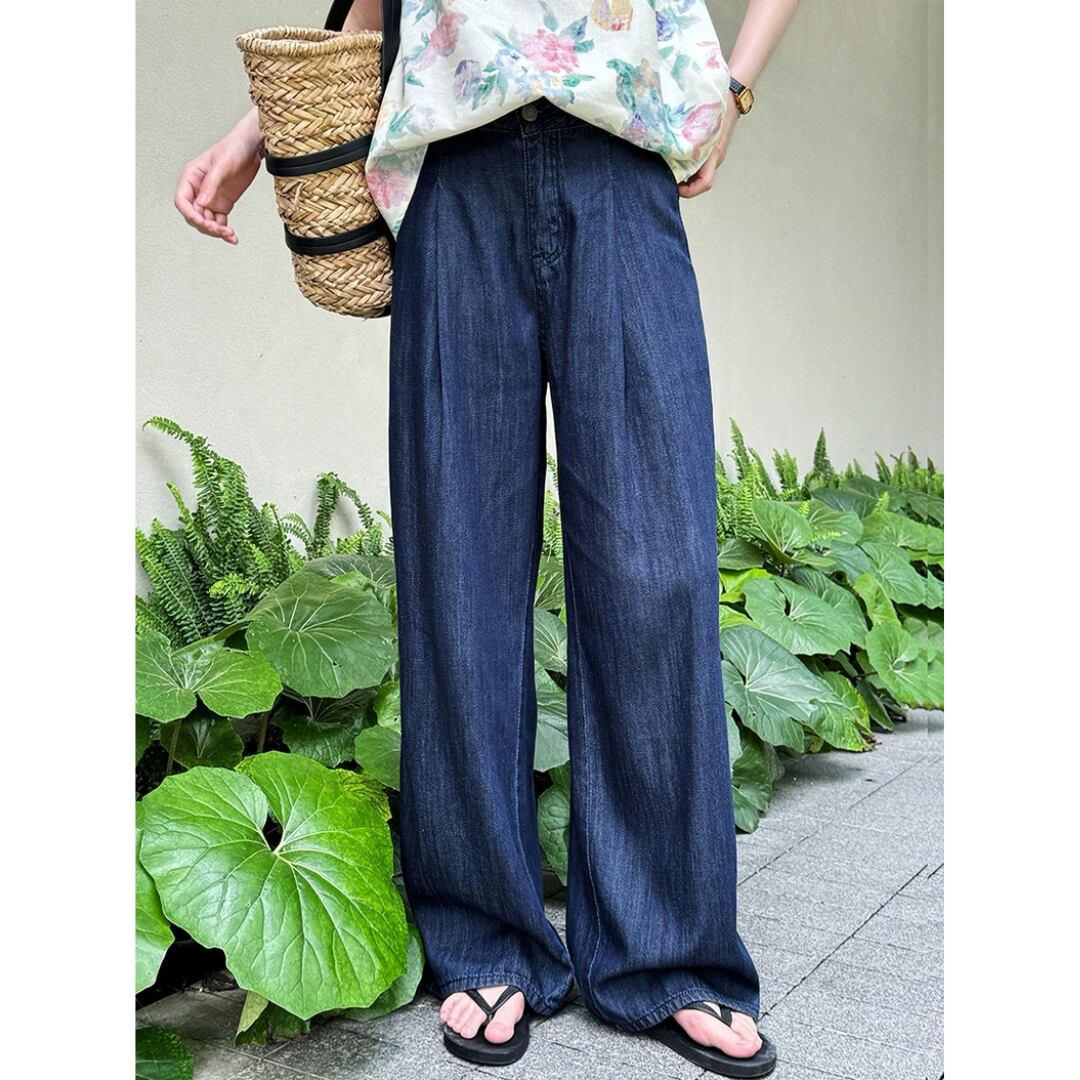 ゆったりとしたシルエットが魅力のワイドデニムパンツ。