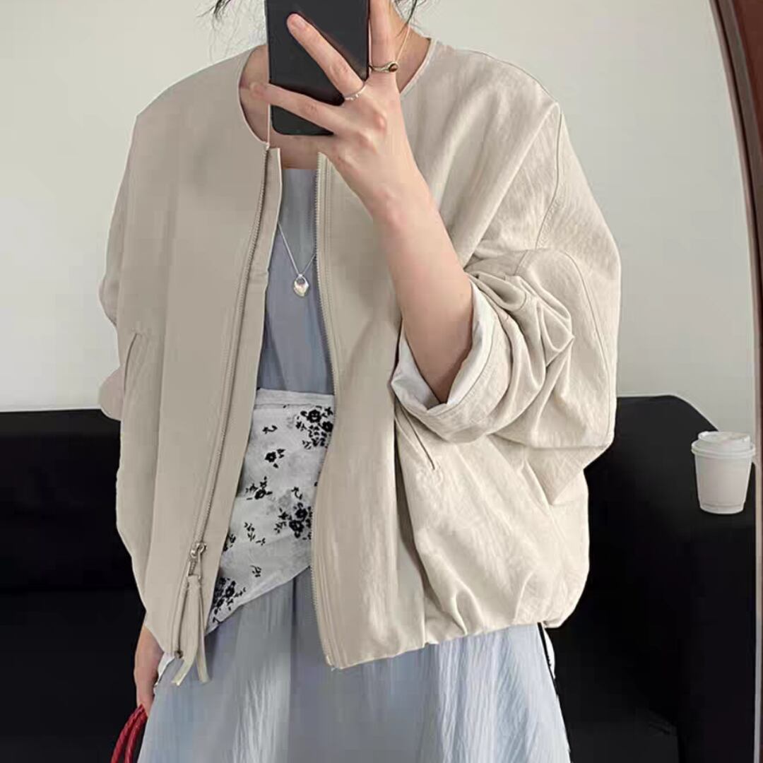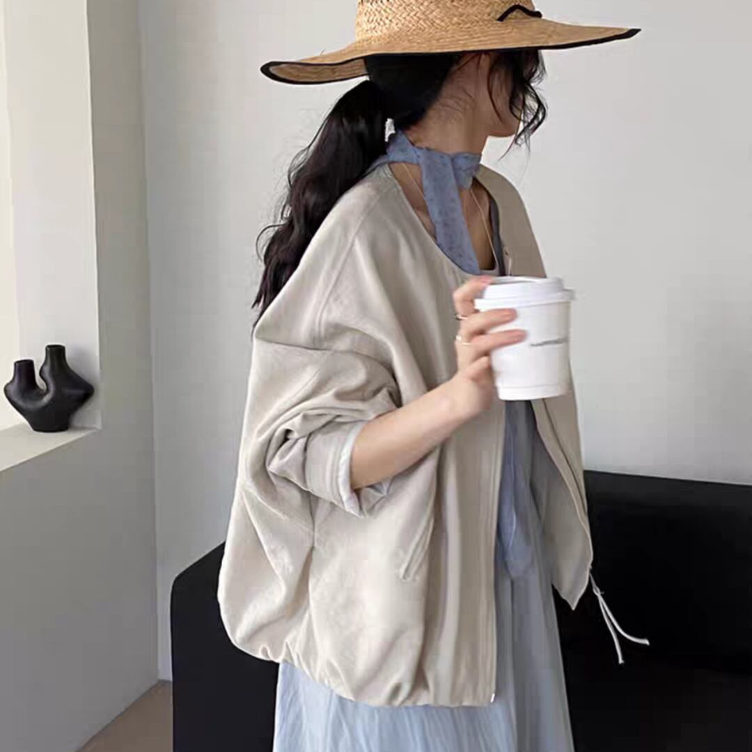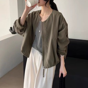 丸みのある立体シルエットが女性らしさを引き立て、裾のドローストリングでシルエット調整も可能。春夏の羽織りとしてワンピースやデニムに合わせて、ナチュラルな大人カジュアルを楽しめる1枚です。