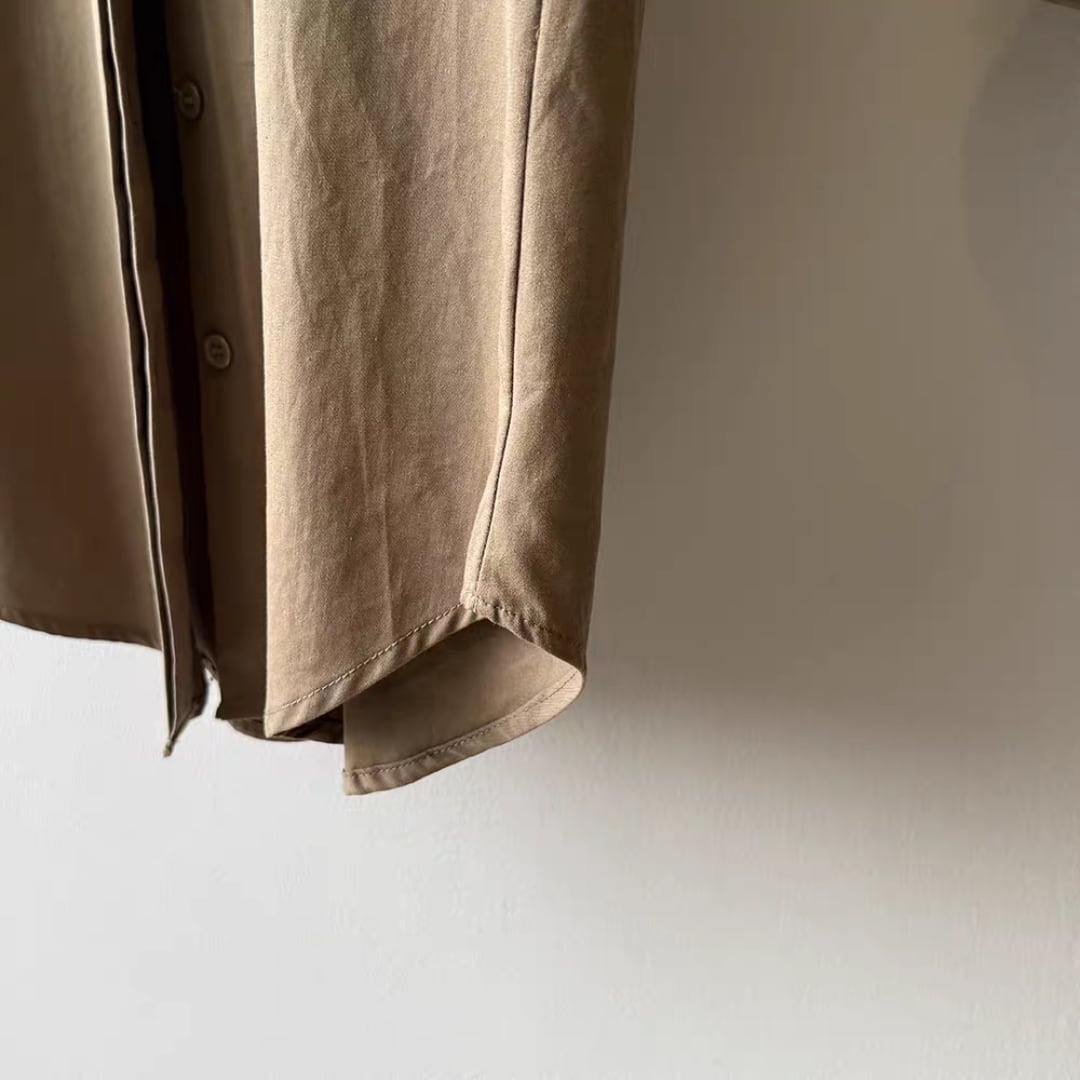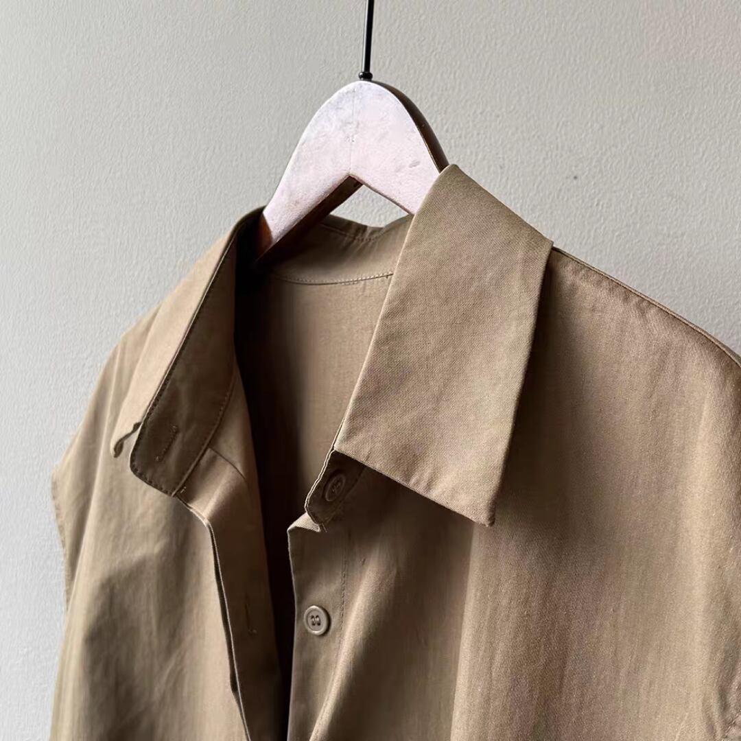 シャツは肩のラインを美しく見せる控えめな袖デザインと、リラックス感のある着丈で、大人の抜け感を演出。