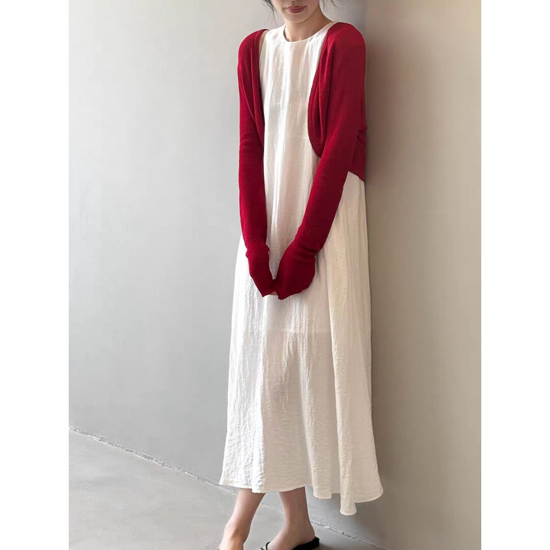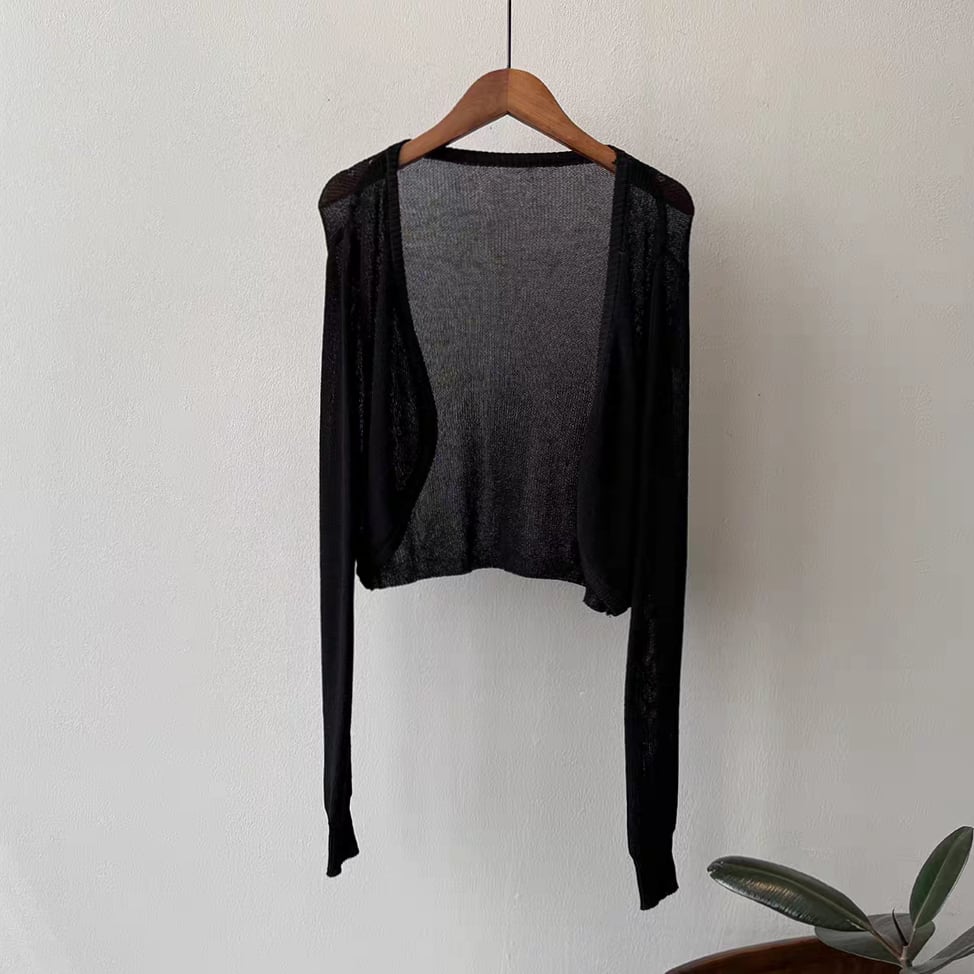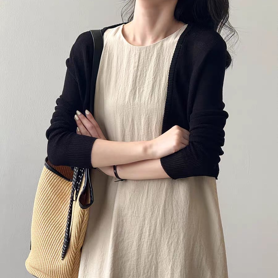 ショート丈でワンピースやキャミワンピにぴったり合わせやすく、冷房対策や日除けにも活躍します。