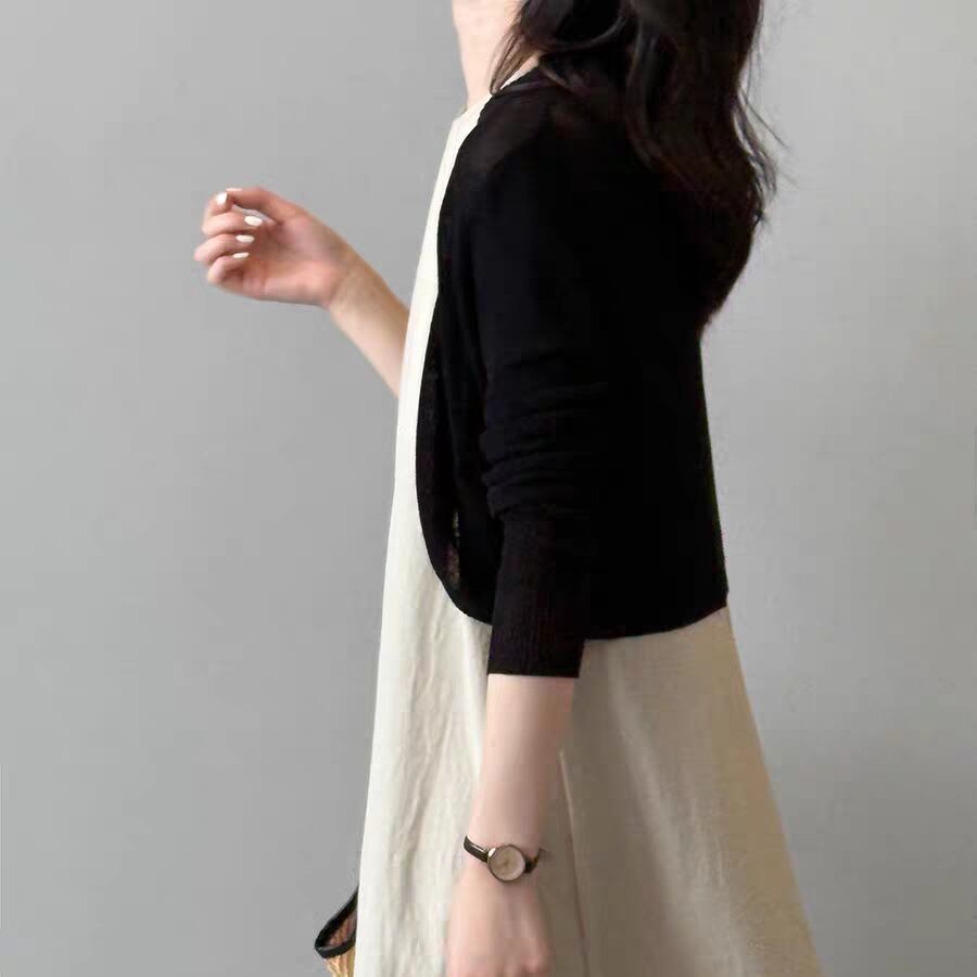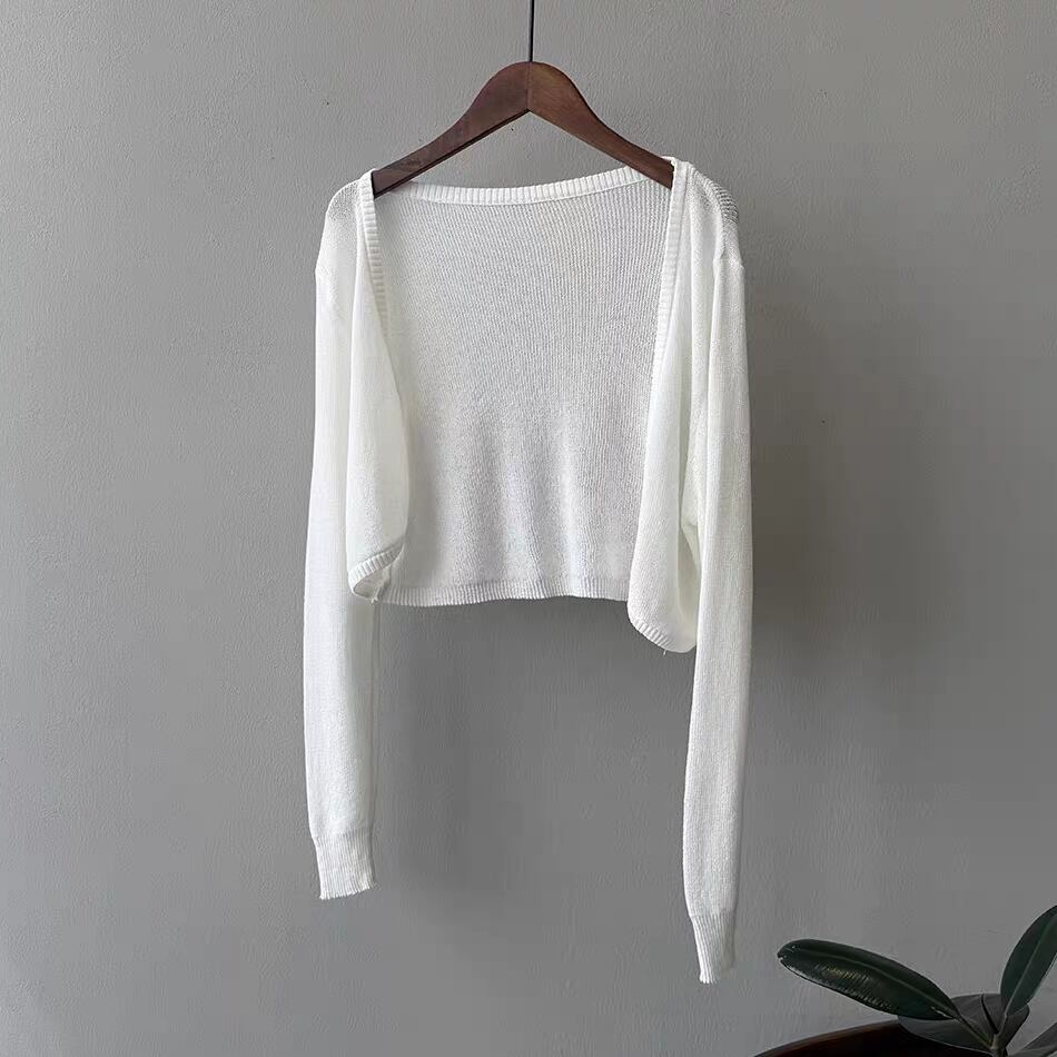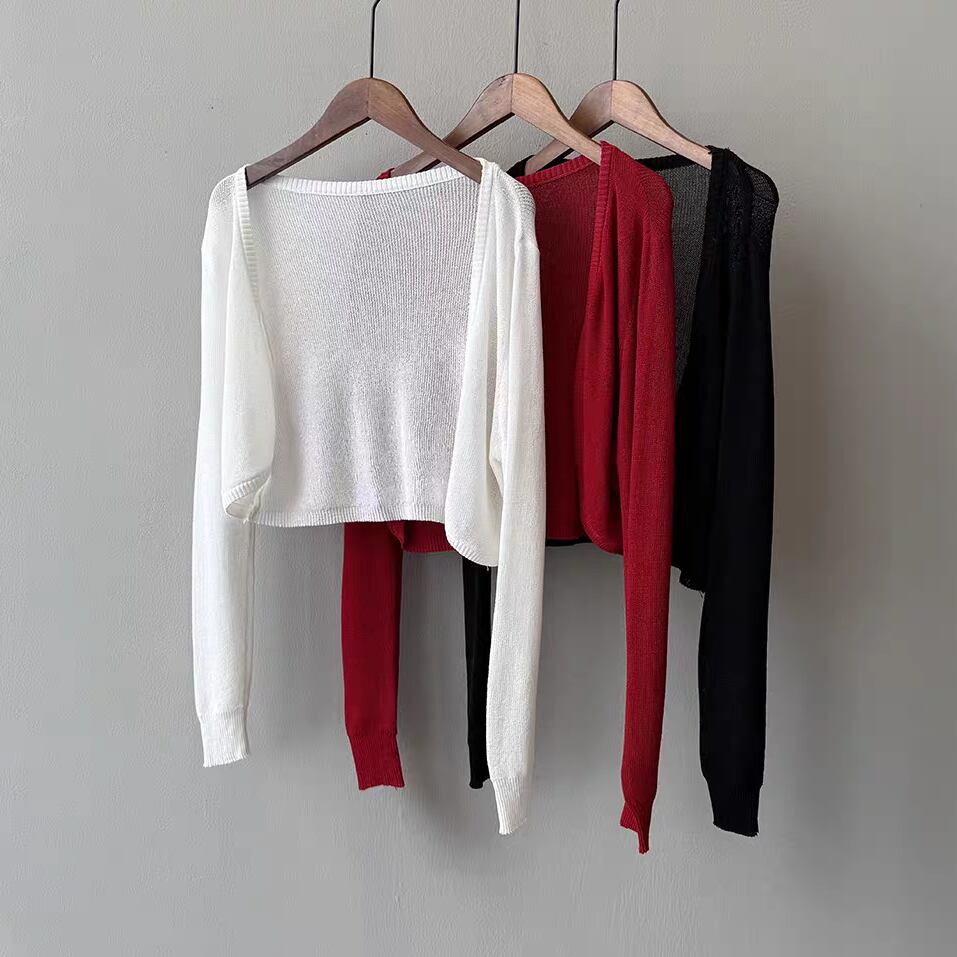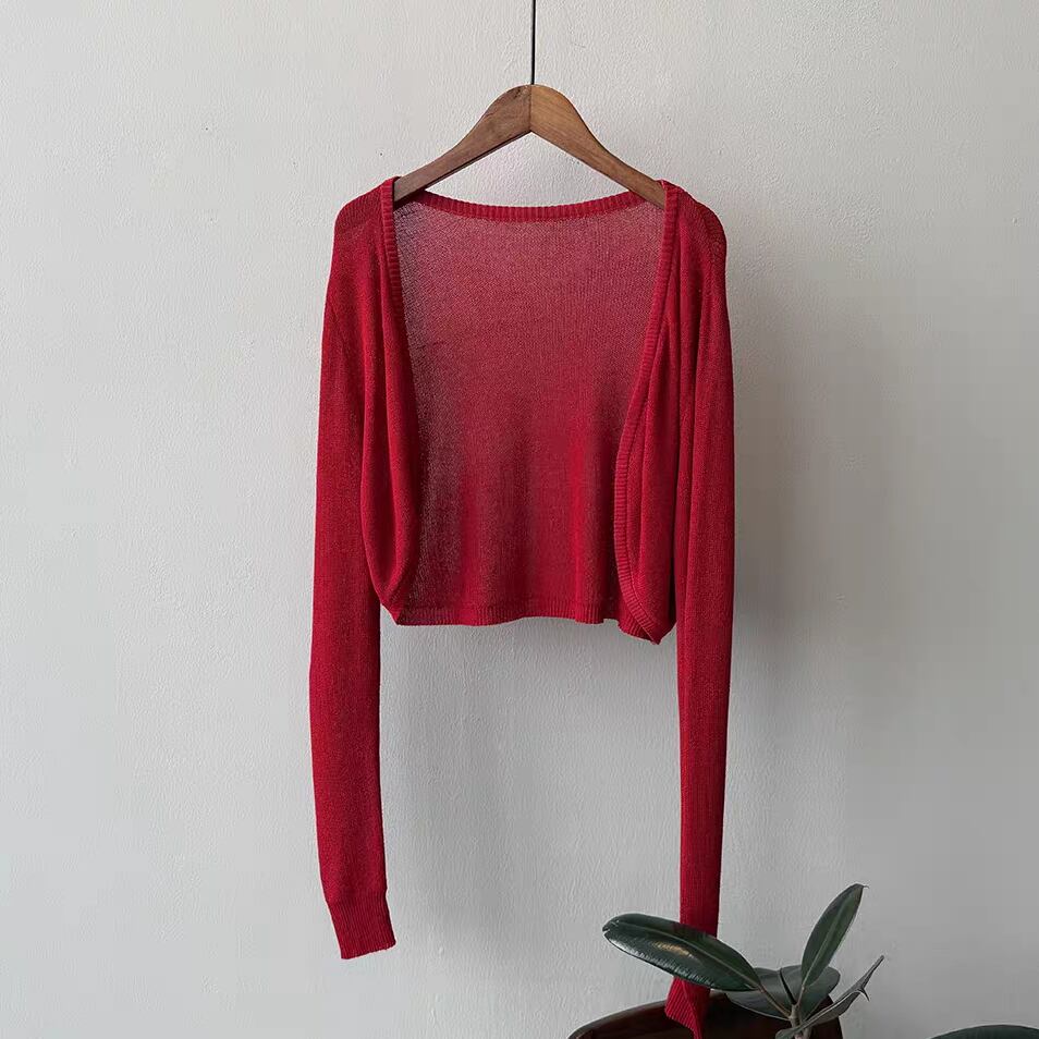 ショート丈でワンピースやキャミワンピにぴったり合わせやすく、冷房対策や日除けにも活躍します。