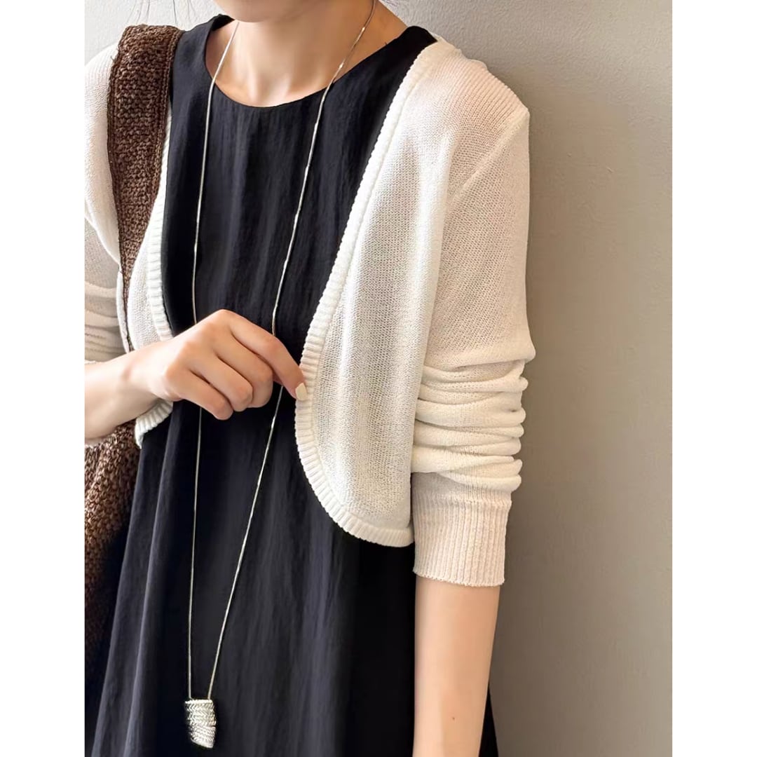 軽やかに羽織れる、シンプルで上品なニットボレロ。