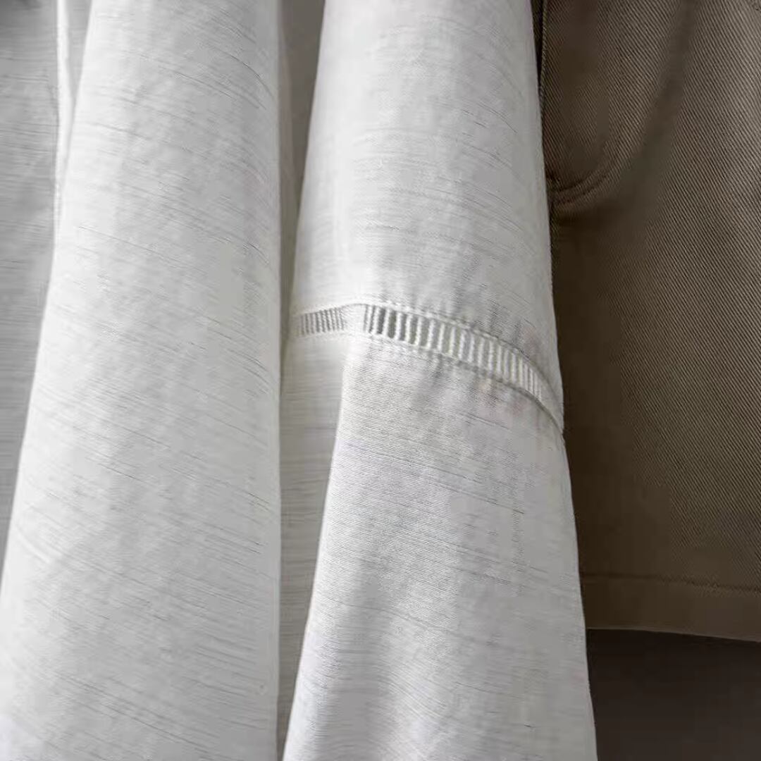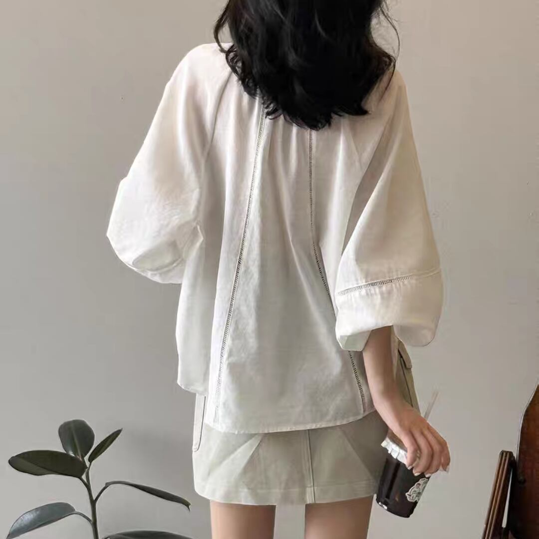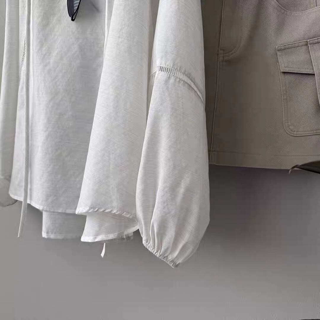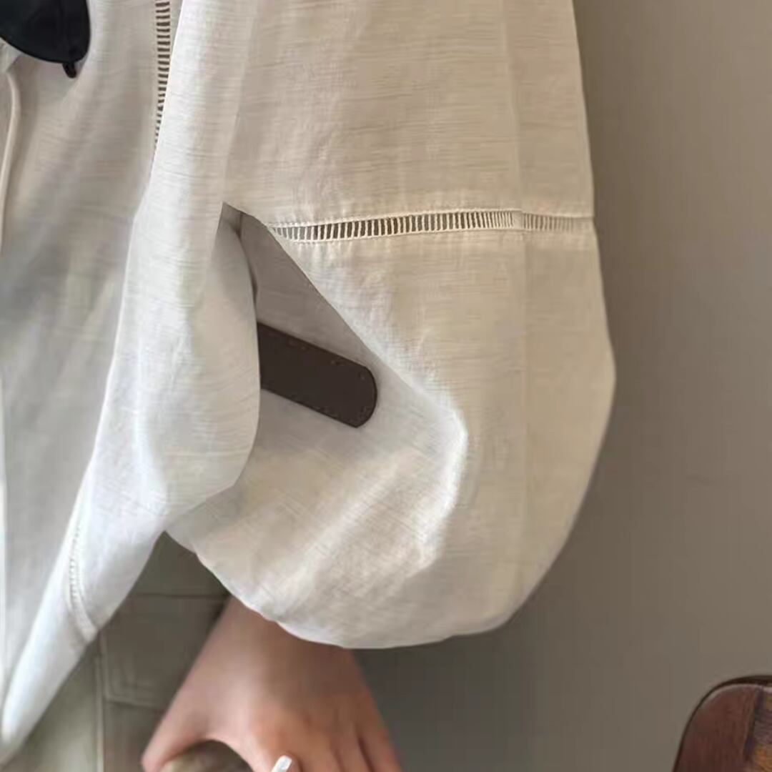 ふんわりとしたボリュームスリーブと繊細なレースライントリムが印象的な、リラックス感漂うナチュラルブラウス。