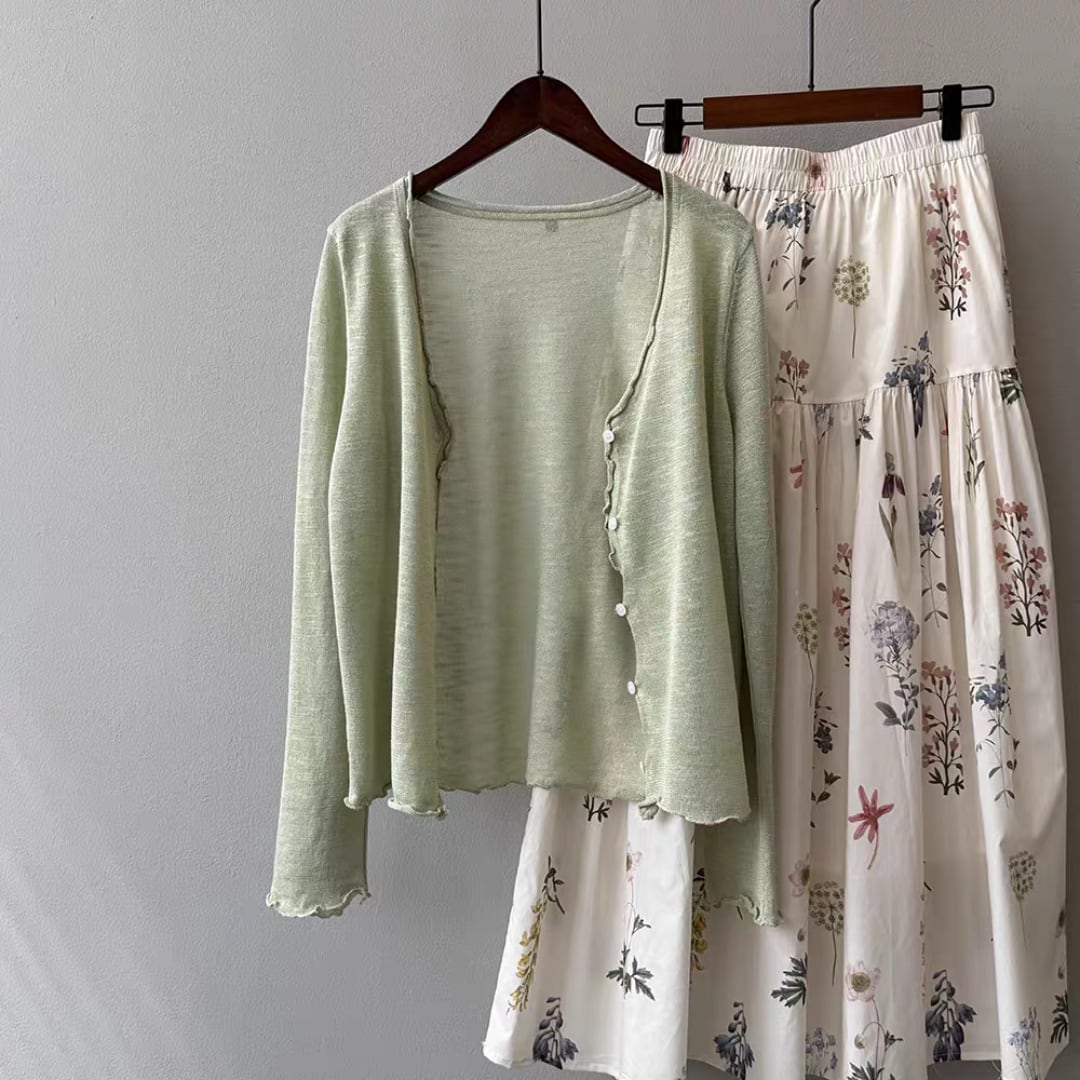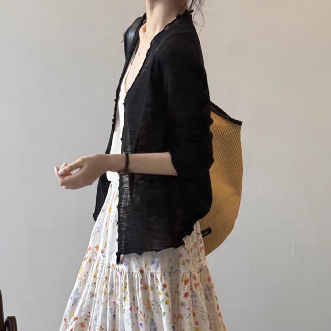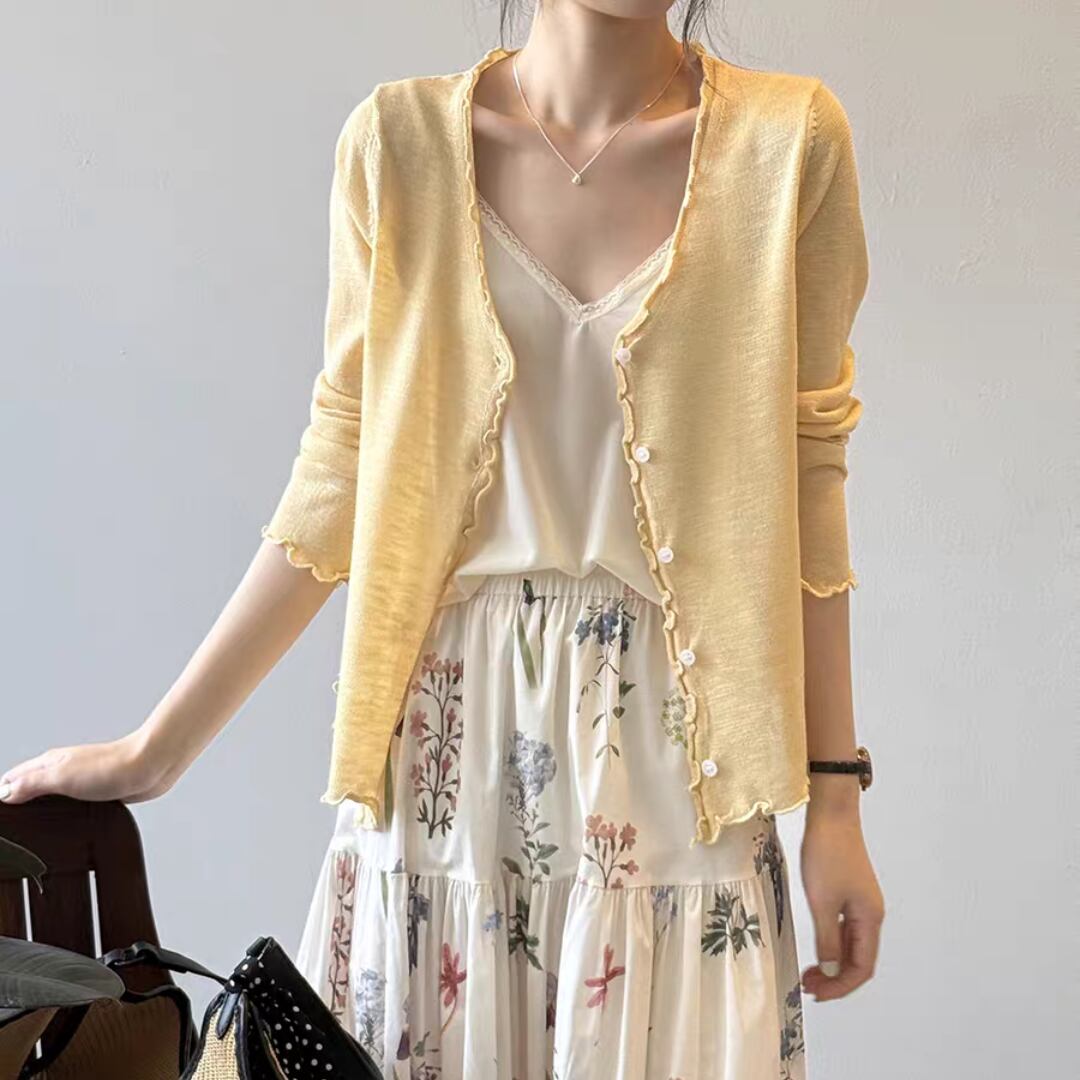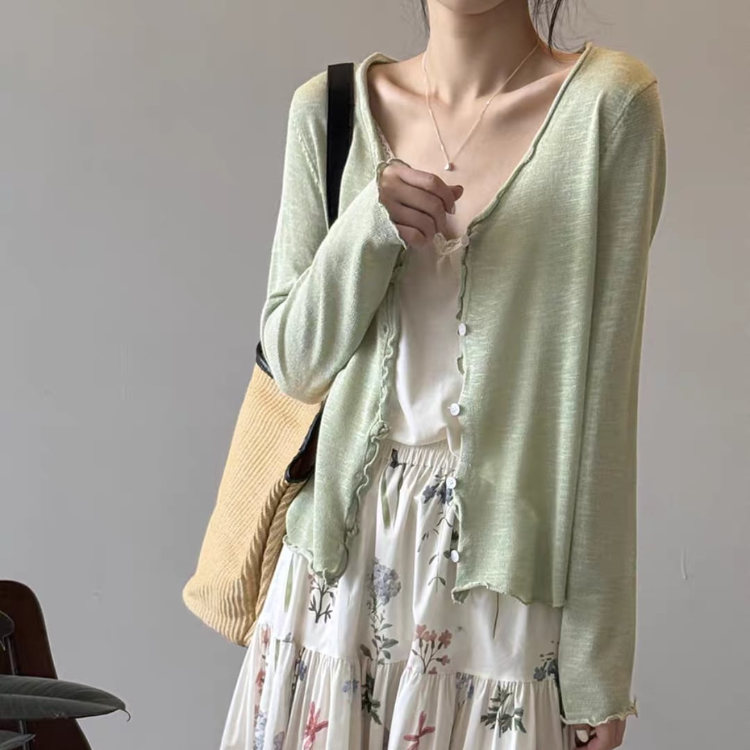 季節の変わり目や冷房対策にもぴったりで、ワンピースや