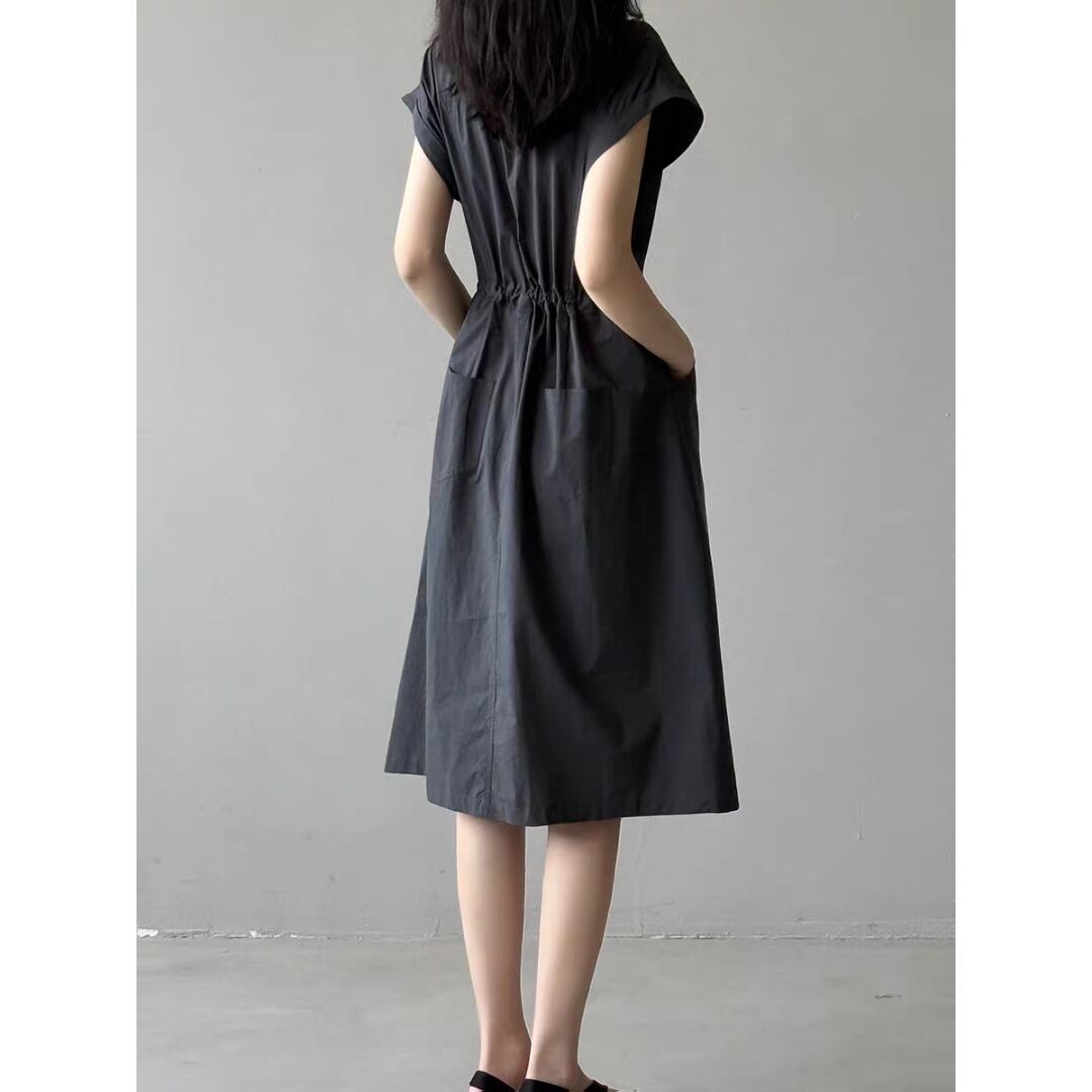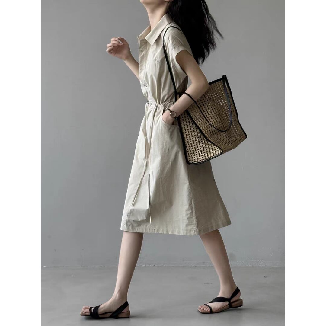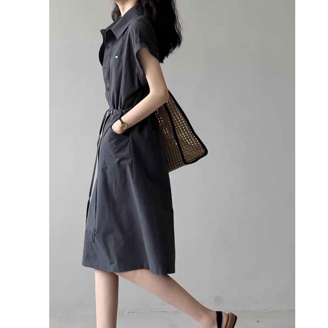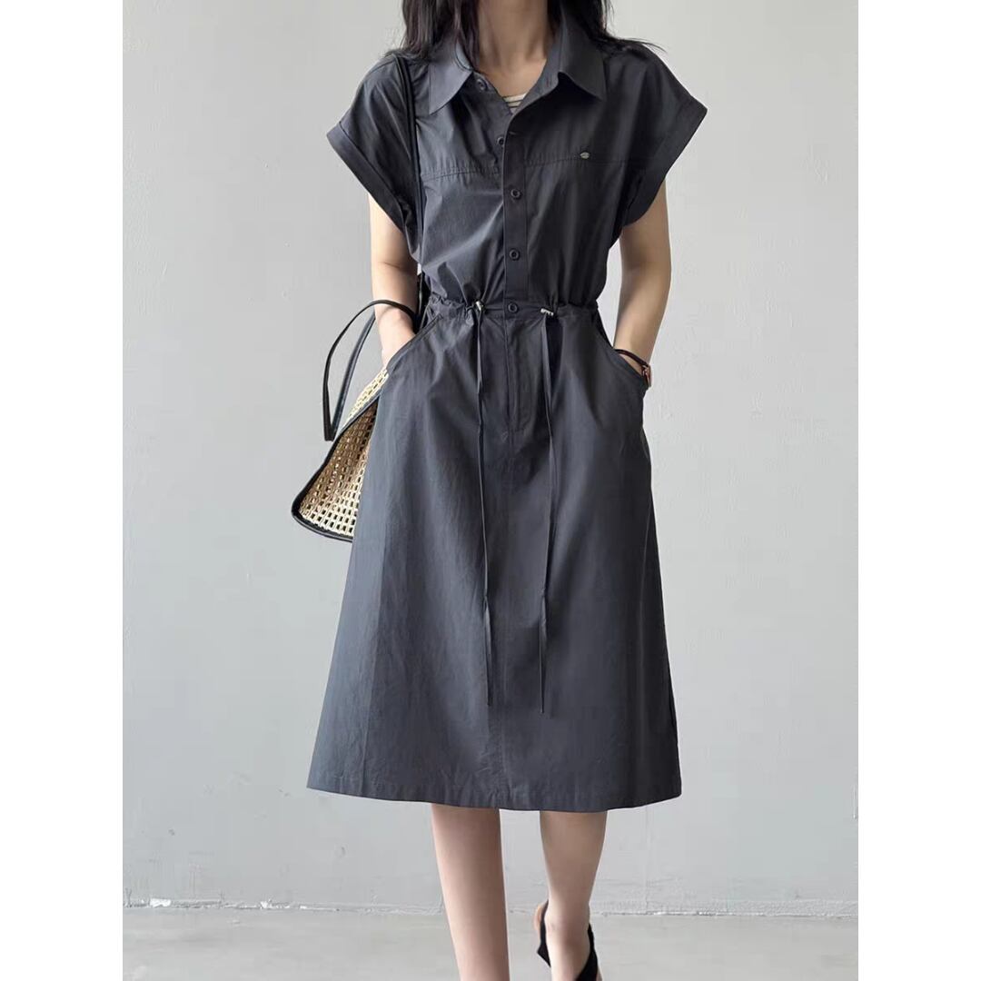 すっきりとしたシャツカラーと、ウエストギャザーで女性らしいシルエットを叶えるコットンワンピース。