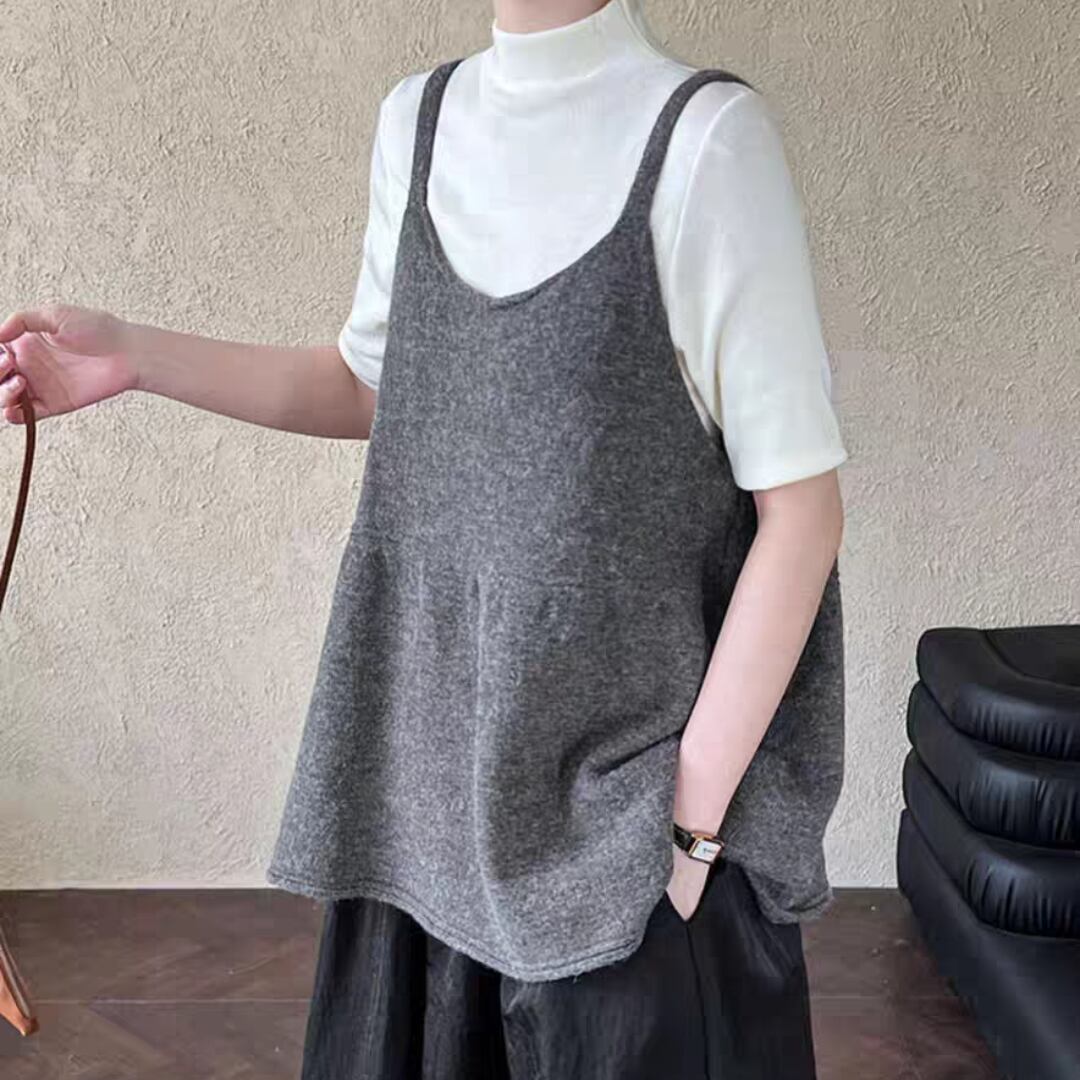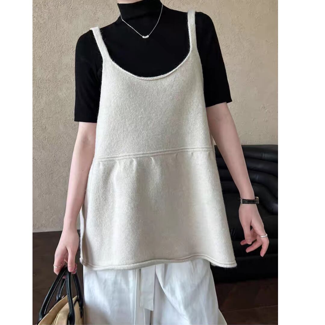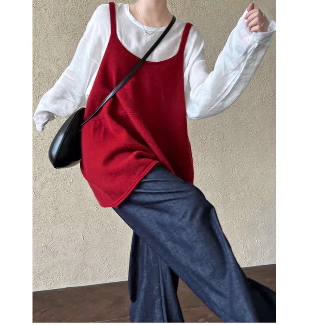 ふんわりと軽やかなシルエットが魅力のキャミソール風レイヤードトップ。