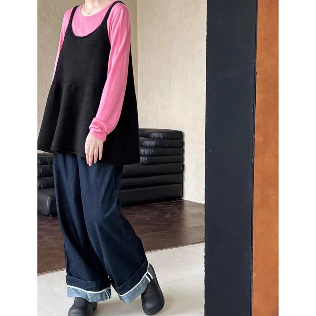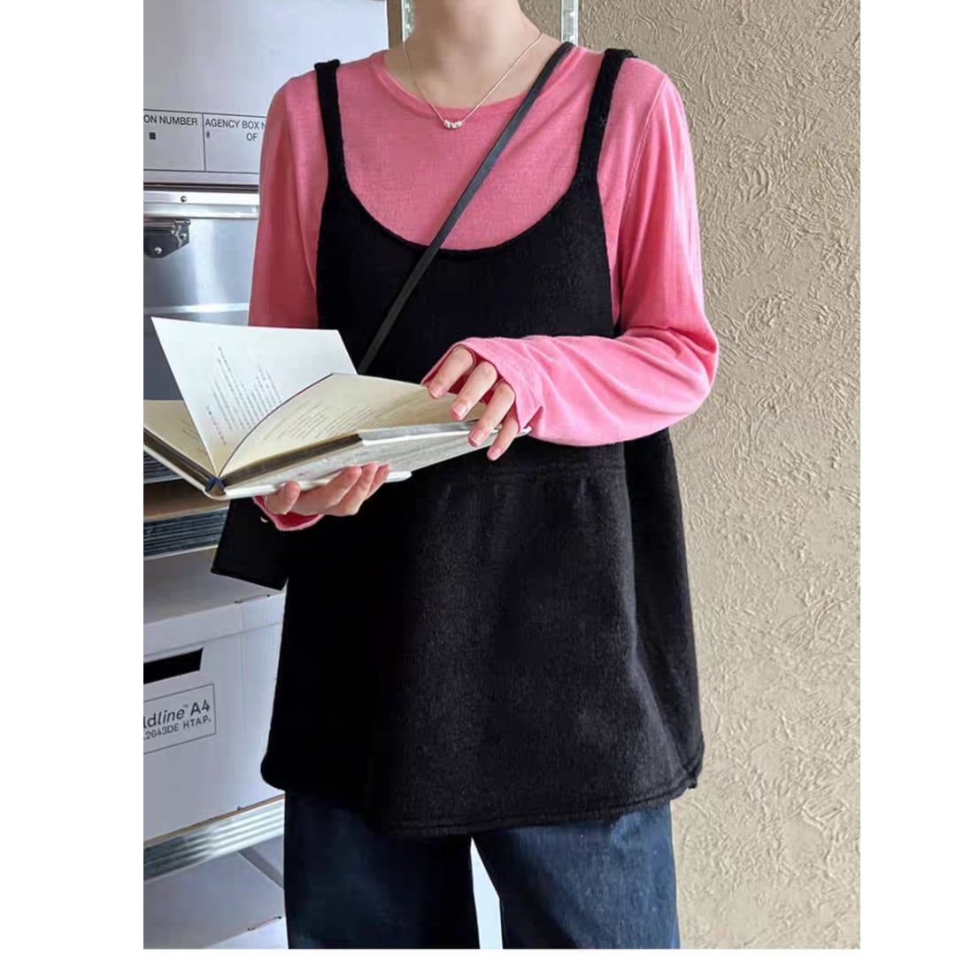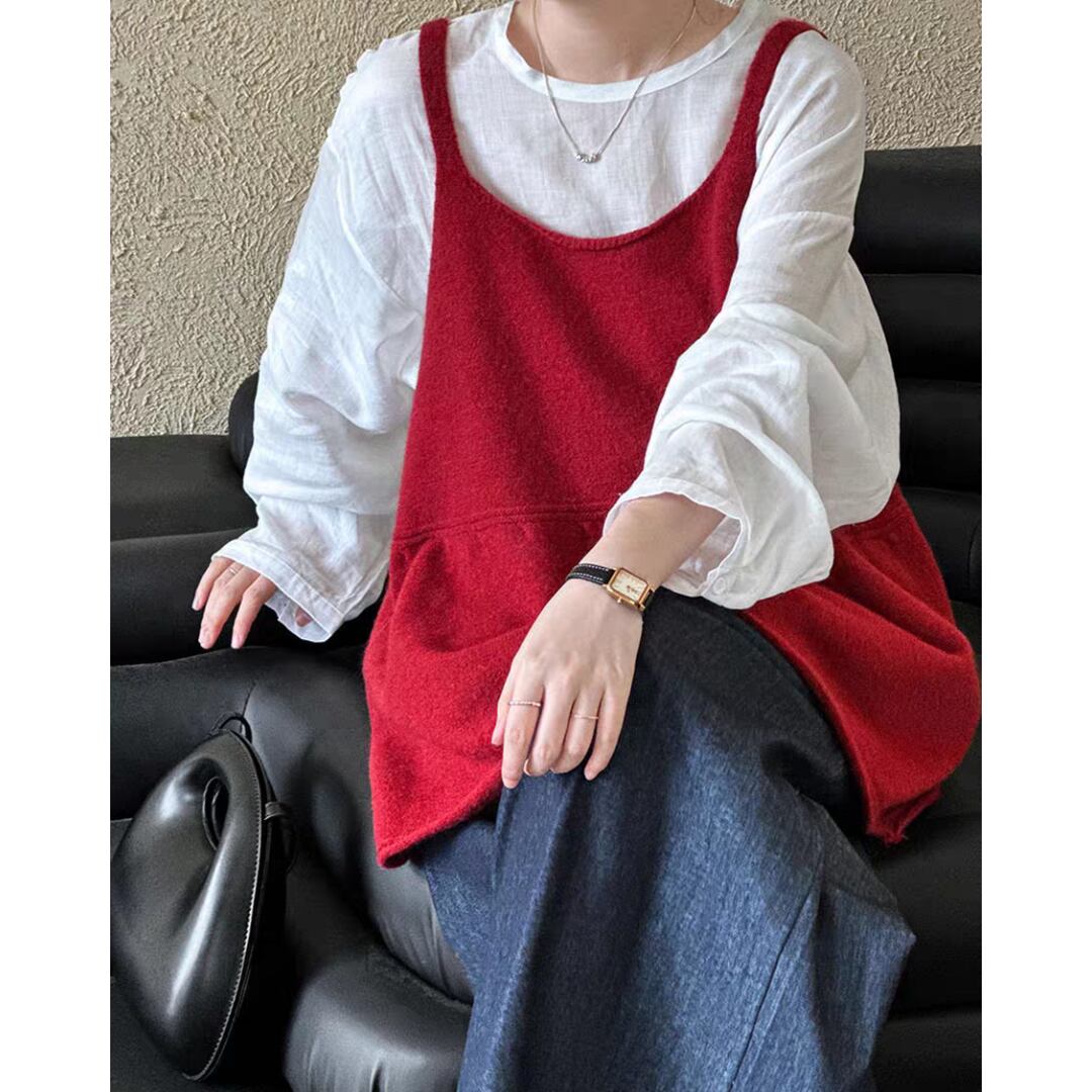 ふんわりと軽やかなシルエットが魅力のキャミソール風レイヤードトップ。