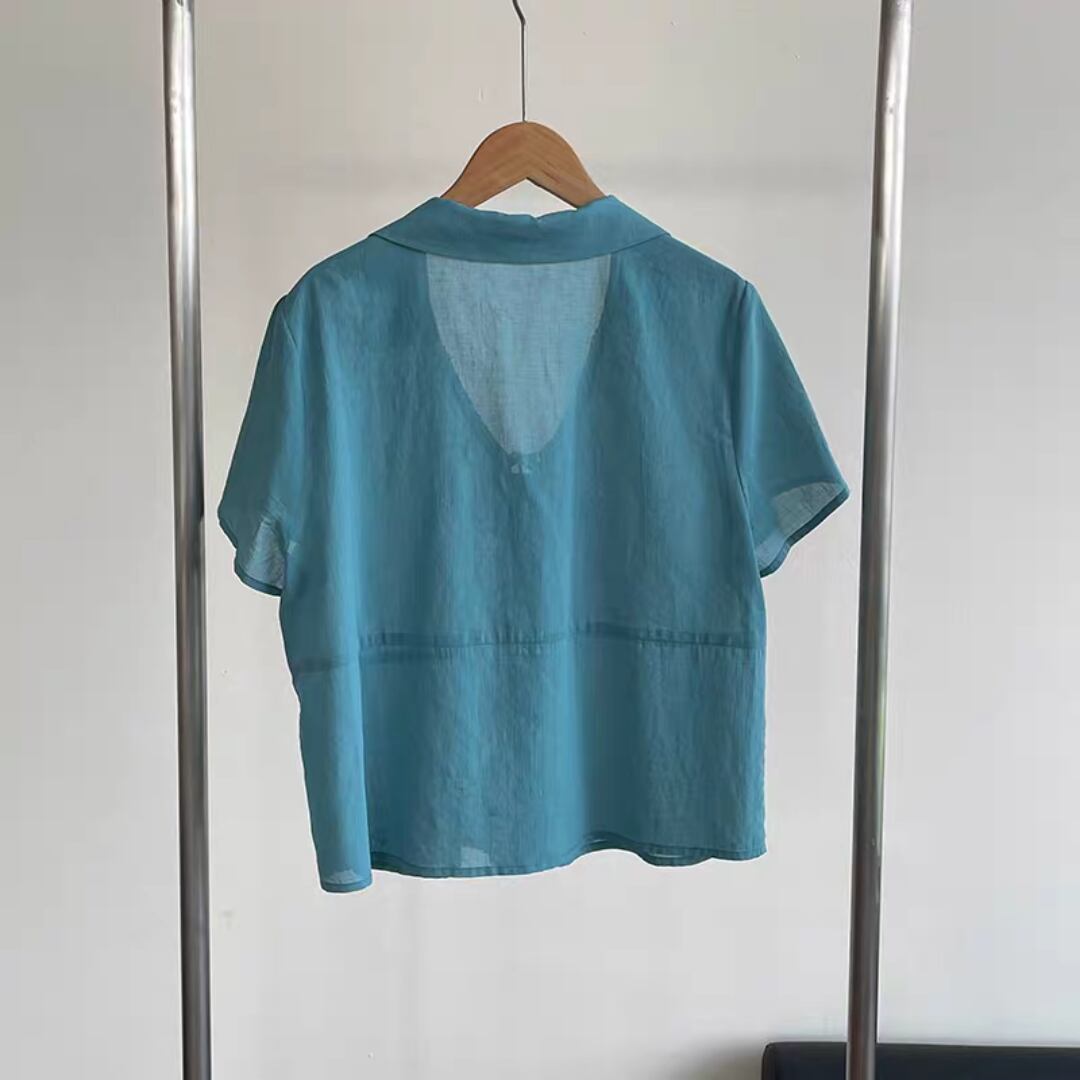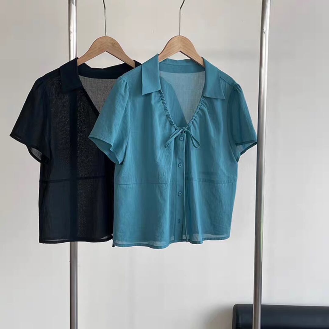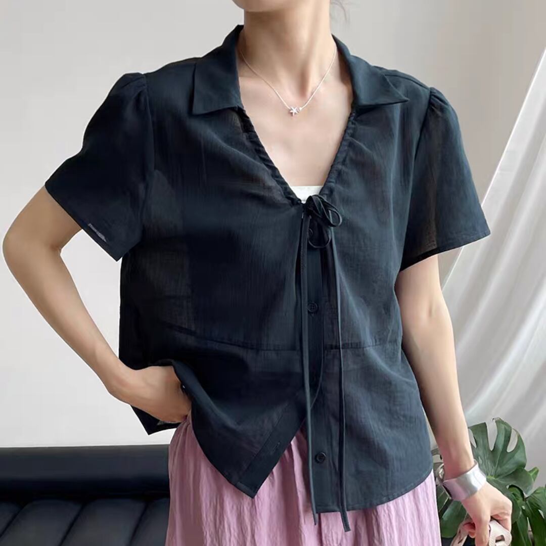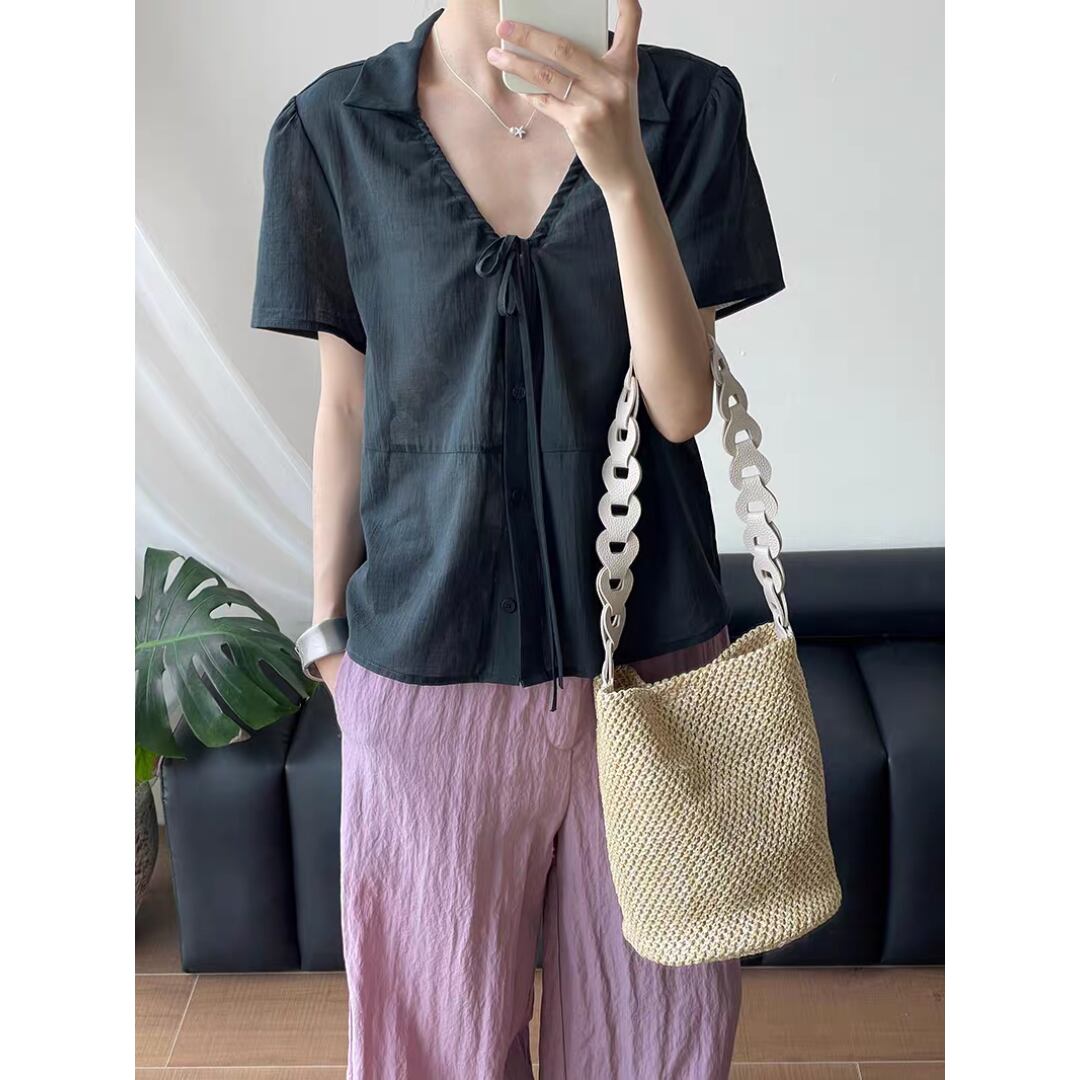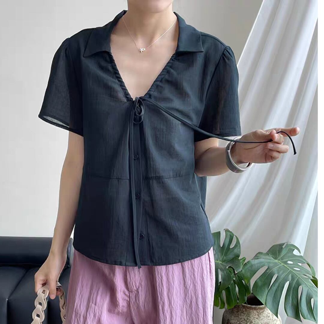Vネックレースアップブラウス 0131