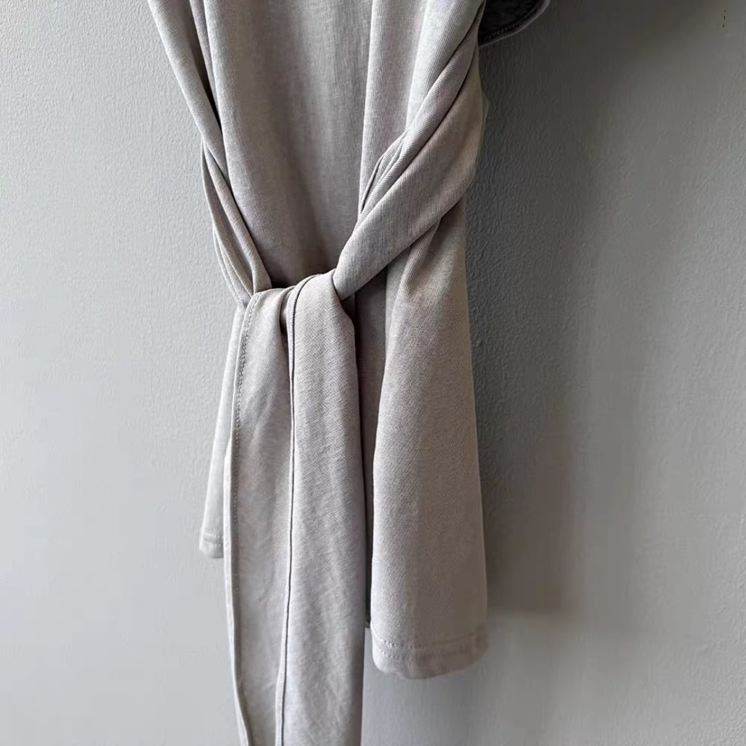 前で結んでも後ろでクロスしても着られる2WAY仕様で、スタイルアップ効果も◎。