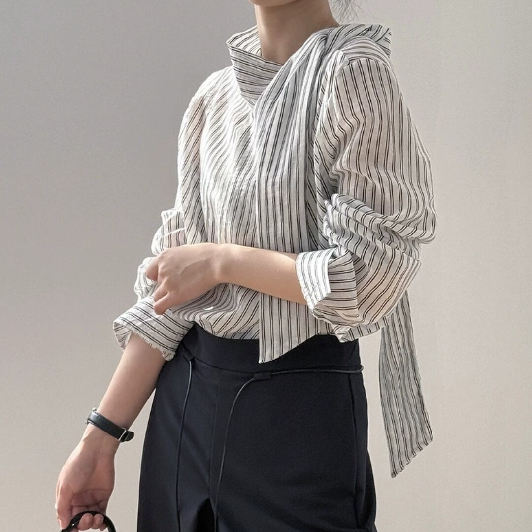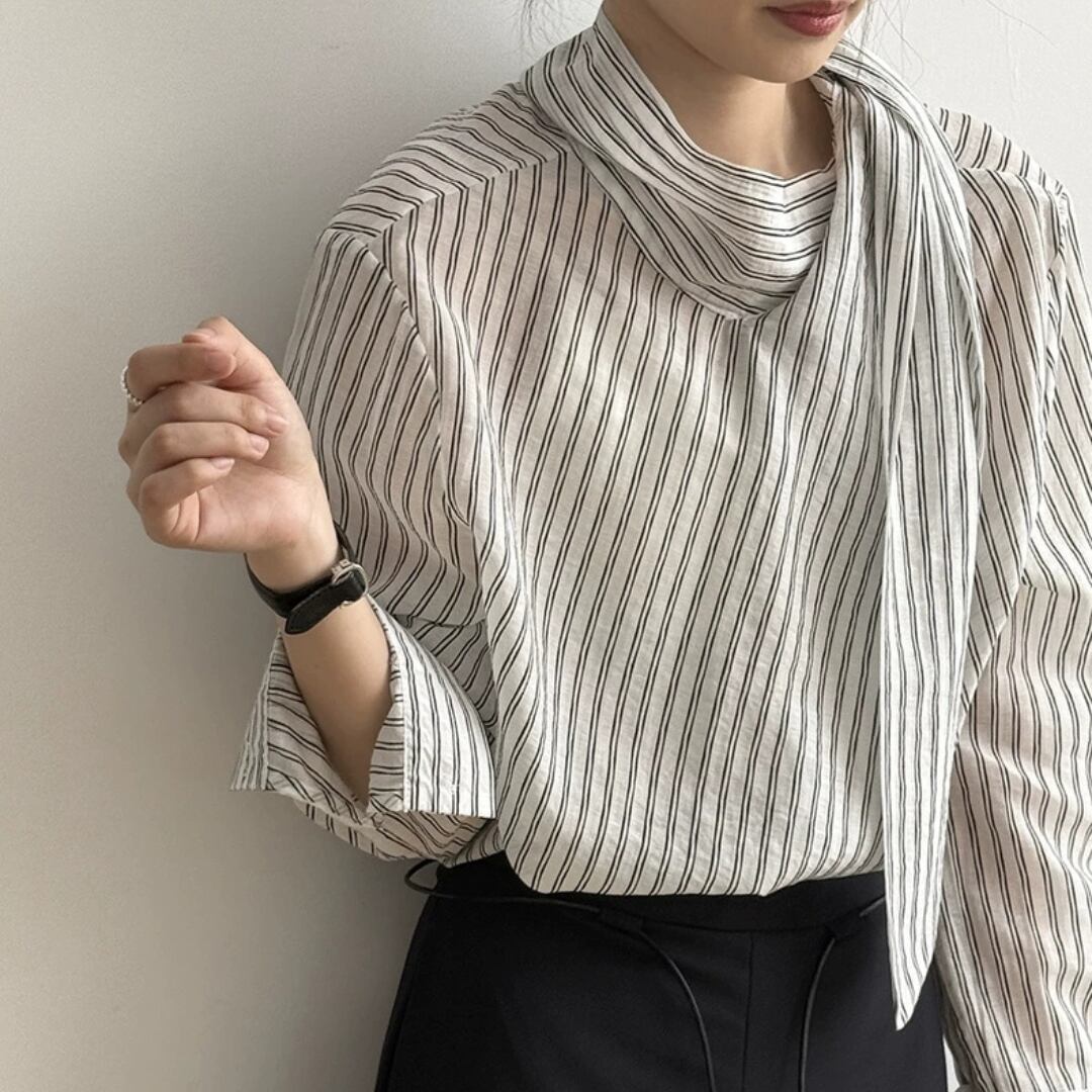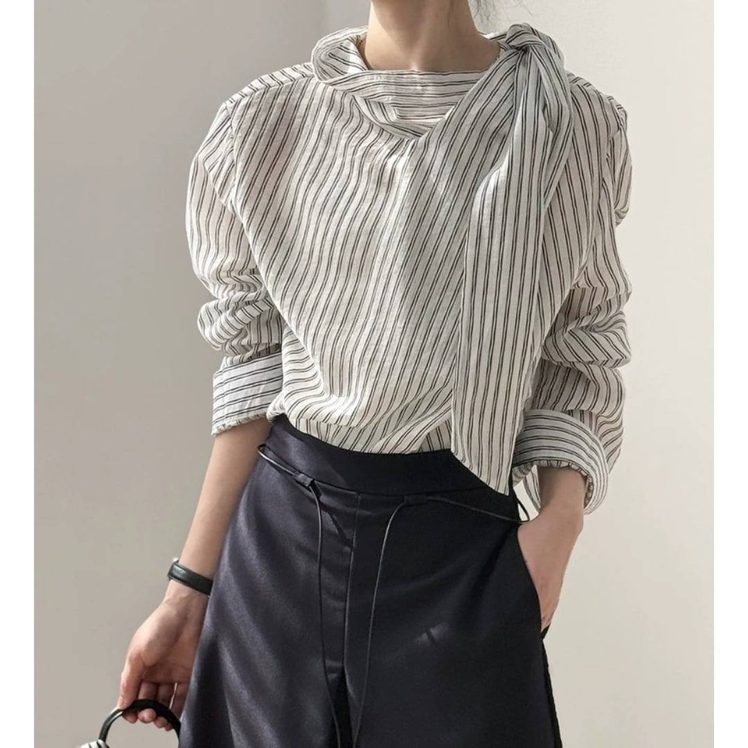 ストライプボウタイブラウス 0150