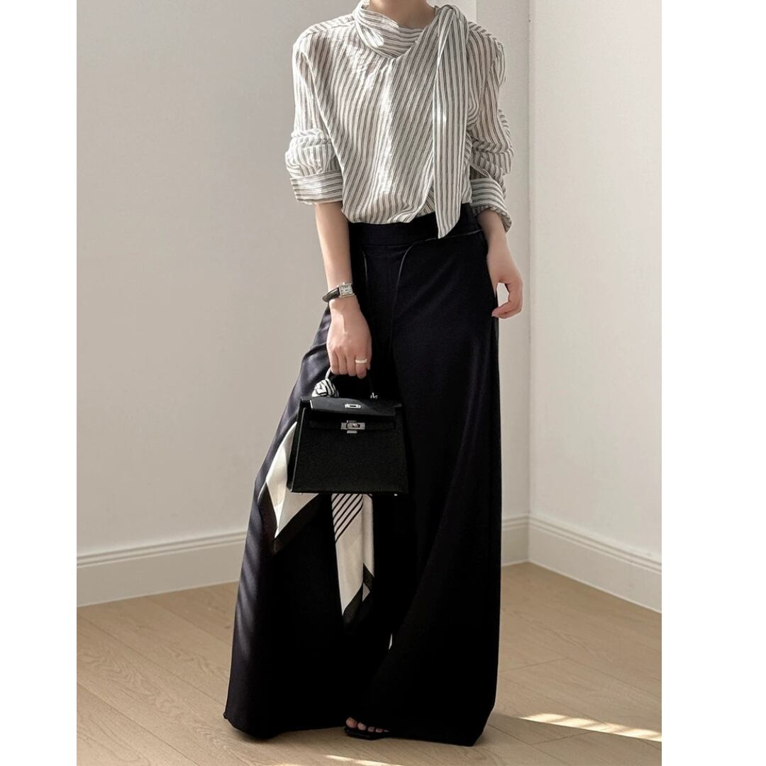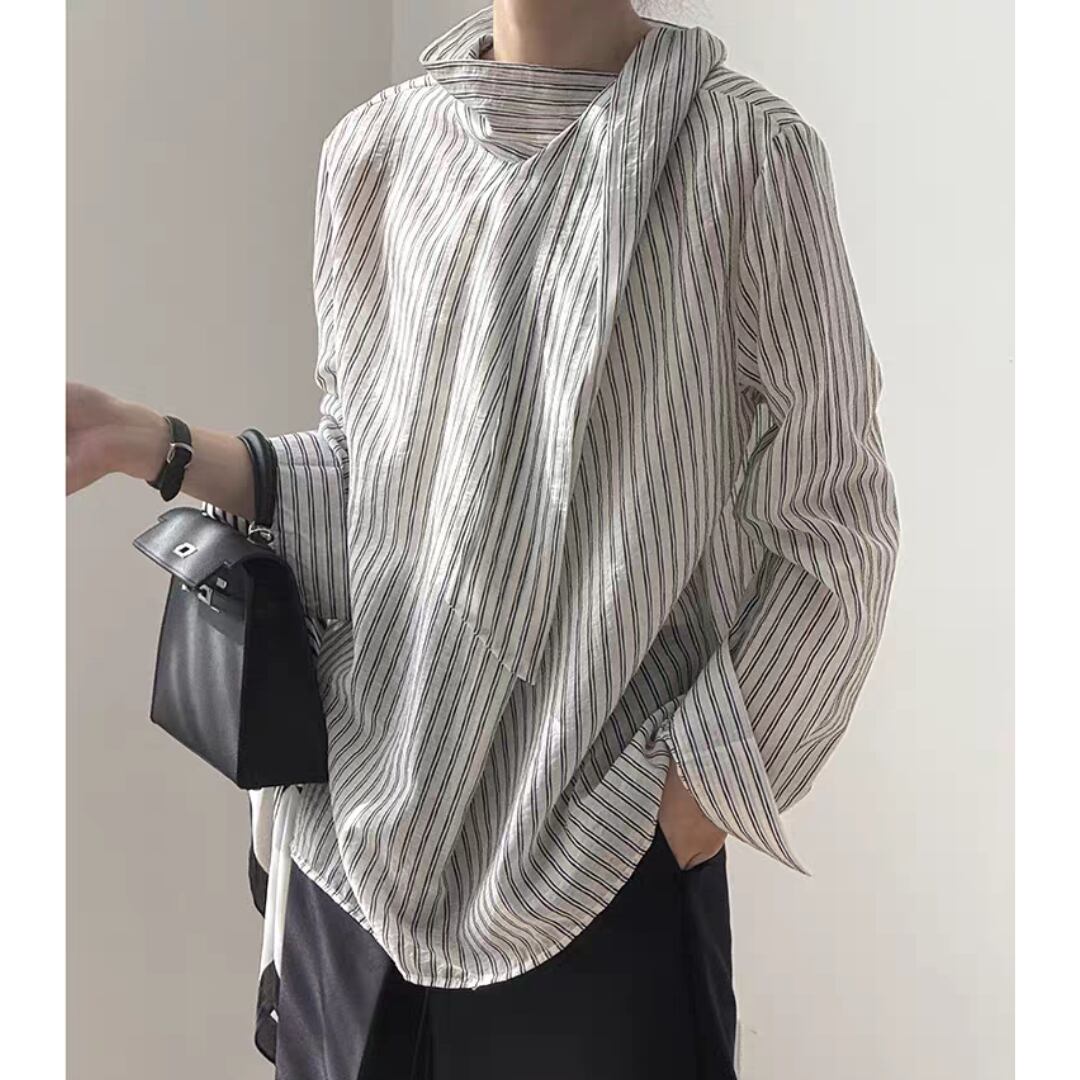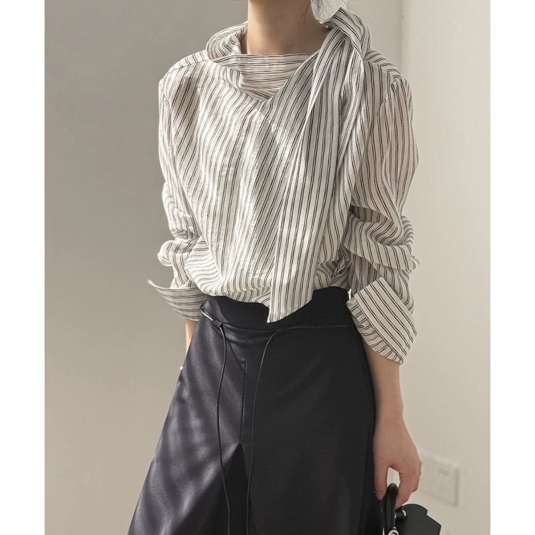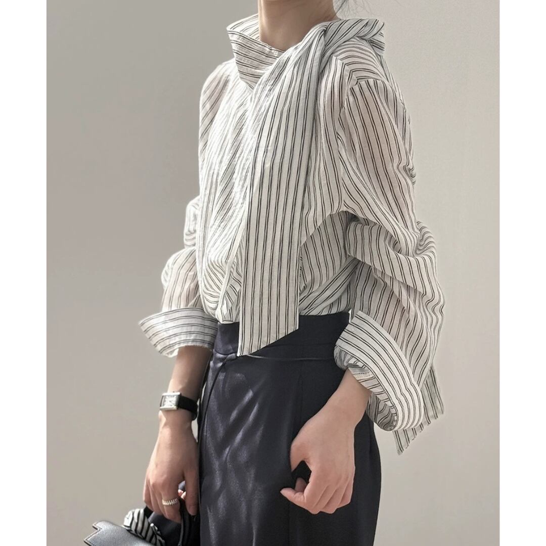 ストライプボウタイブラウス 0150