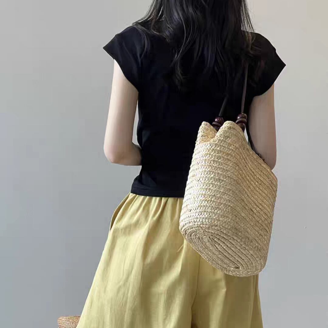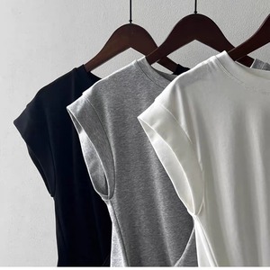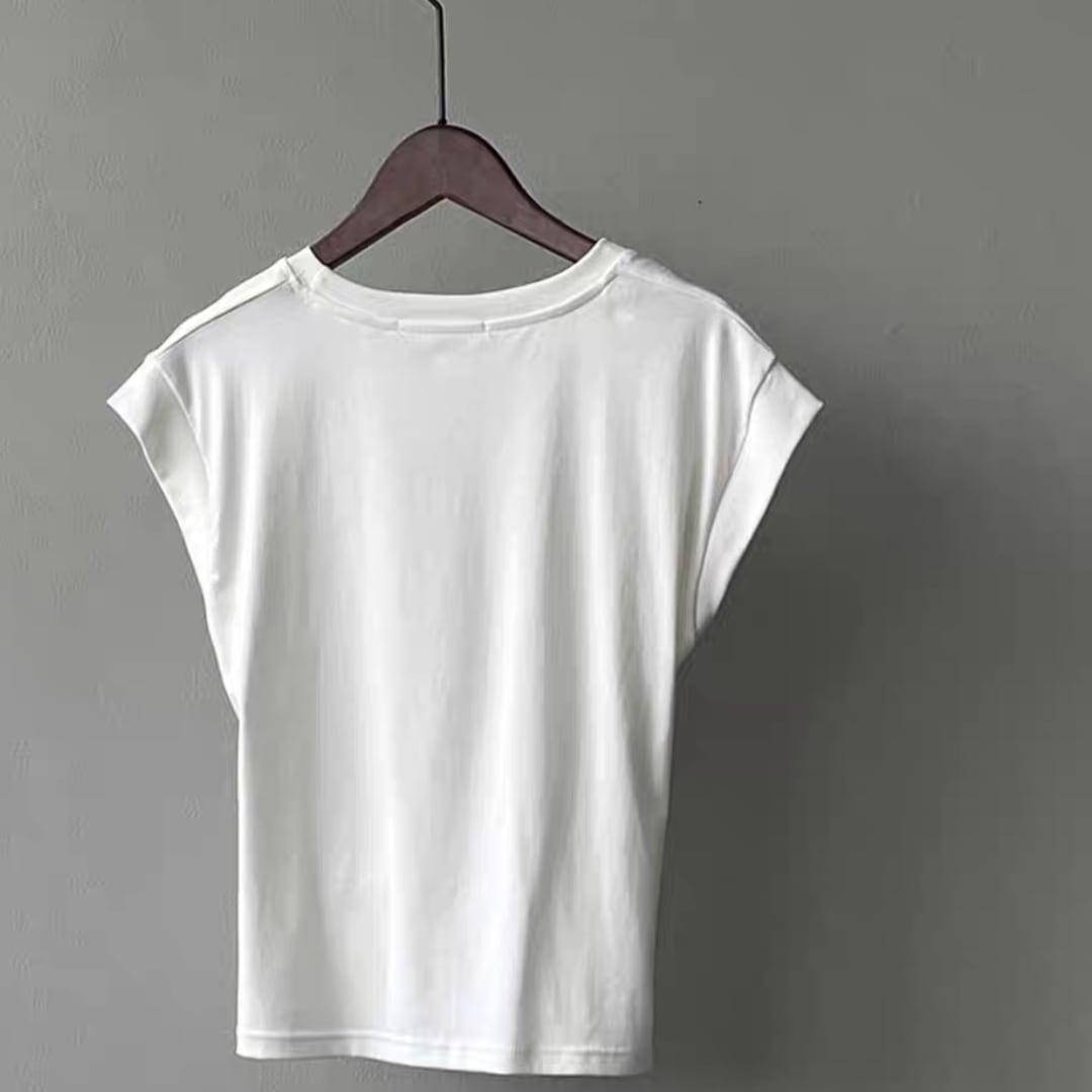肩のラインを自然にカバーするフレンチスリーブで、カジュアルながらもきちんと感のある一枚。