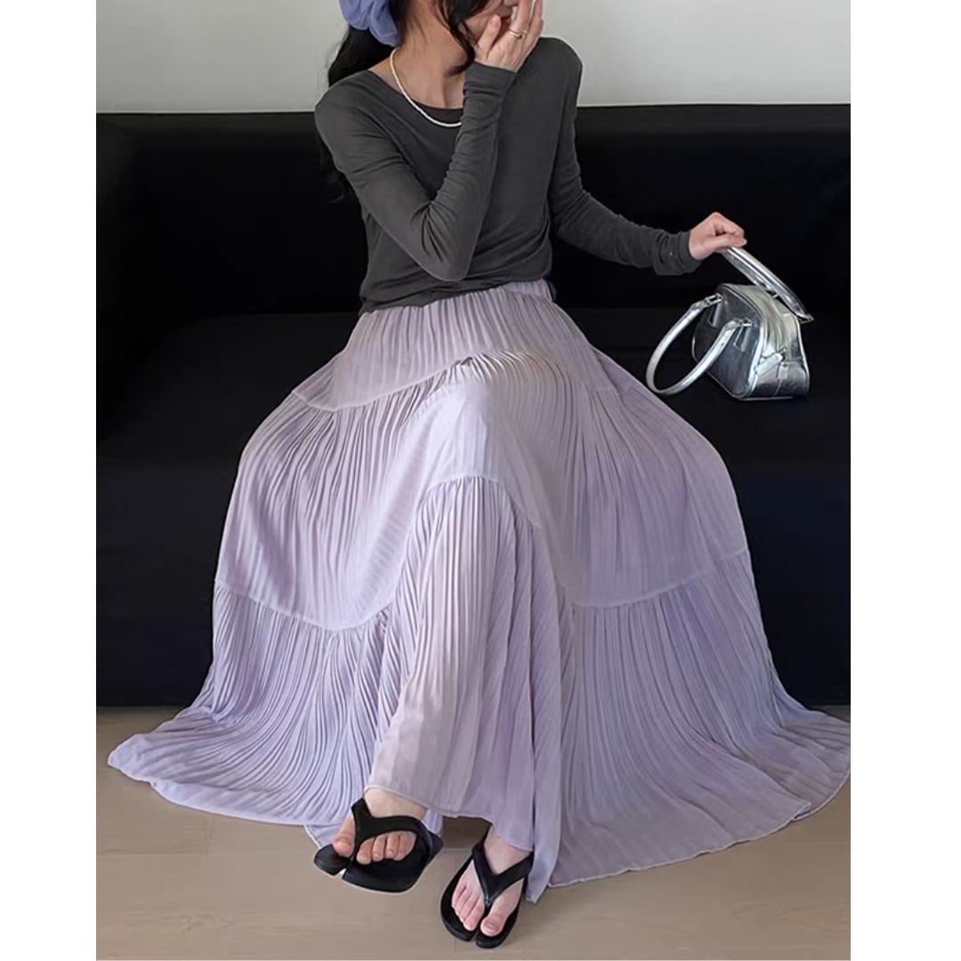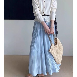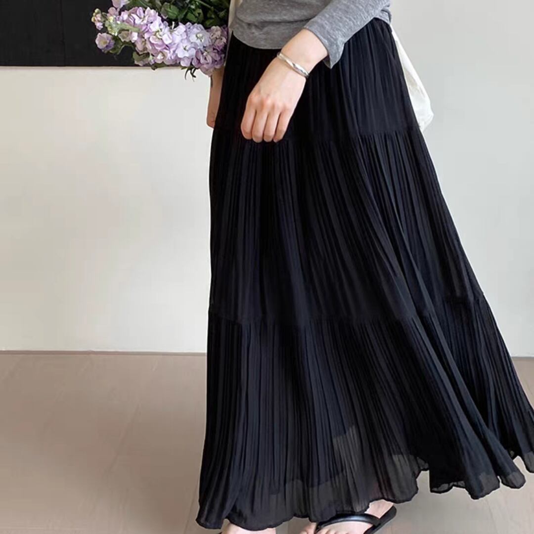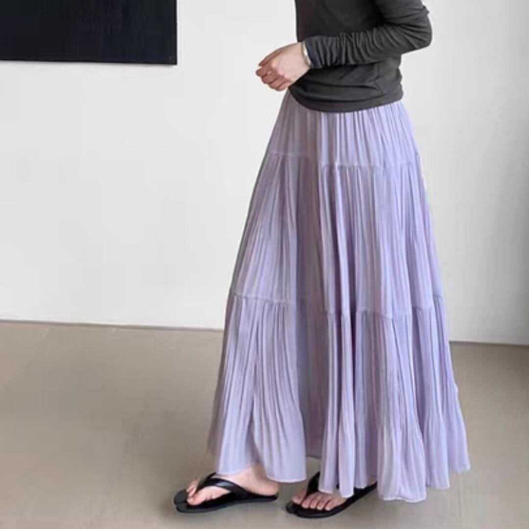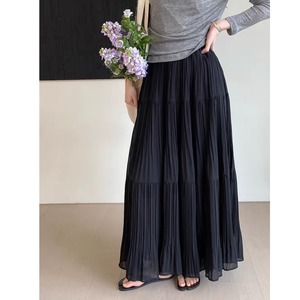 気になる腰まわりや下半身をふんわりカバーしてくれる、プリーツティアードスカート。