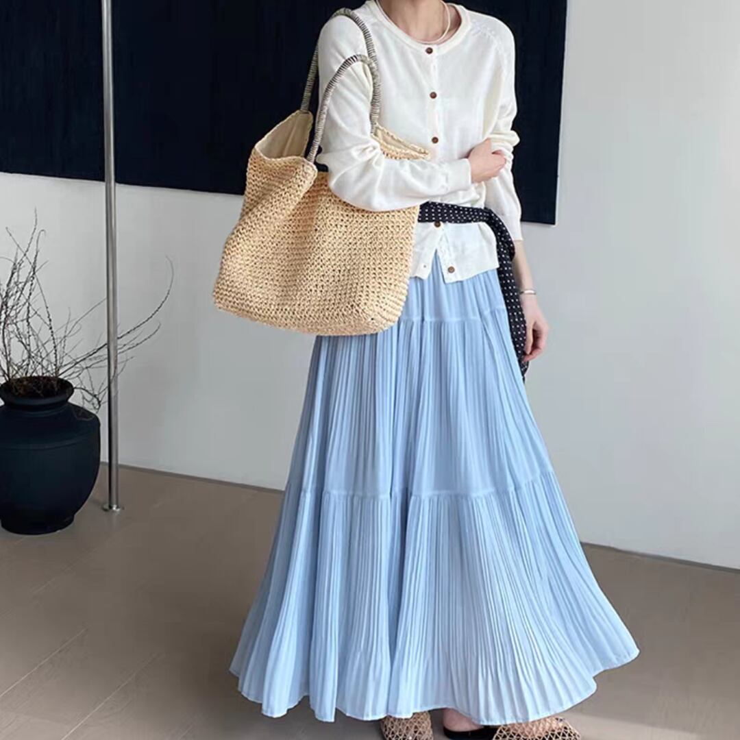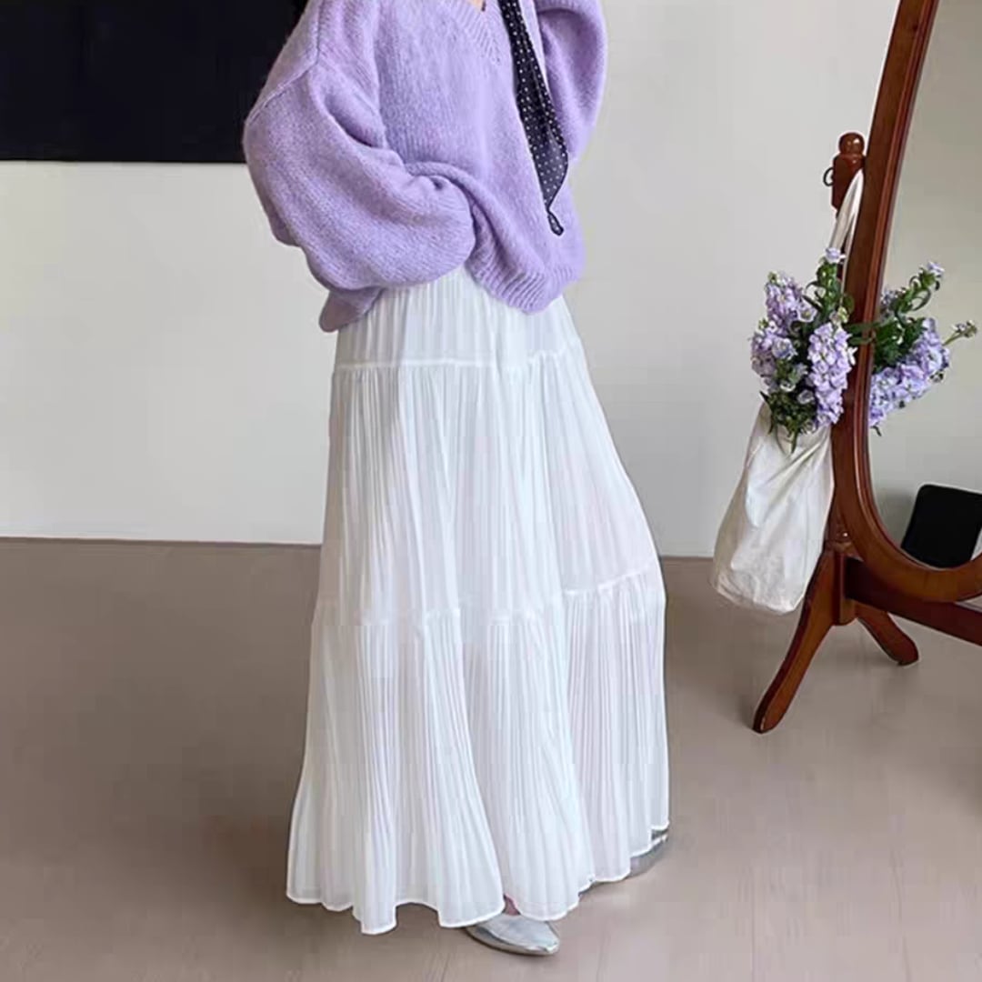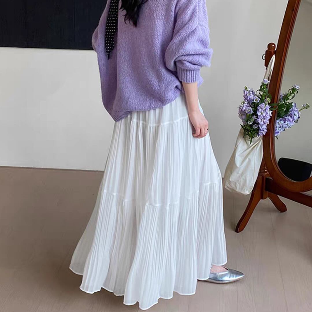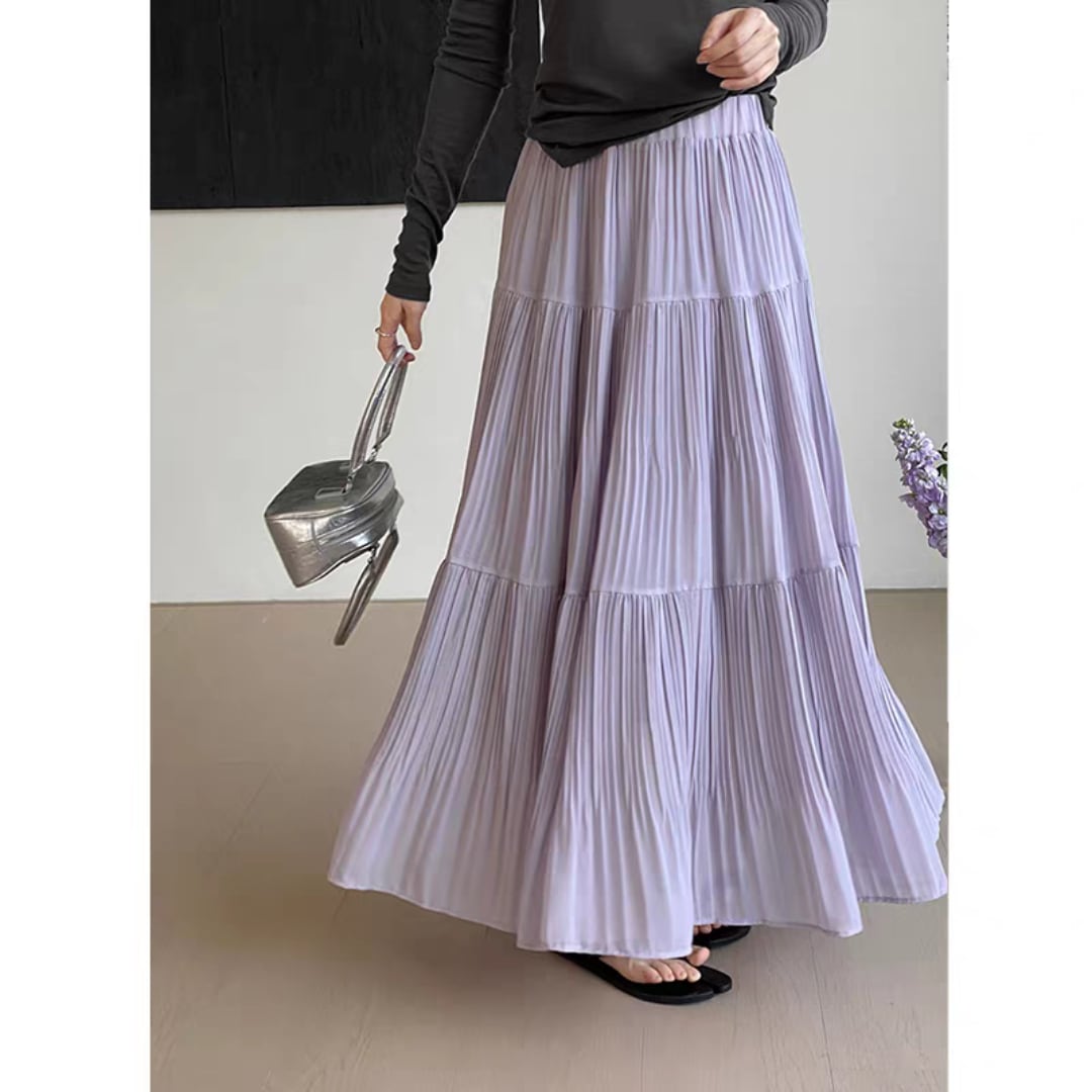 気になる腰まわりや下半身をふんわりカバーしてくれる、プリーツティアードスカート。