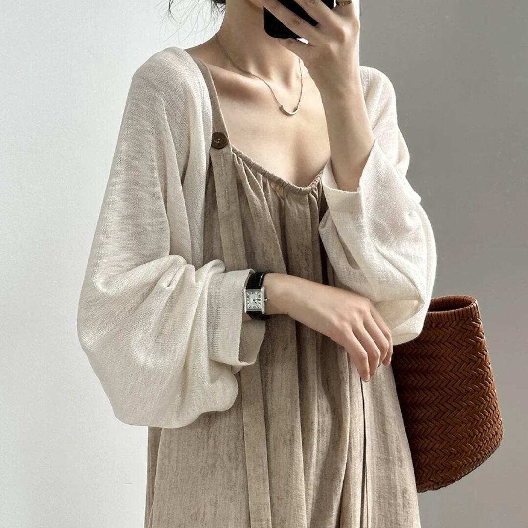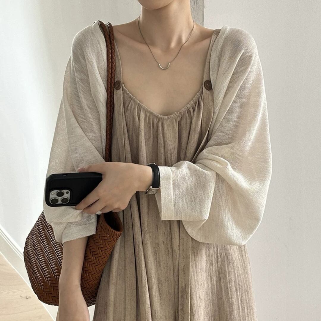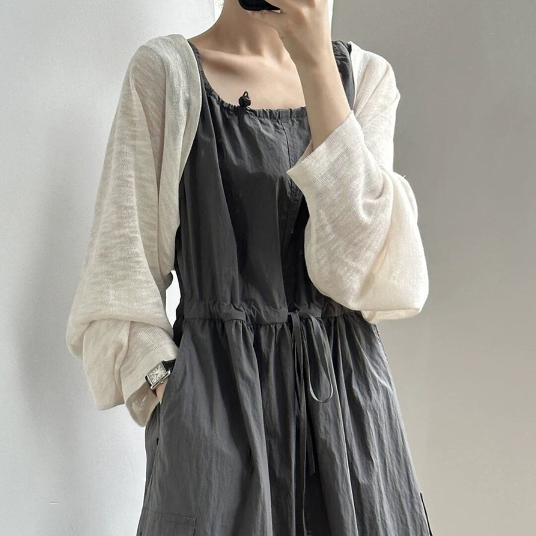ワンピースやキャミソールにさっと羽織るだけで、こなれ感のあるレイヤードスタイルが完成します。