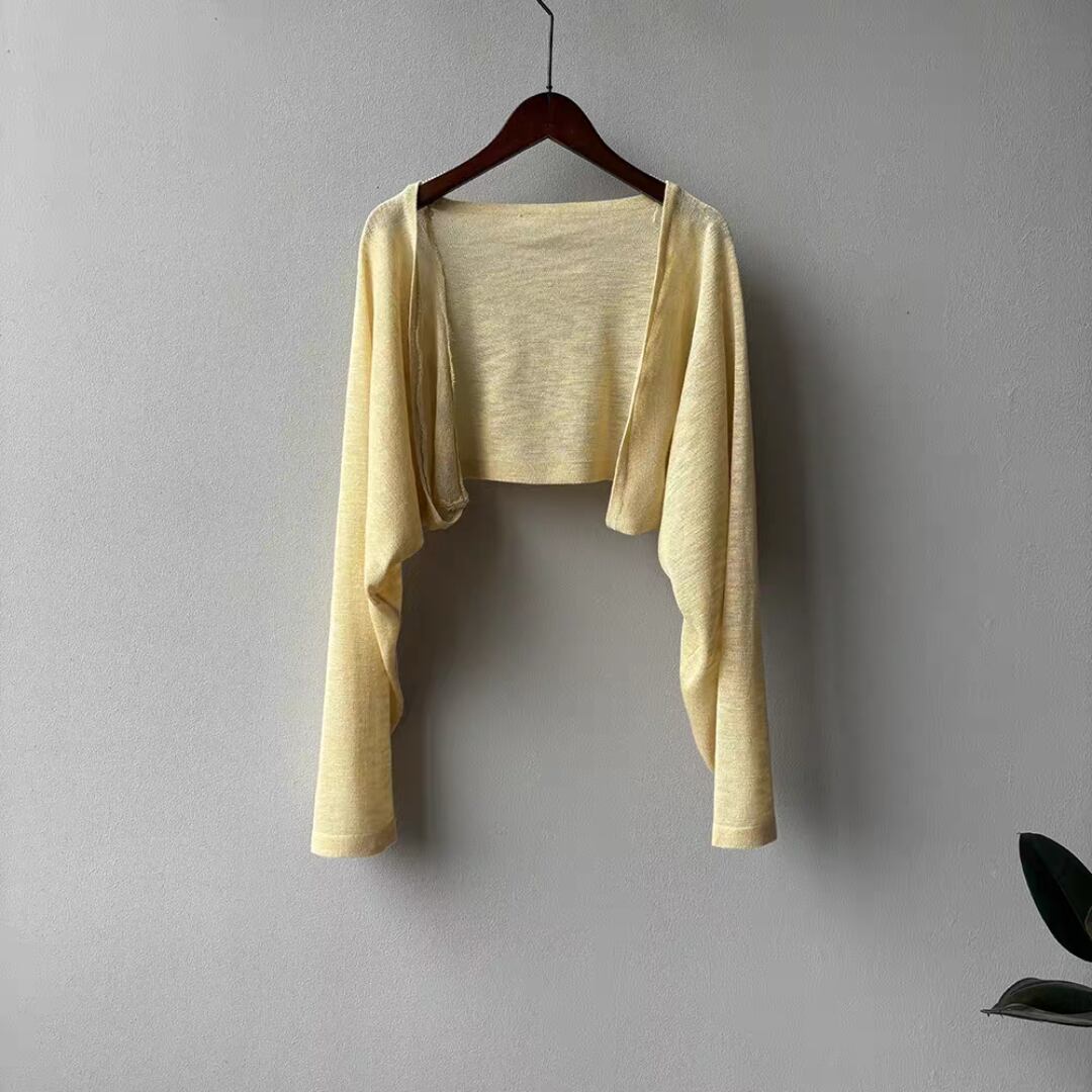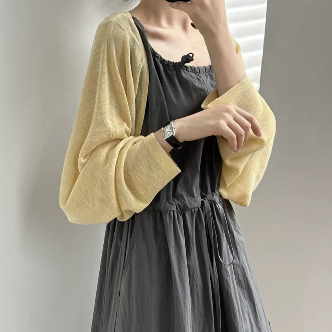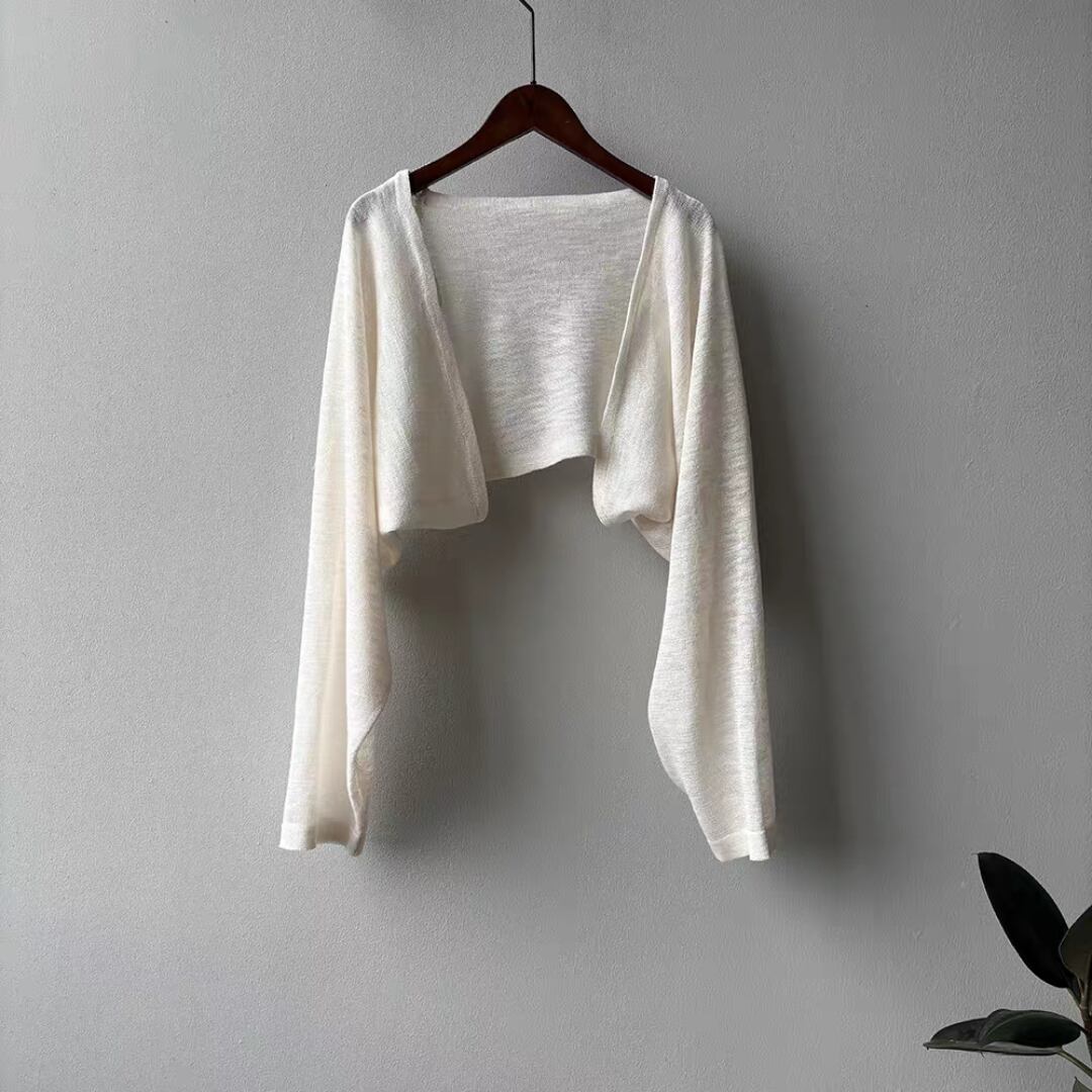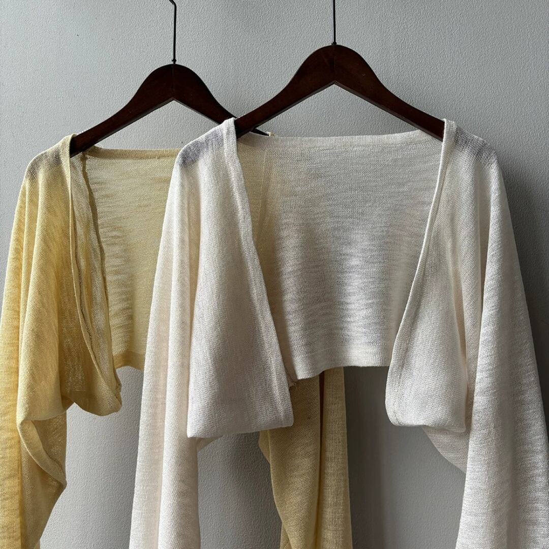 ふんわり軽やかな風合いが魅力のシアーボレロカーディガン。