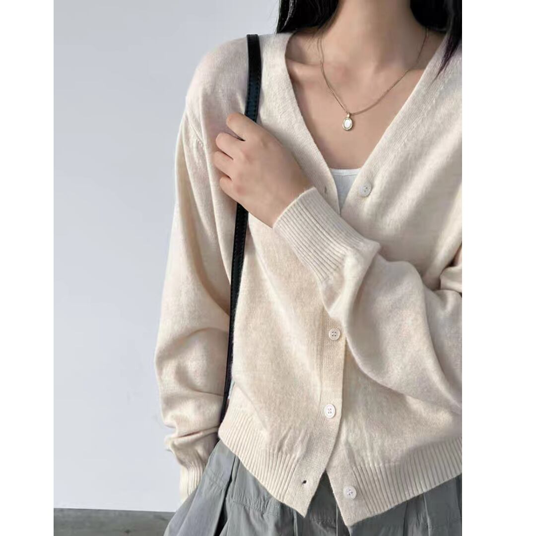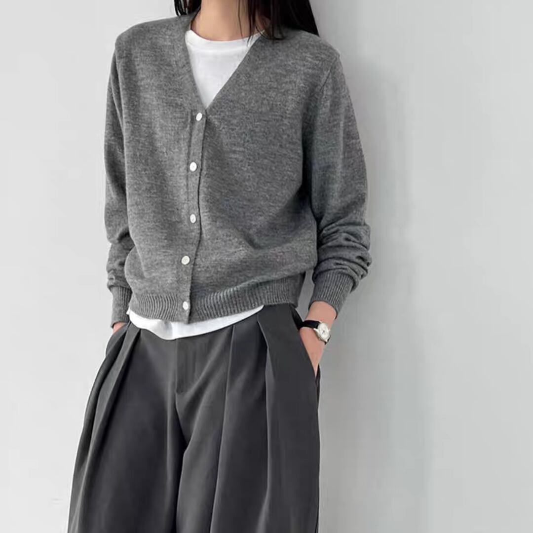 Vネックウールカーディガン 0161