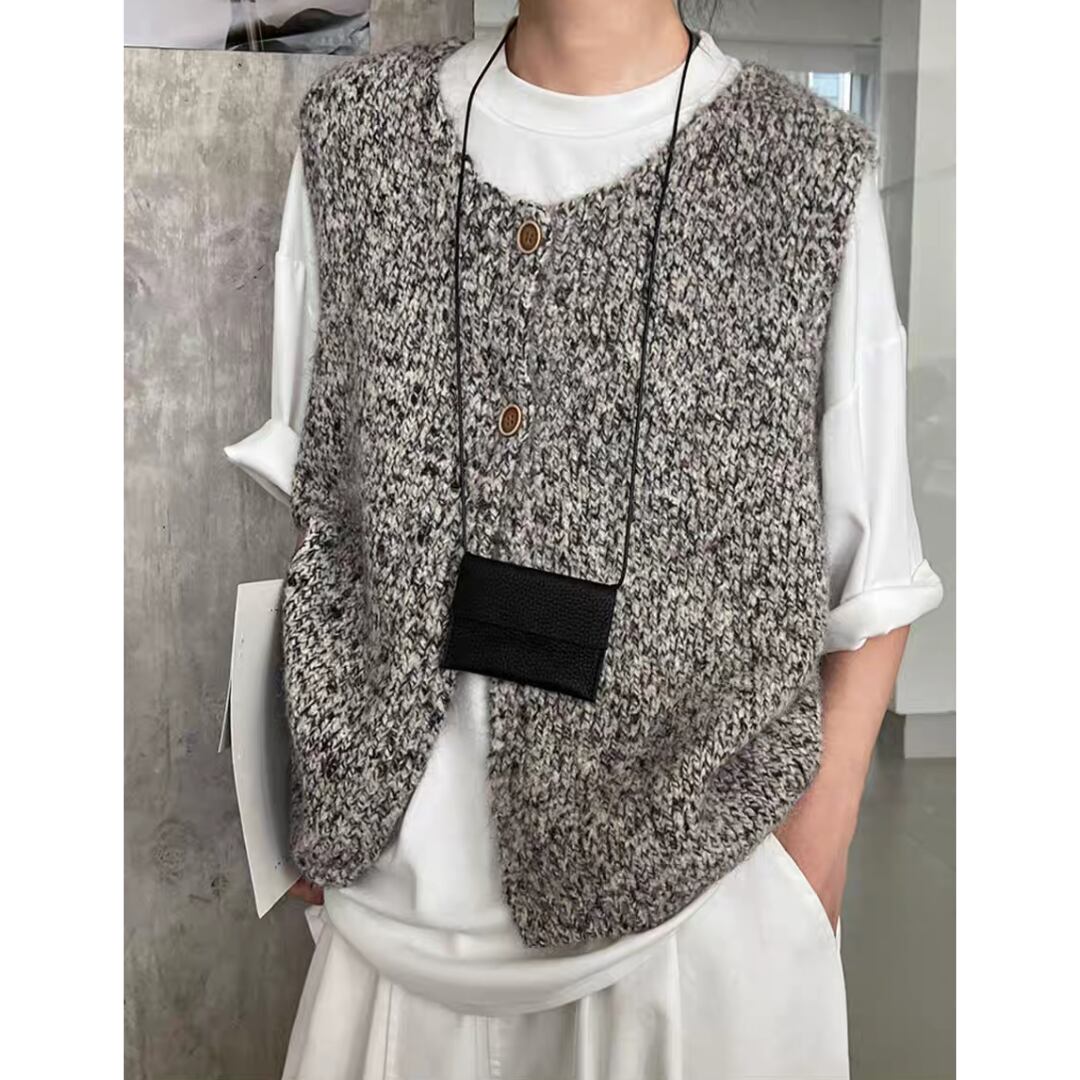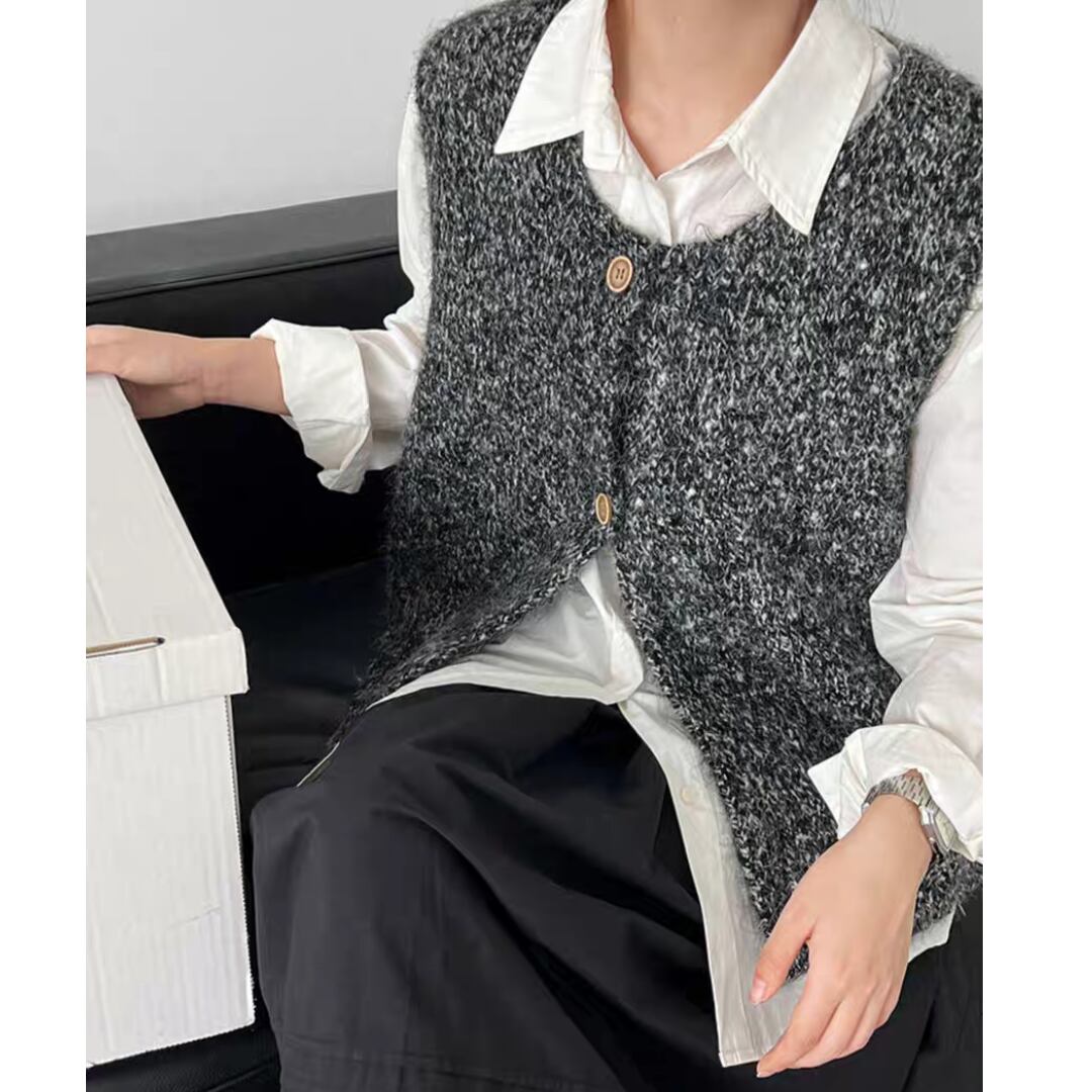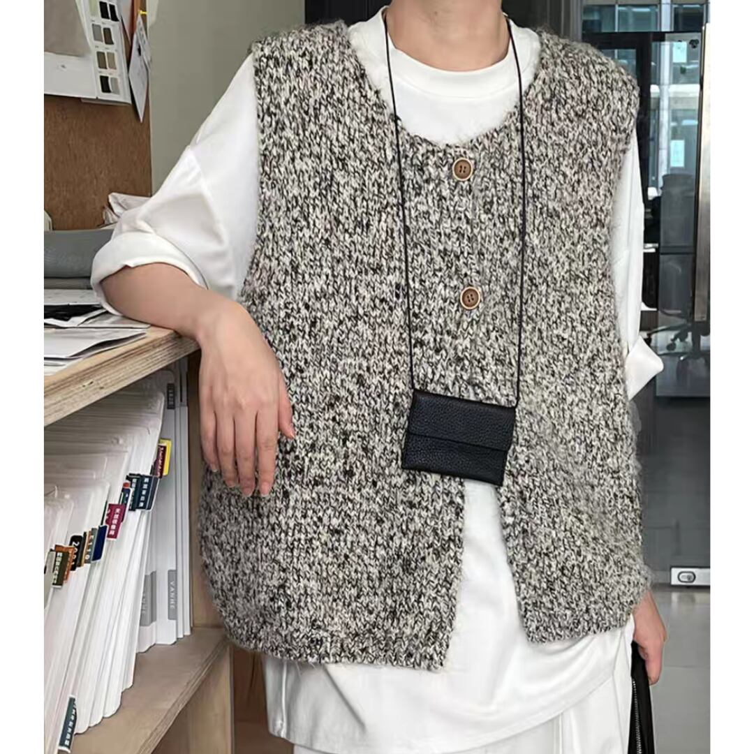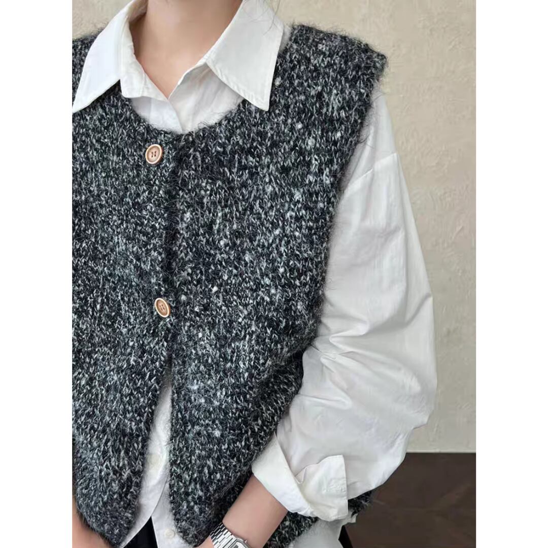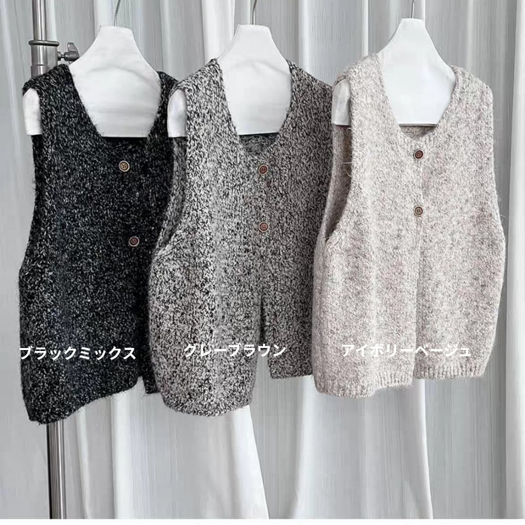ざっくりとした風合いが魅力のミックスツイード風ニットベスト。