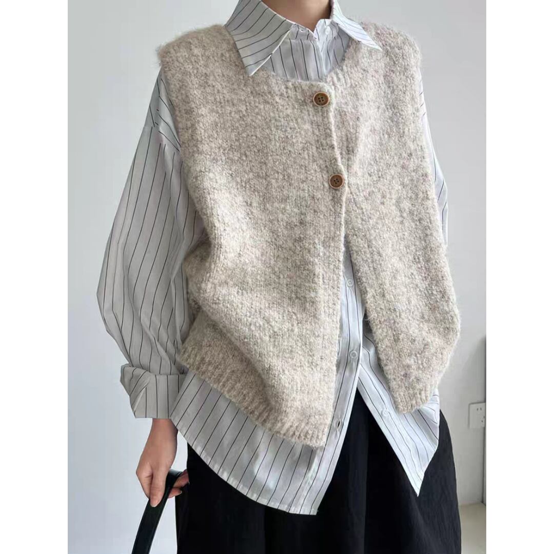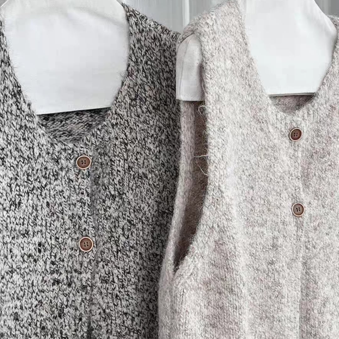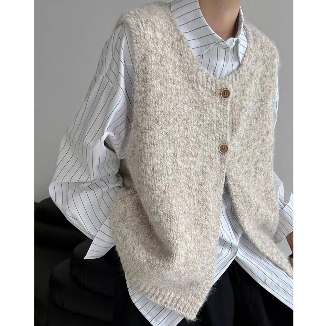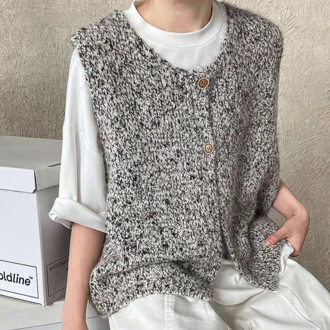 ざっくりとした風合いが魅力のミックスツイード風ニットベスト。