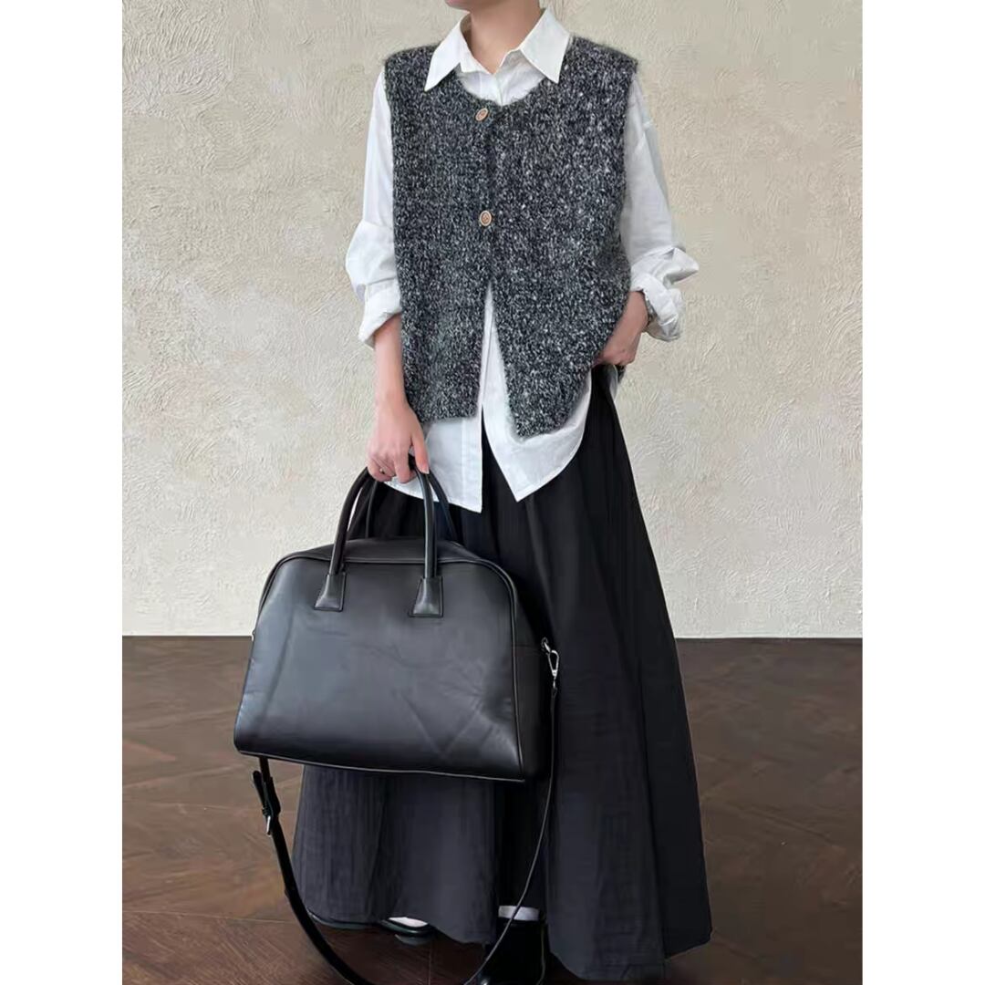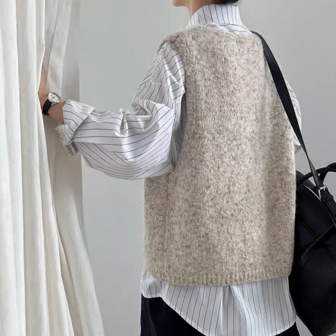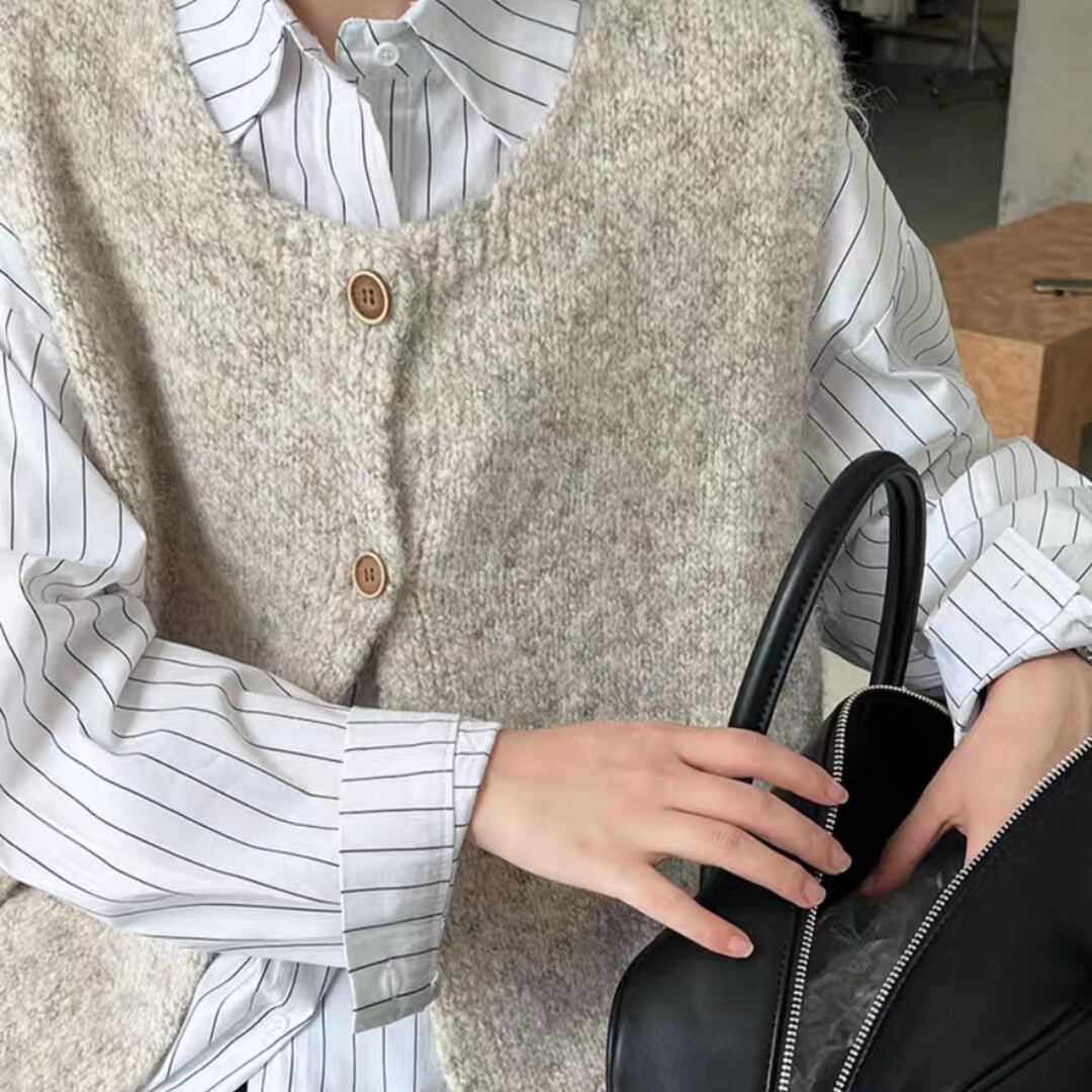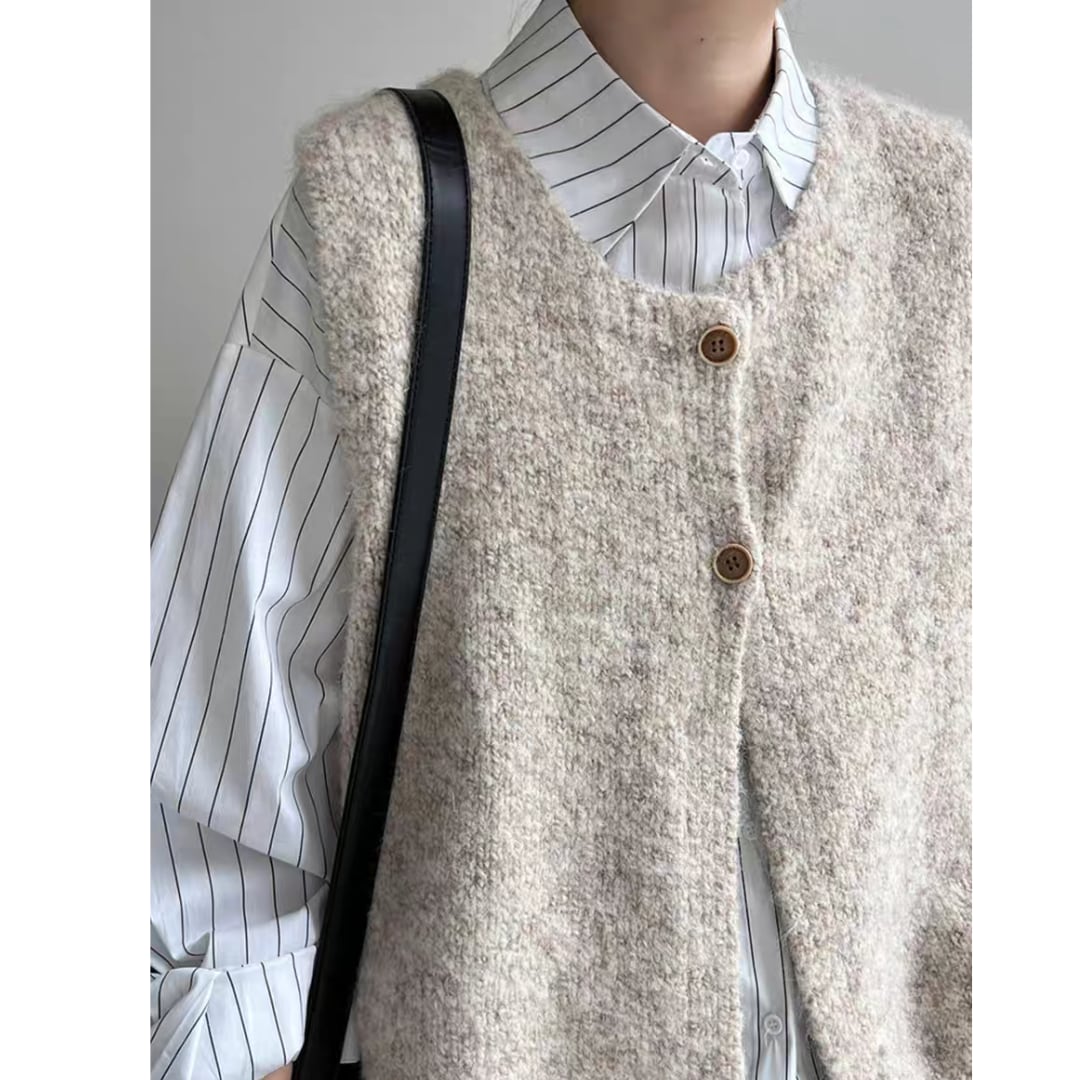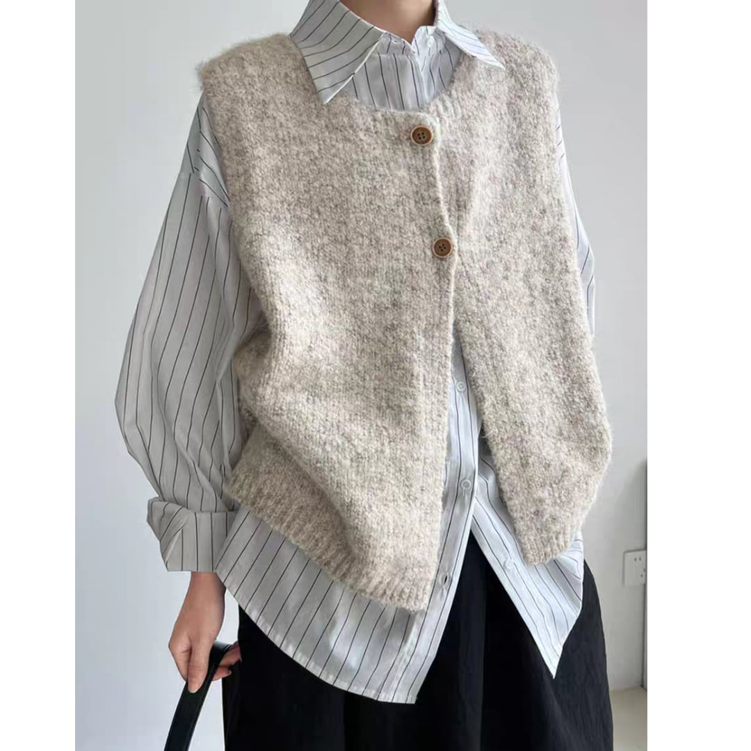 ざっくりとした風合いが魅力のミックスツイード風ニットベスト。