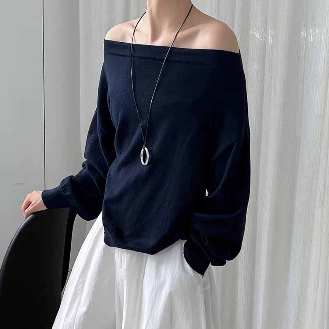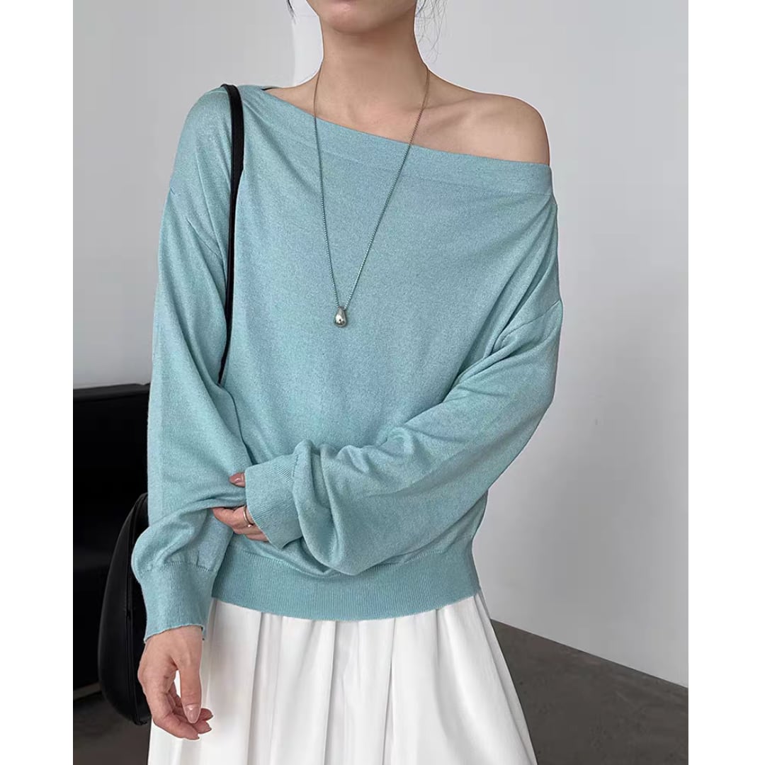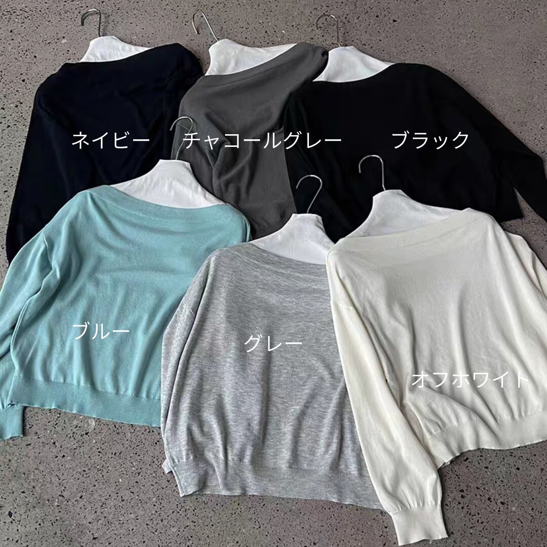 ボートネックニットトップス 0168