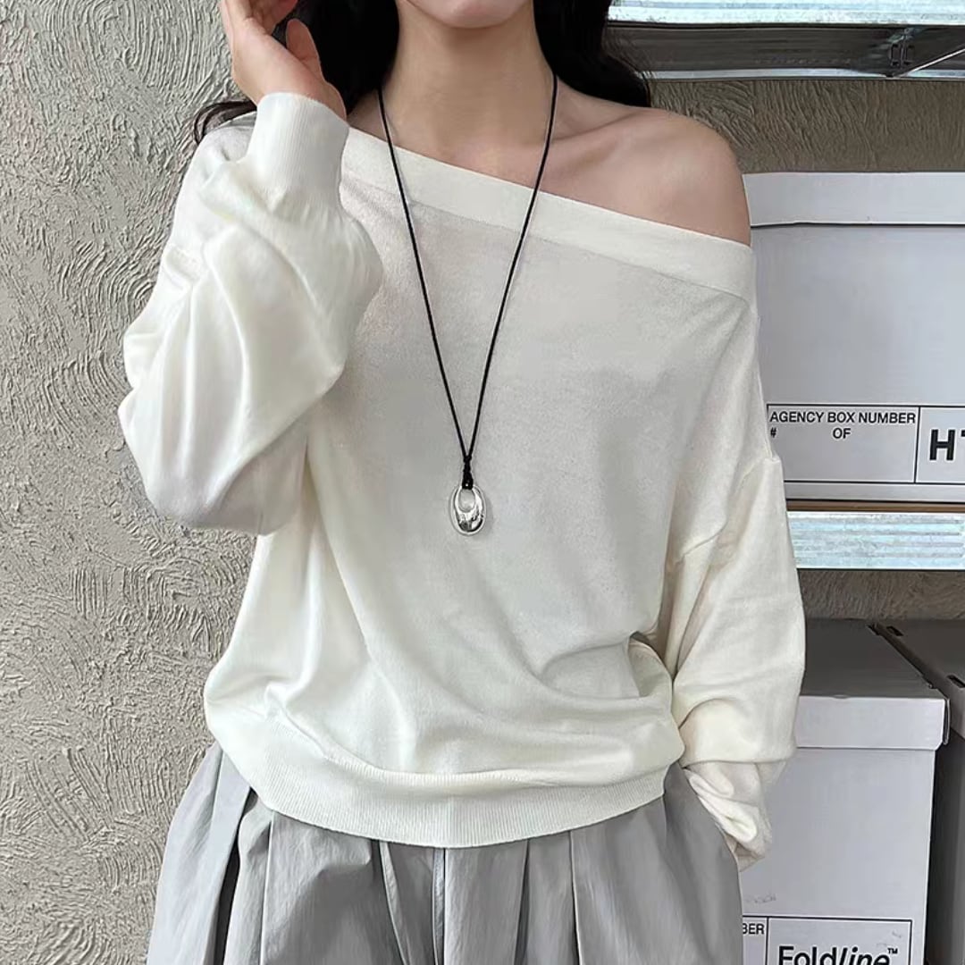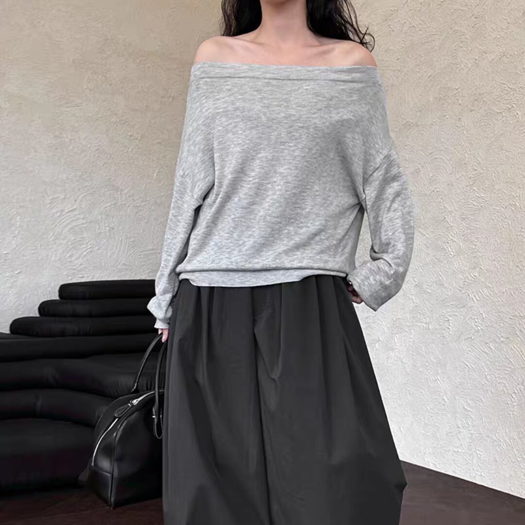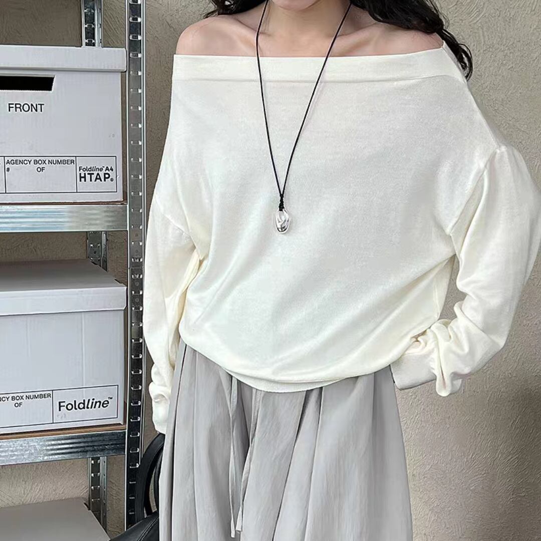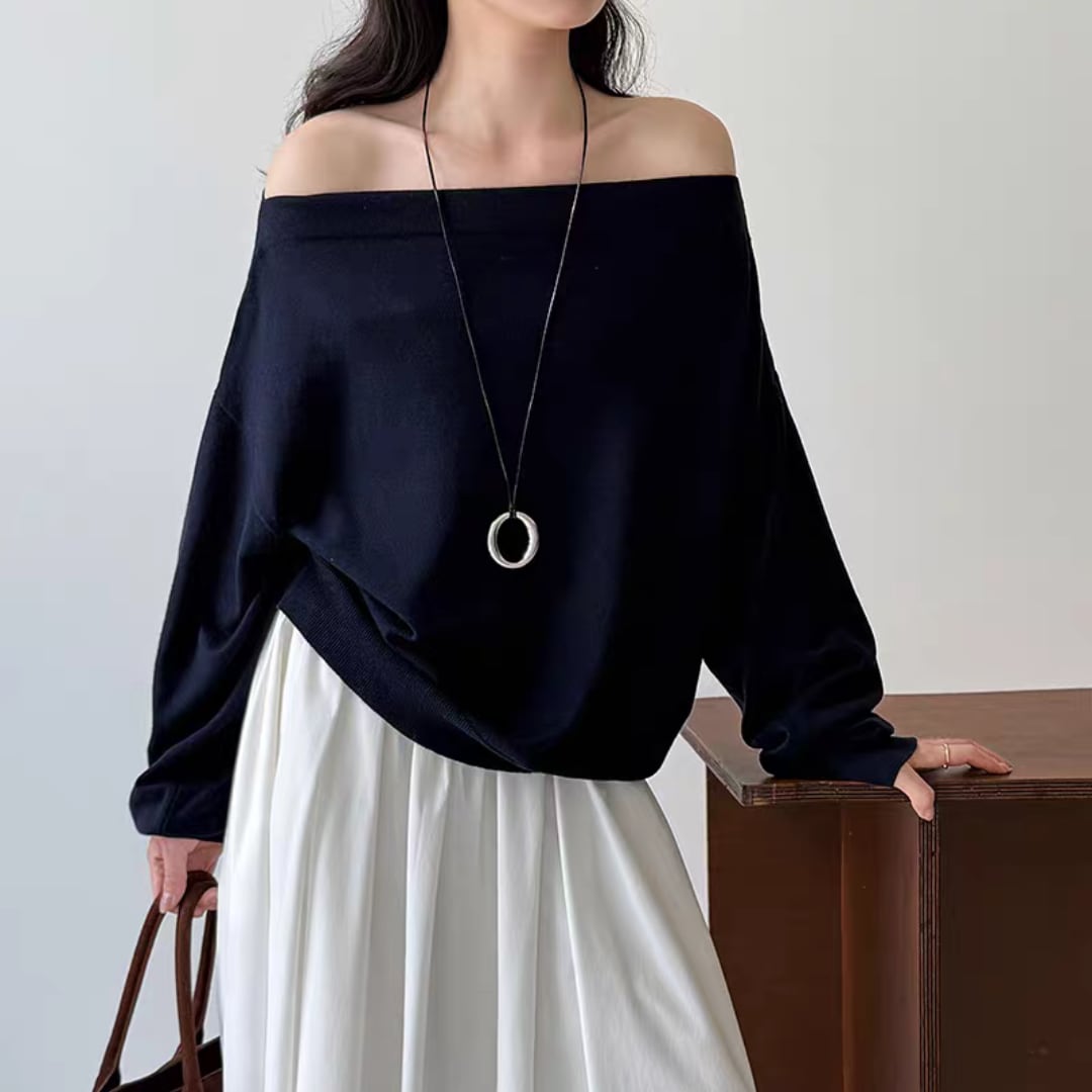 ボートネックニットトップス 0168