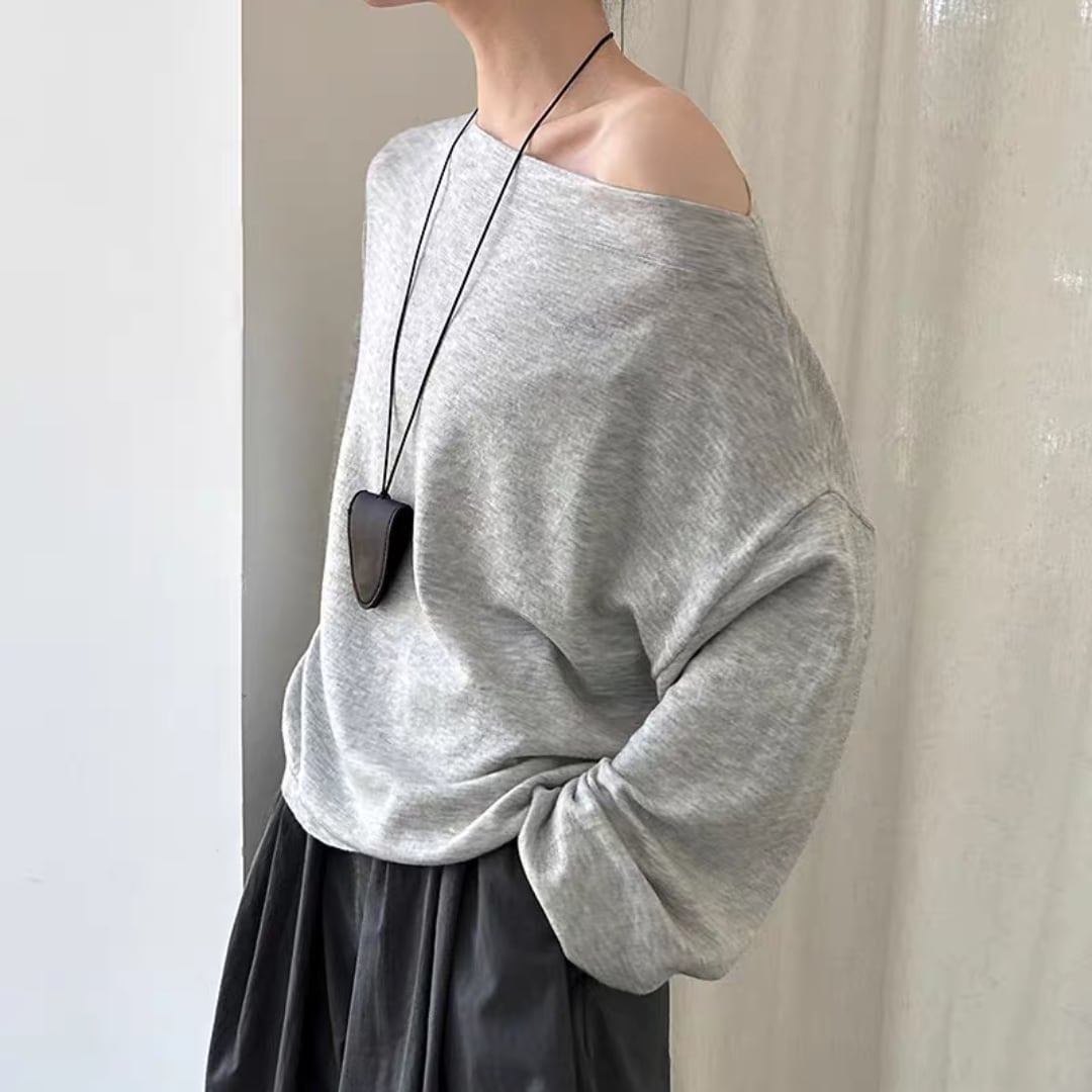 デコルテをきれいに見せる絶妙なネックラインで、カジュアルながらも女性らしさが漂う一枚です。