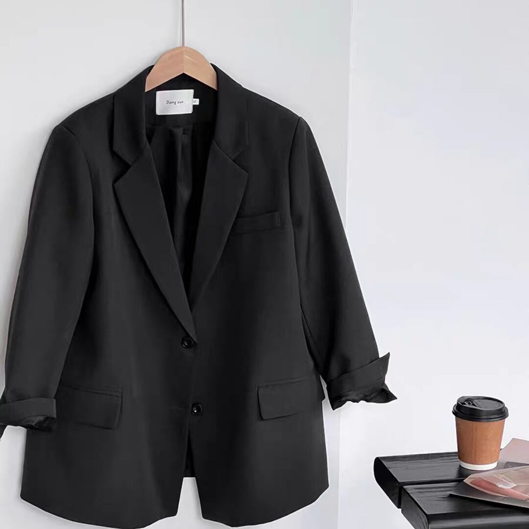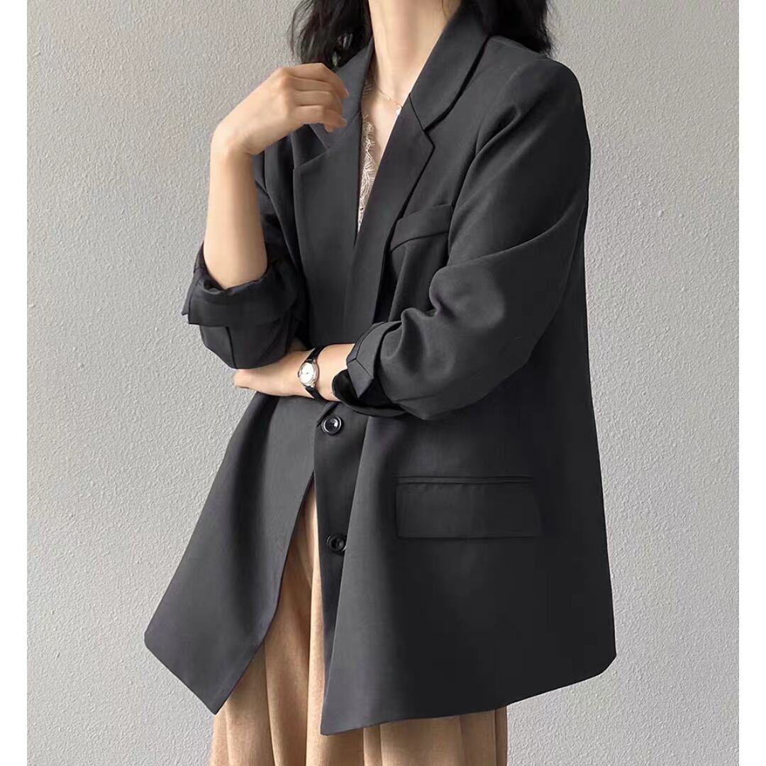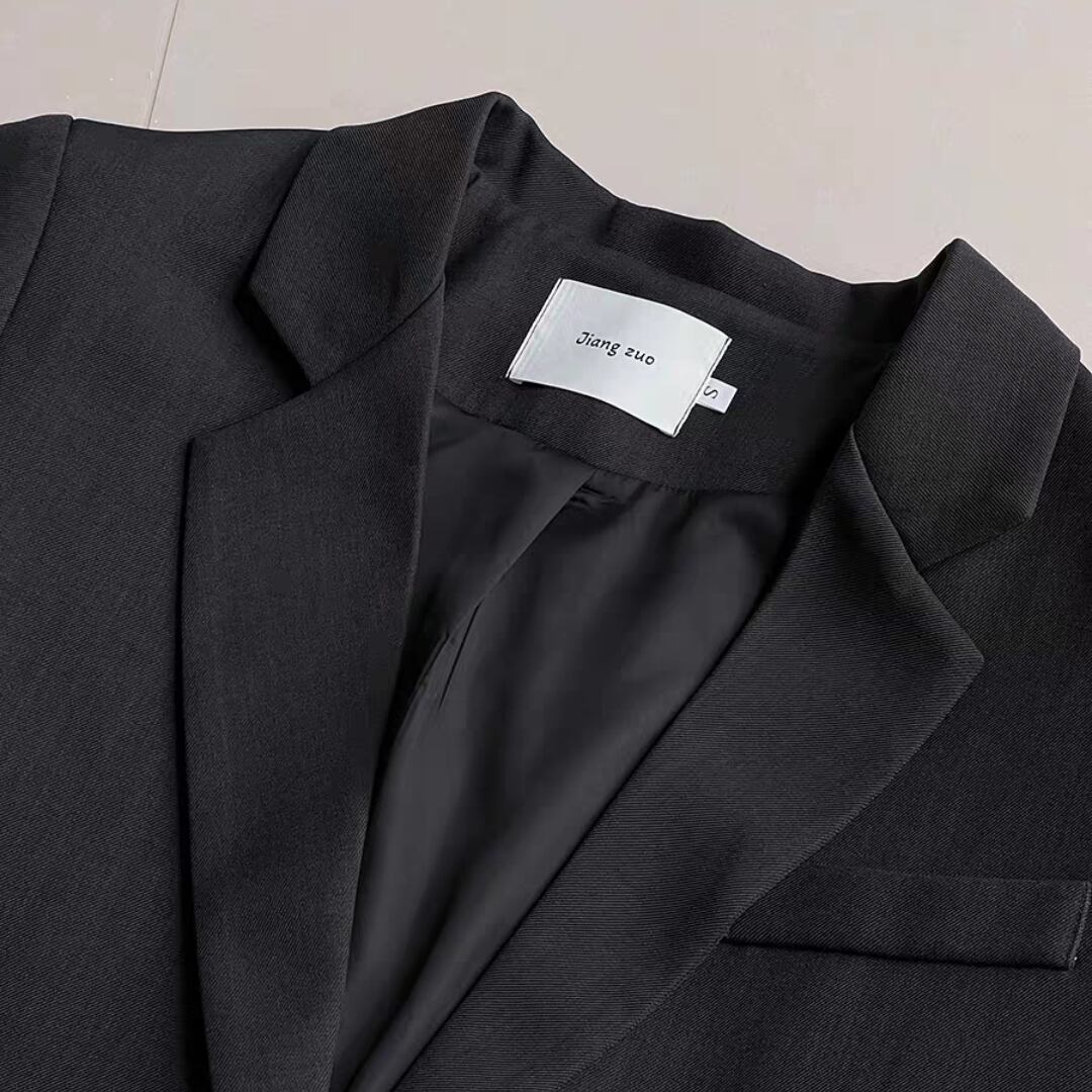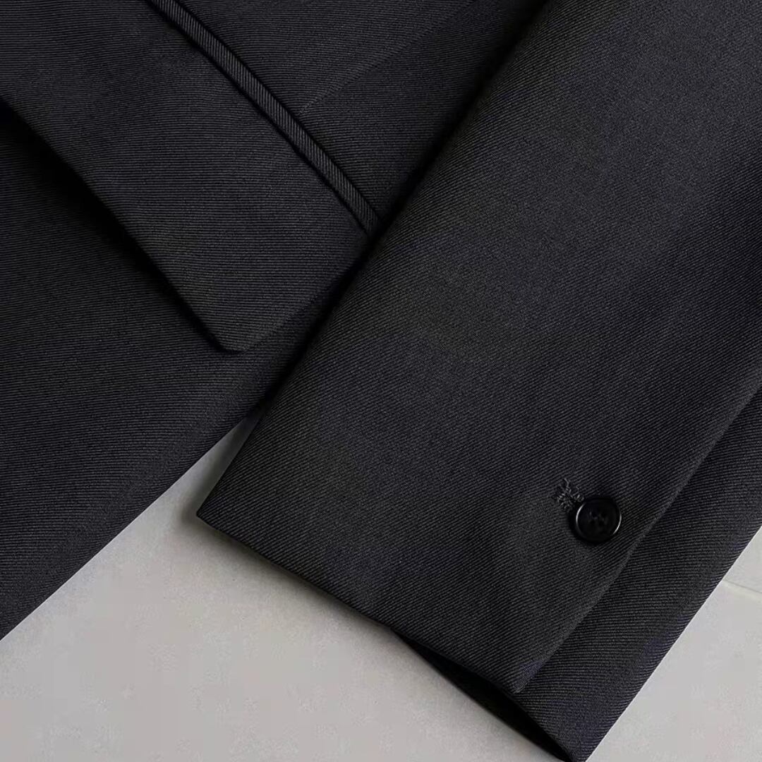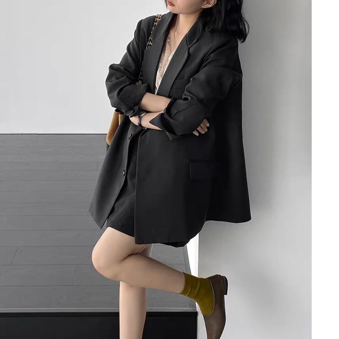 シャープな印象を与えるチャコールグレーが大人の余裕を感じさせる、オーバーサイズシルエットのテーラードジャケット。