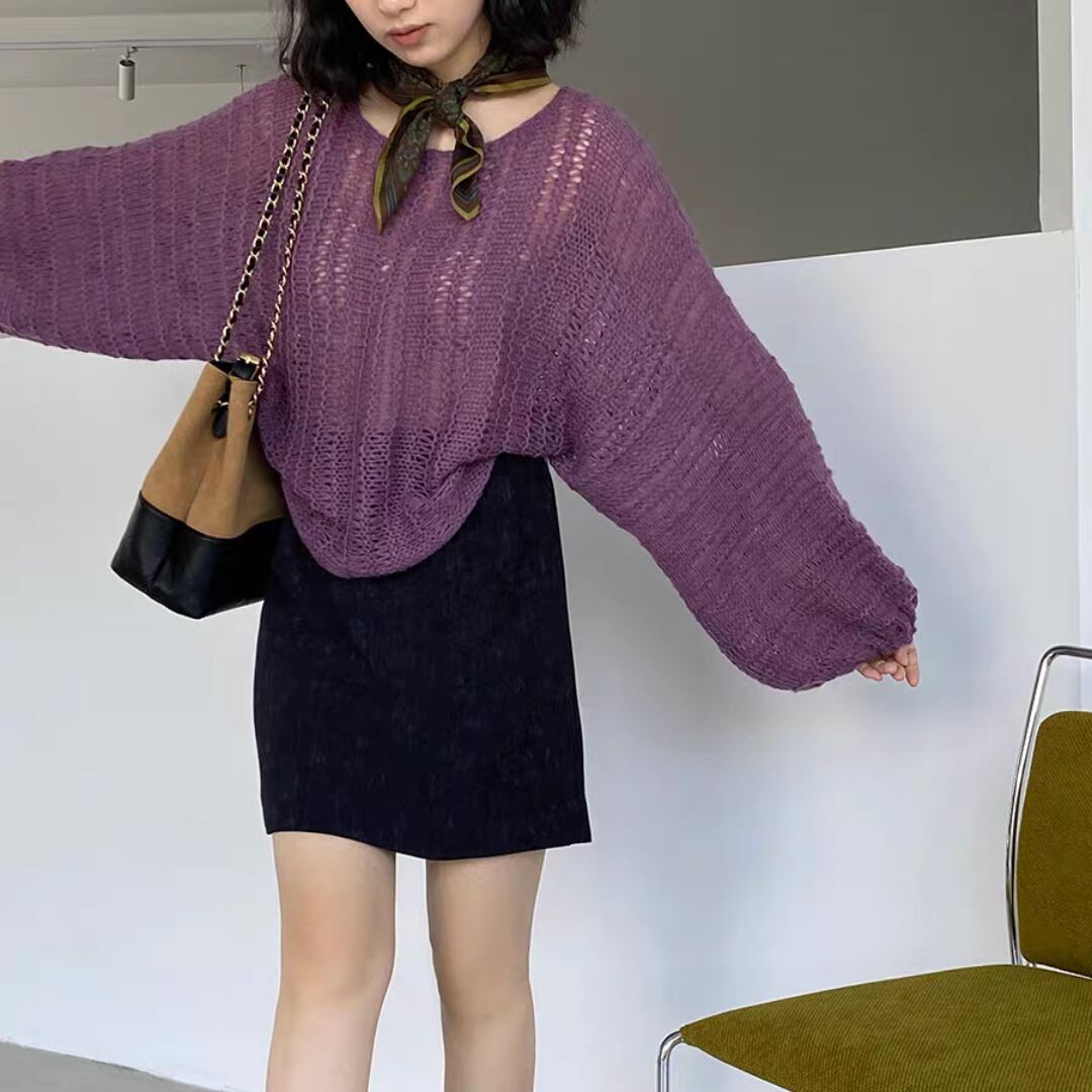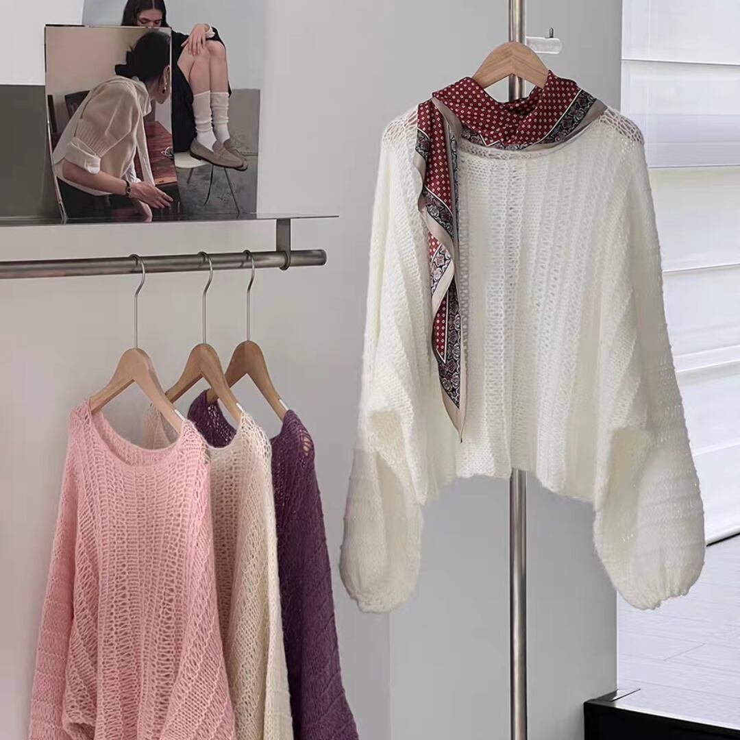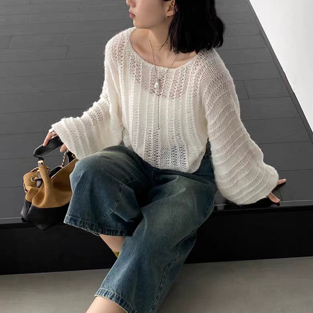 軽やかな透かし編みが魅力のルーズメッシュニットプルオーバー。ドロップショルダーとゆったり袖が抜け感のあるシルエットを演出し、レイヤードスタイルにもぴったりです。パンツにもスカートにも合わせやすく、シーズンを問わず活躍する1枚。