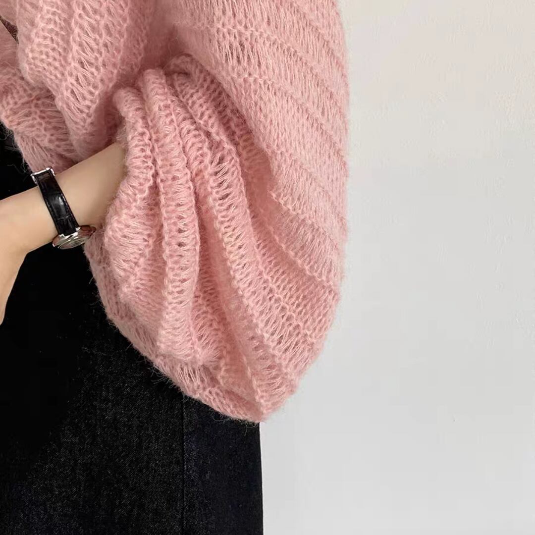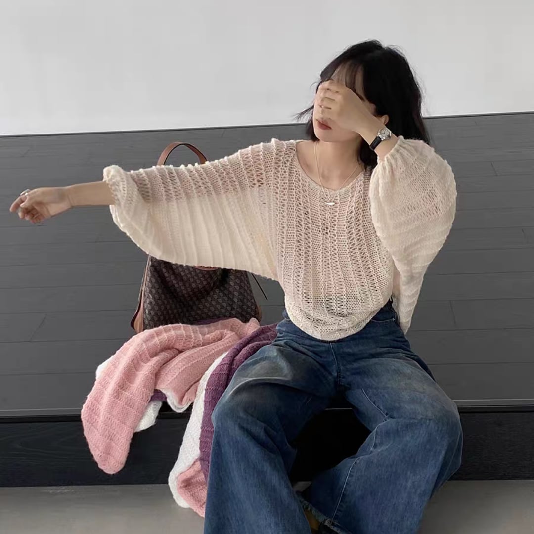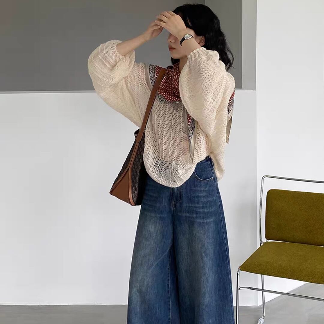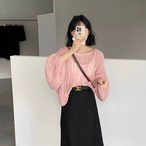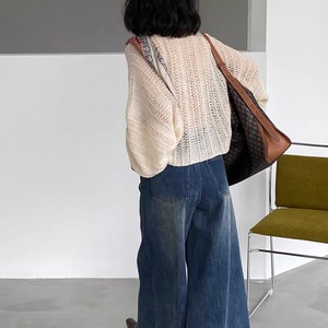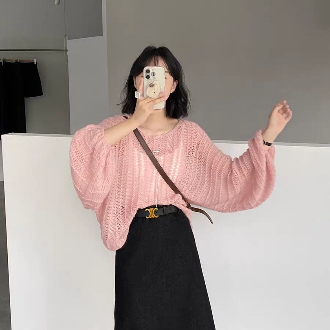 軽やかな透かし編みが魅力のルーズメッシュニットプルオーバー。ドロップショルダーとゆったり袖が抜け感のあるシルエットを演出し、レイヤードスタイルにもぴったりです。パンツにもスカートにも合わせやすく、シーズンを問わず活躍する1枚。