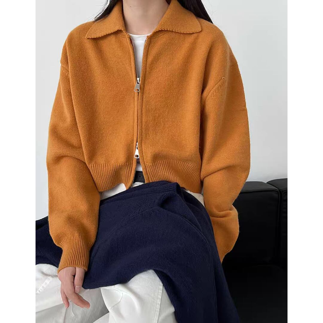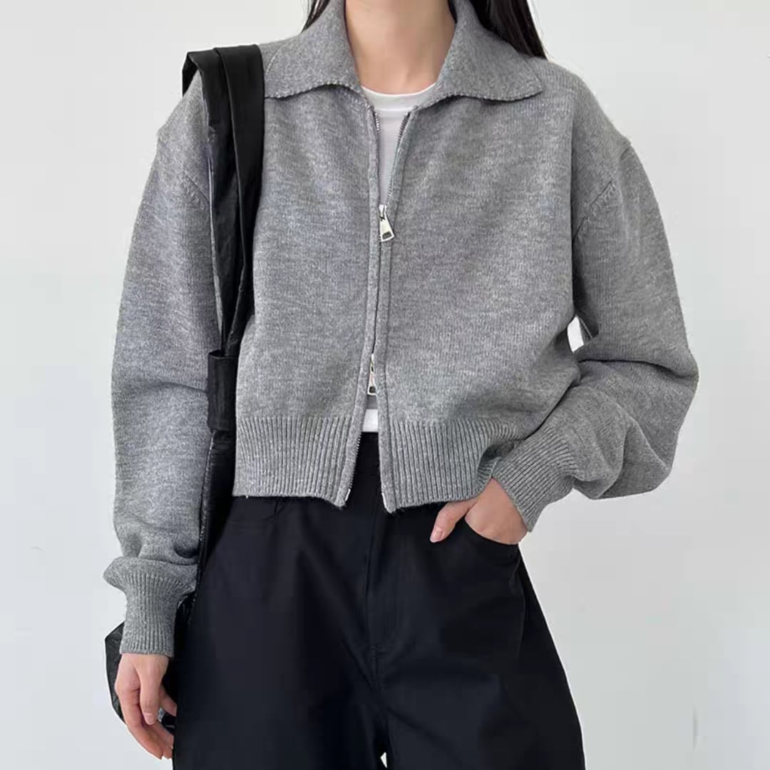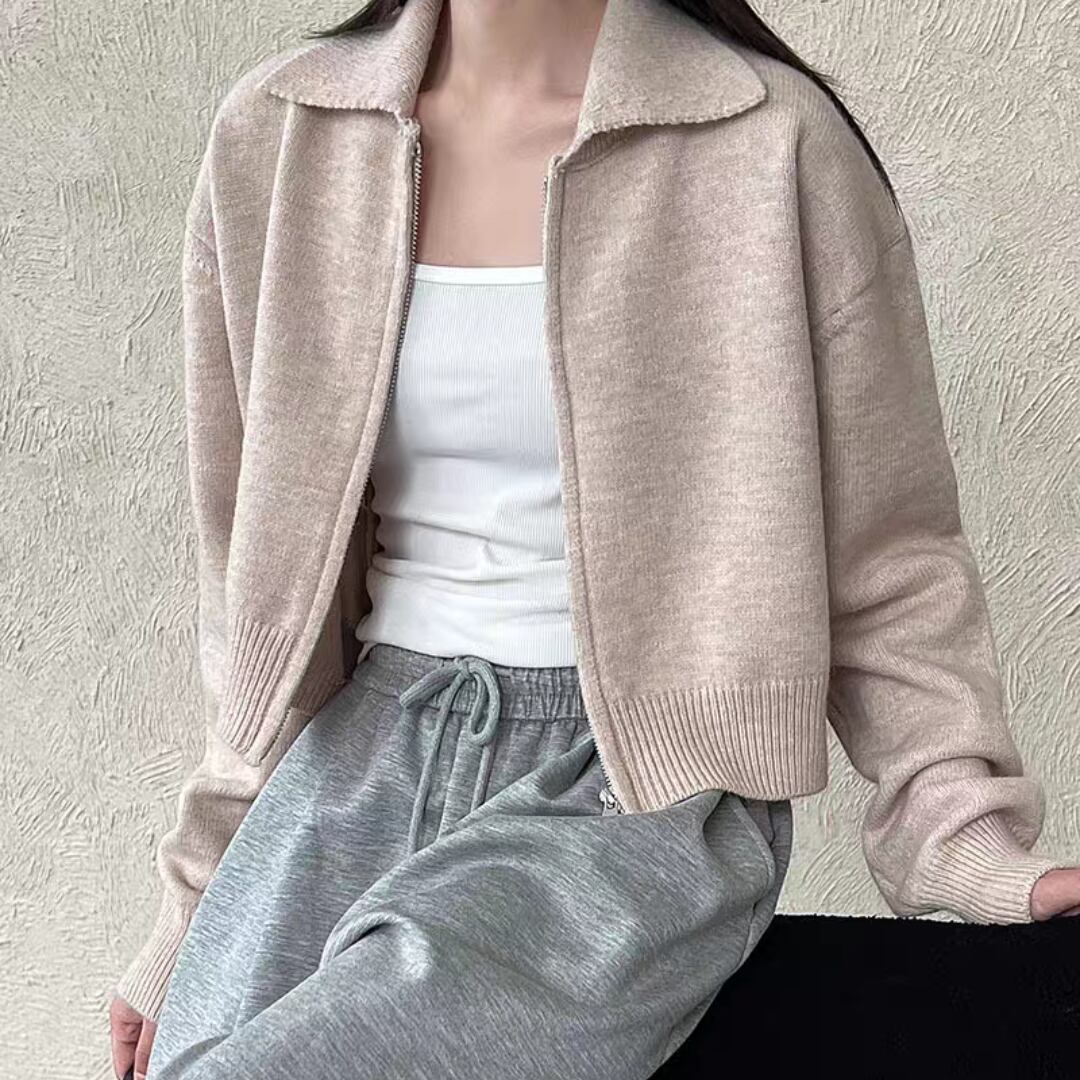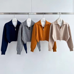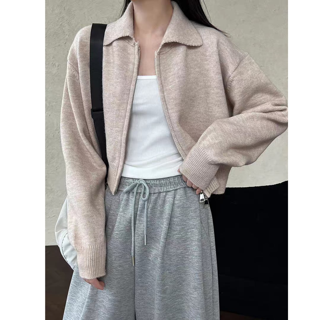 クロップド丈ダブルジッパ ニットカーディガン 0182