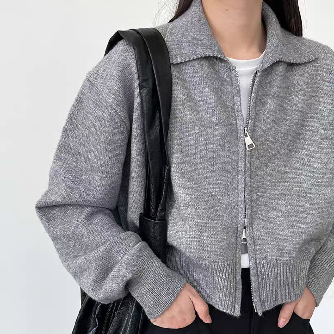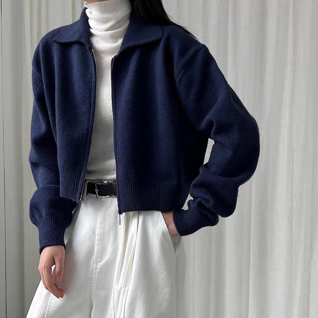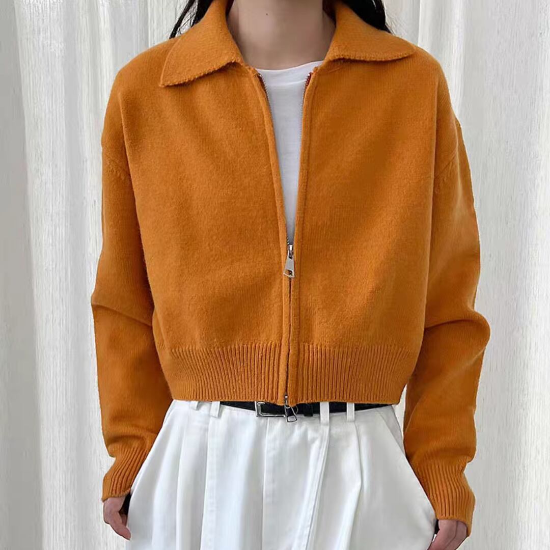 クロップド丈ダブルジッパ ニットカーディガン 0182